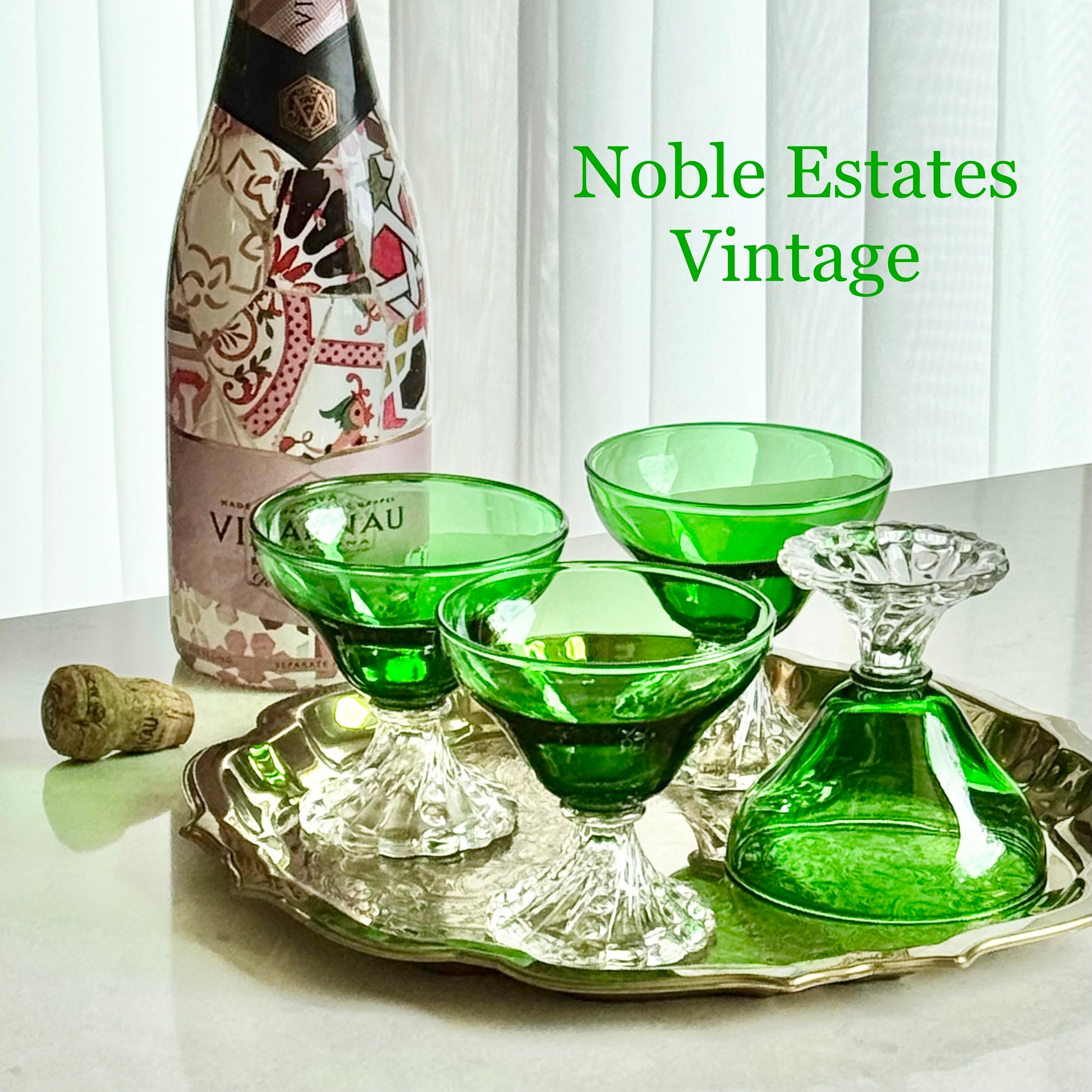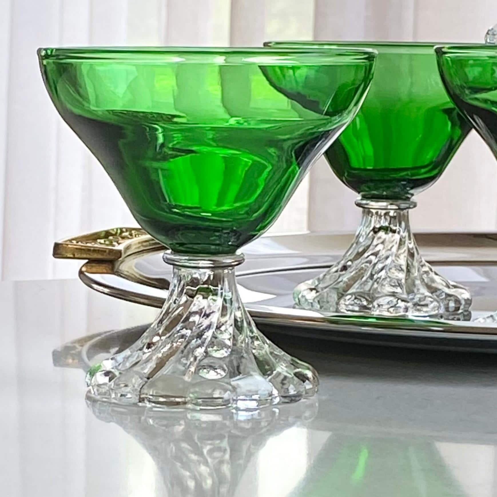 Vintage Anchor Hocking Burple Green Bubble Foot Glasses - Set of 4