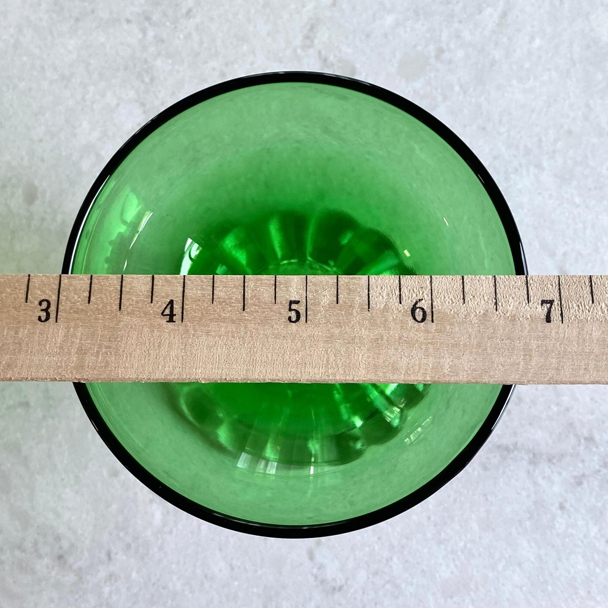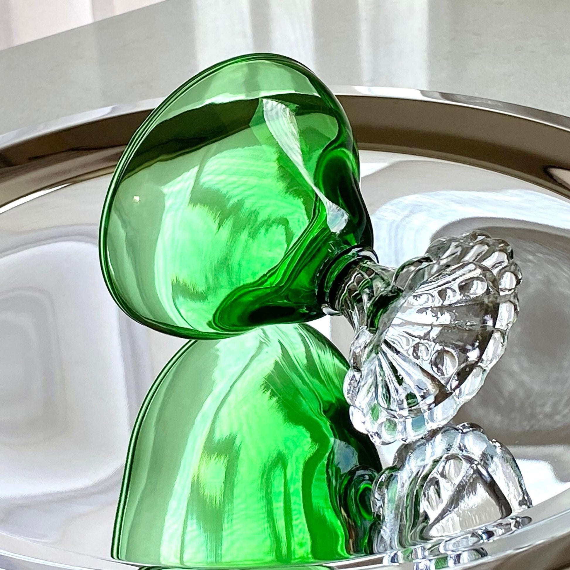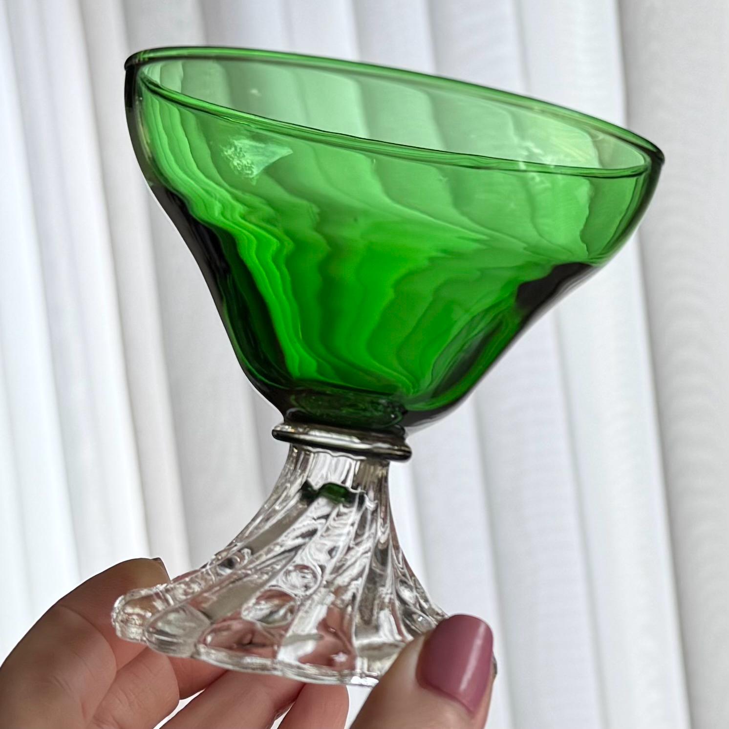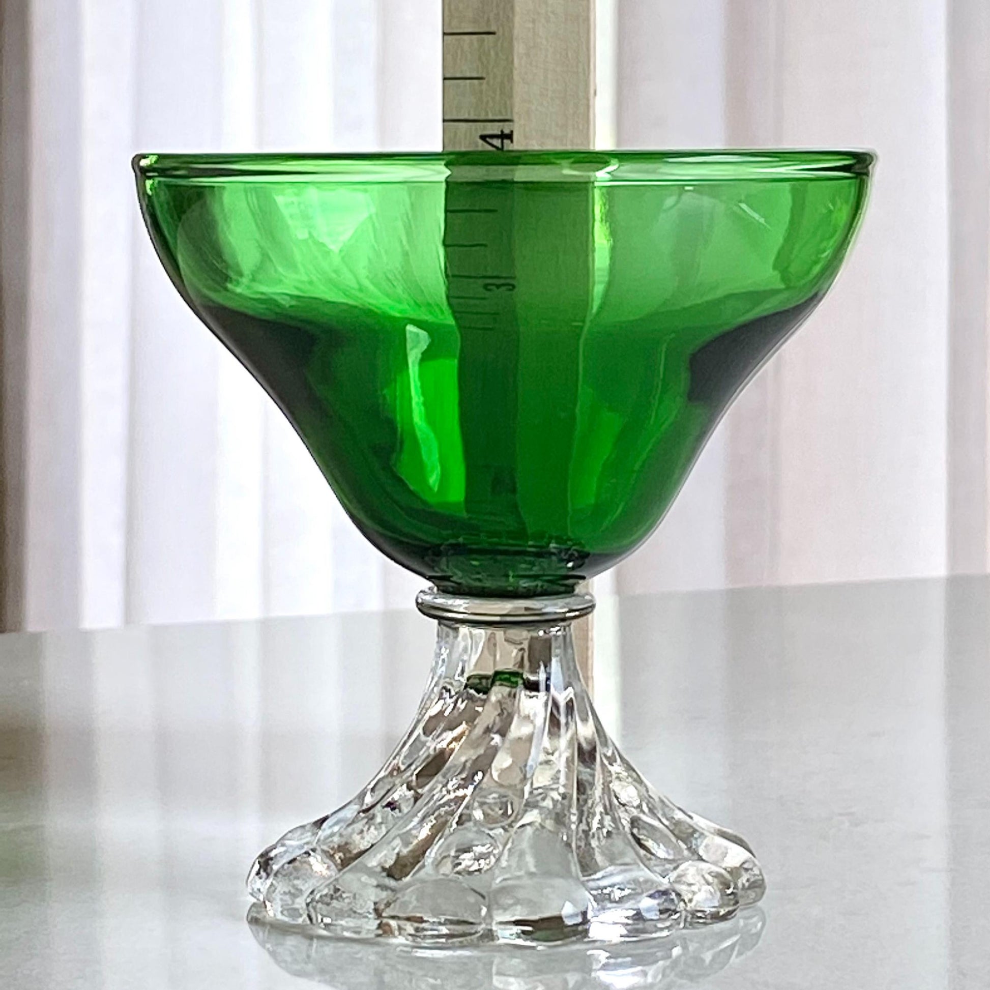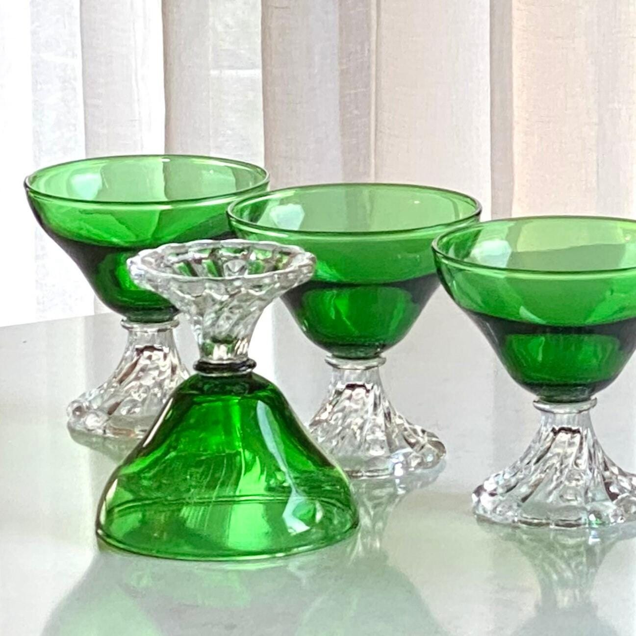 Set of four vibrant green glasses with a fun bubble foot design. Also pefect as shebets or dessert cups!