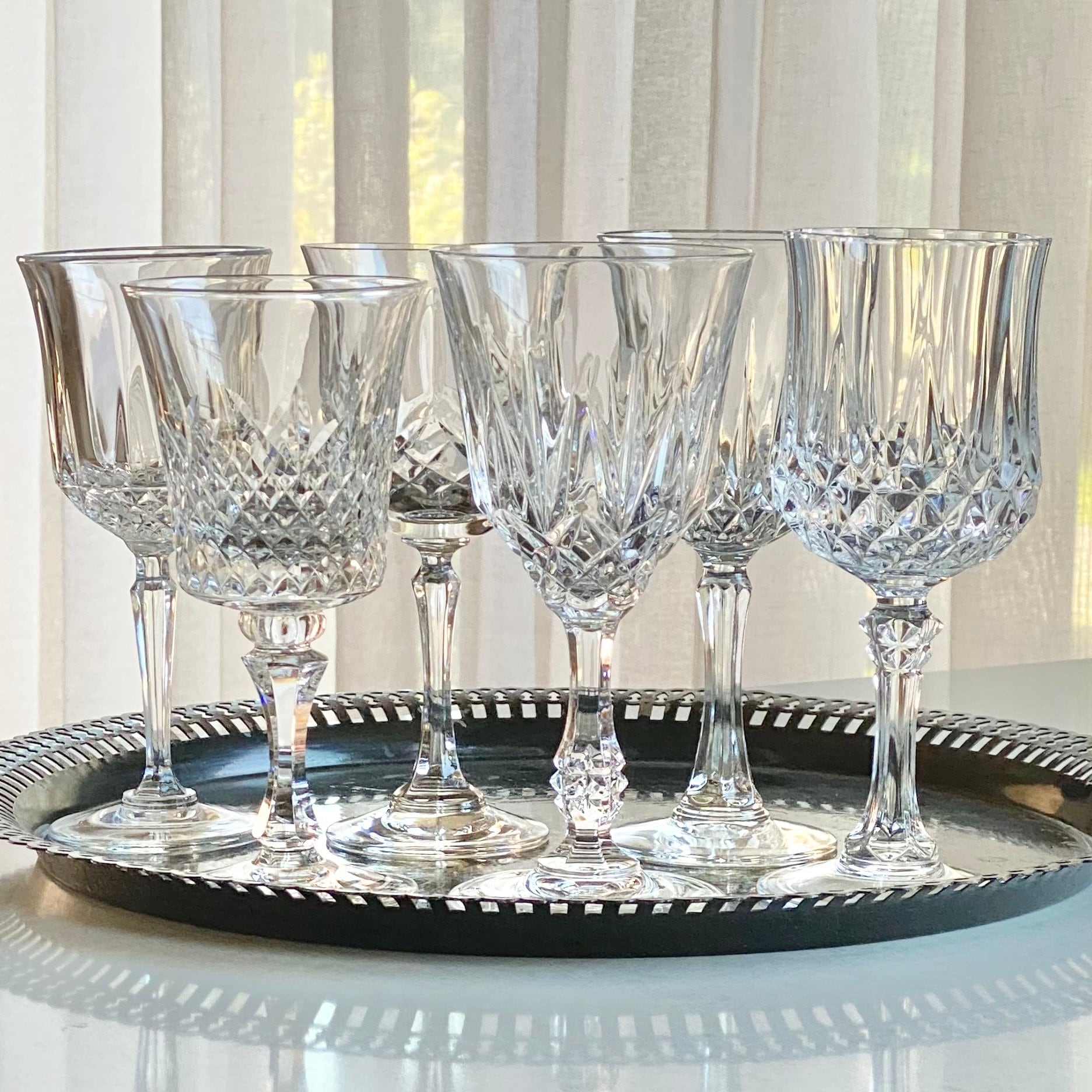 Set of six glasses with various designs and shapes. Perfect for get togethers so everyone can remember which glass is theirs!