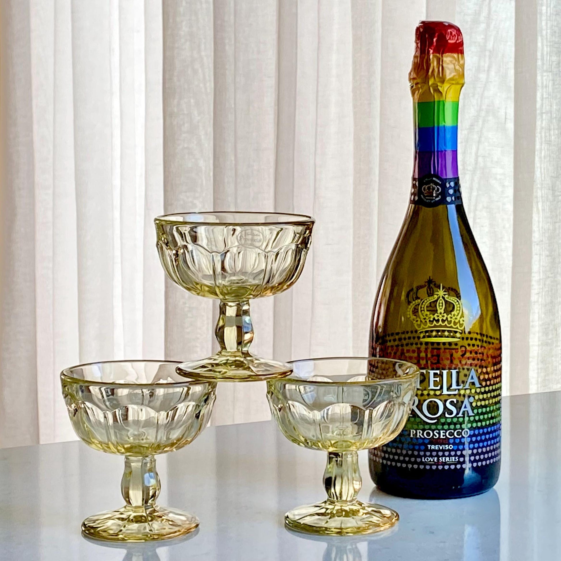 Fun retro champagne coupes -- also perfect for ice cream and sherbet!