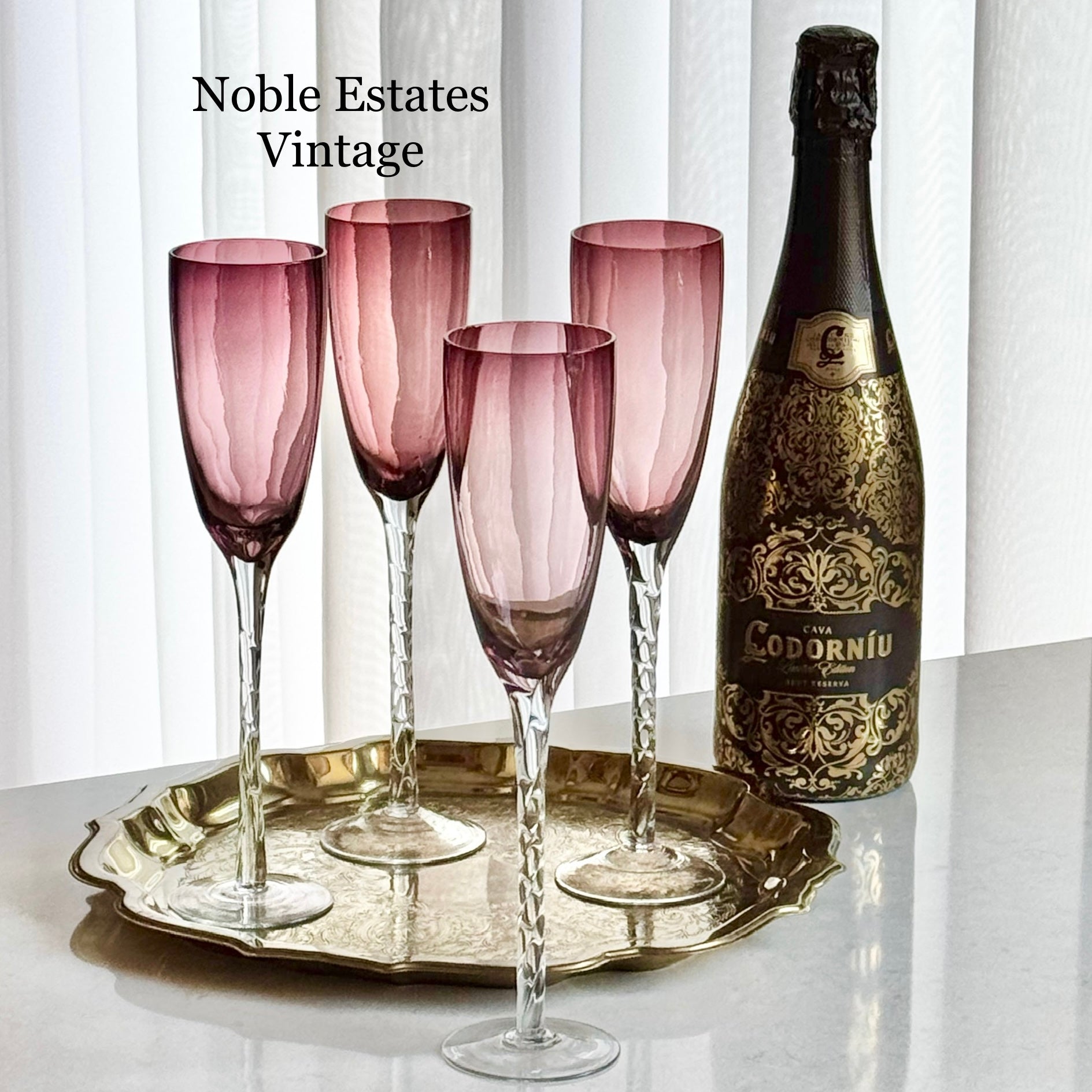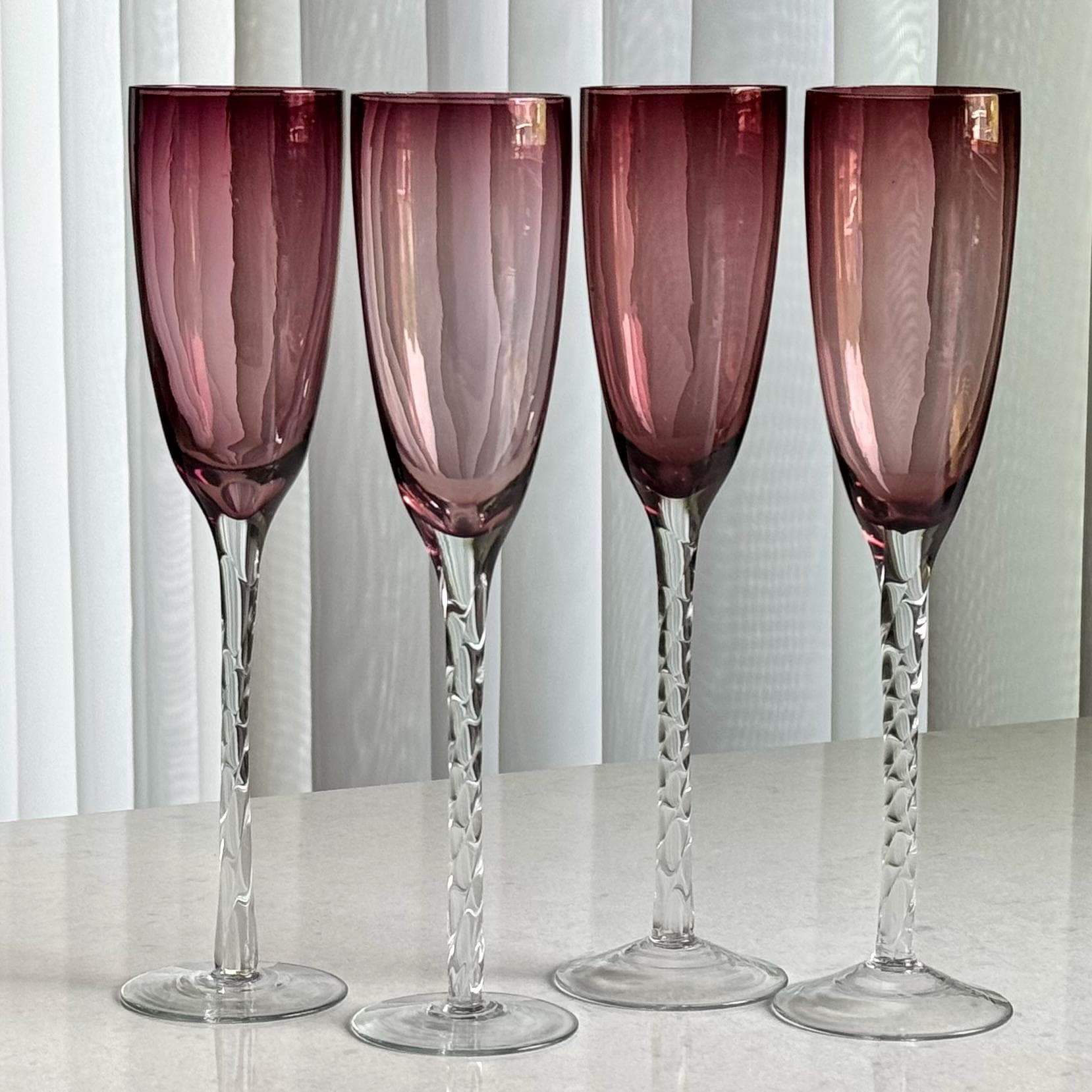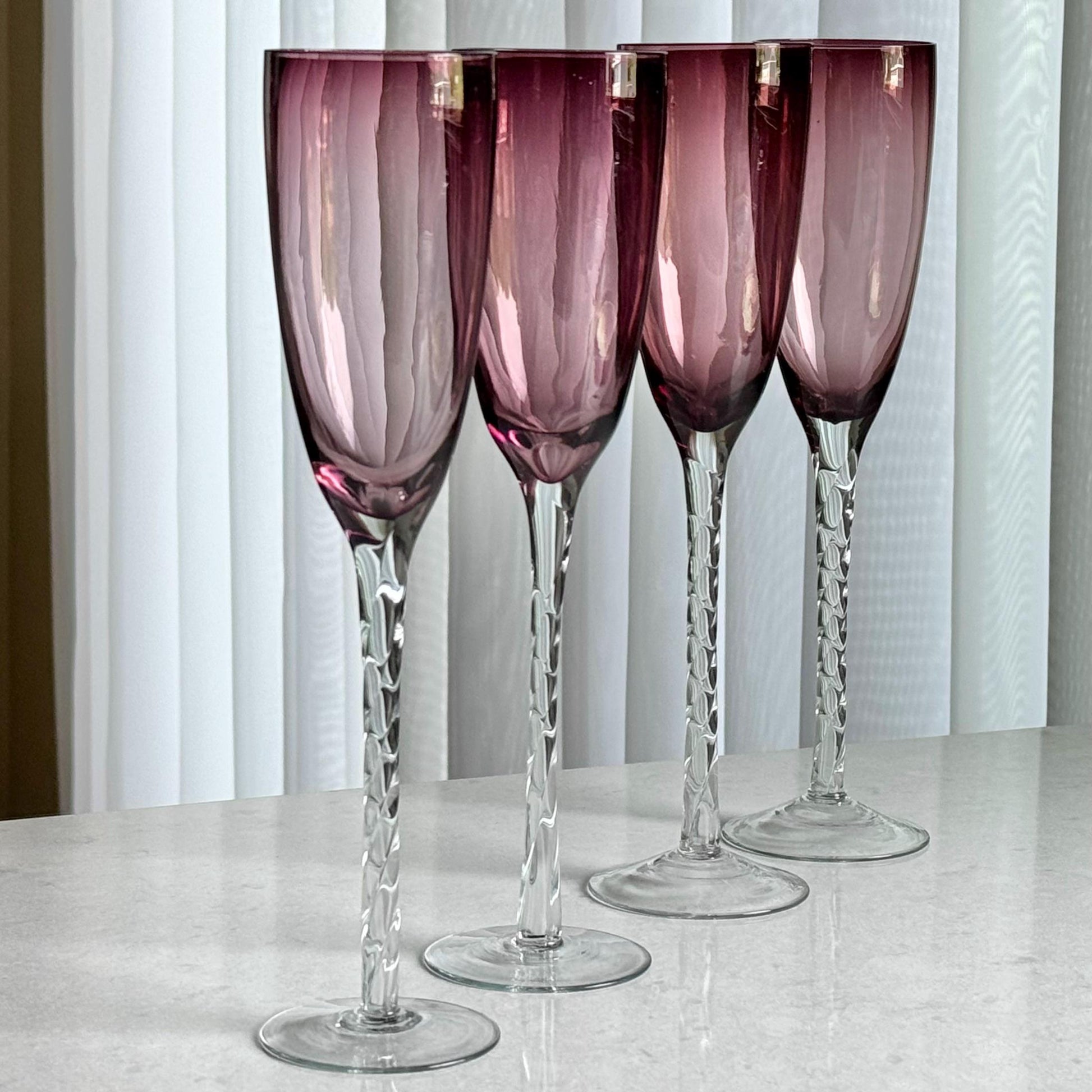 Vintage Amethyst Twisted Stem Glasses - Set of 4