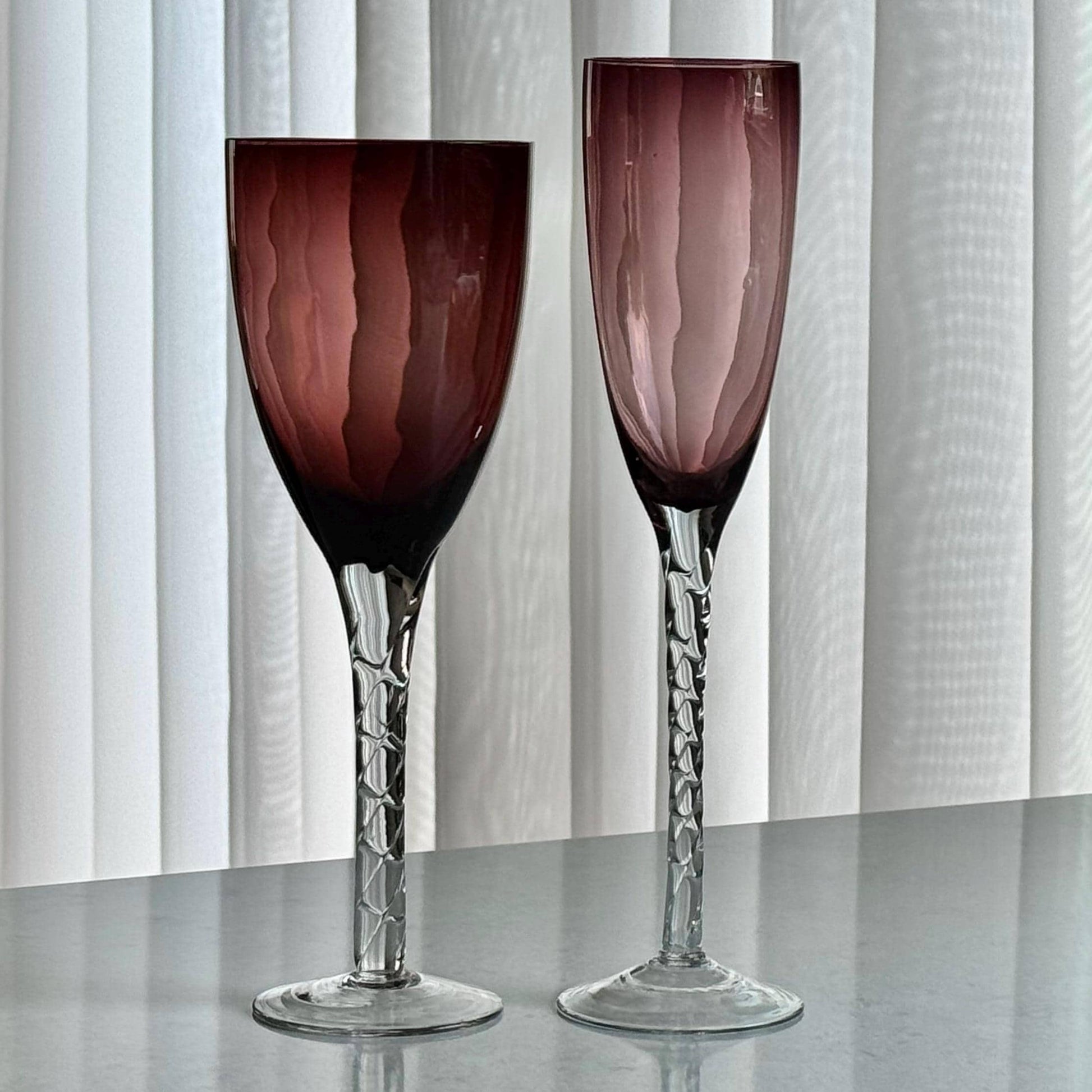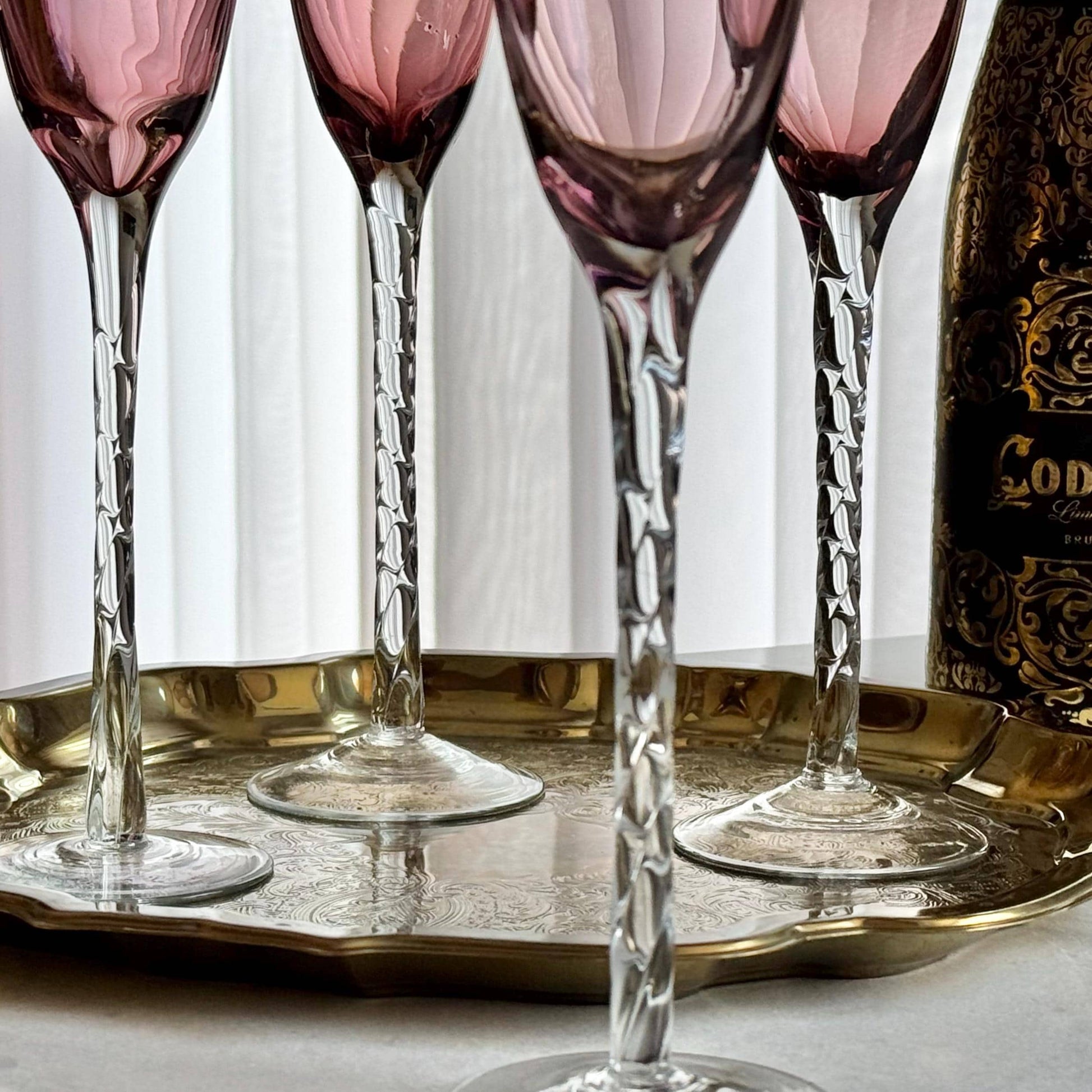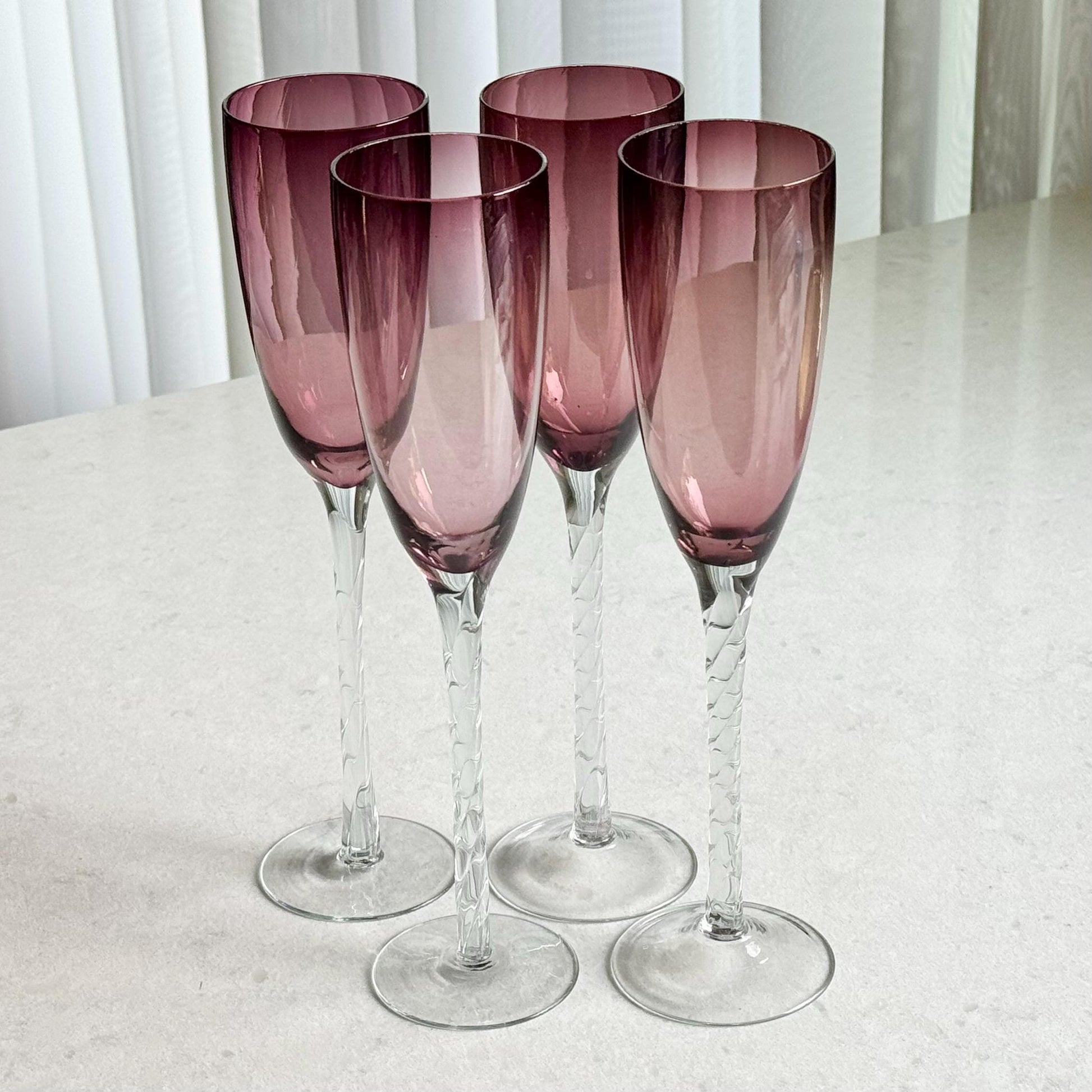Vintage Amethyst Twisted Stem Glasses - Set of 4