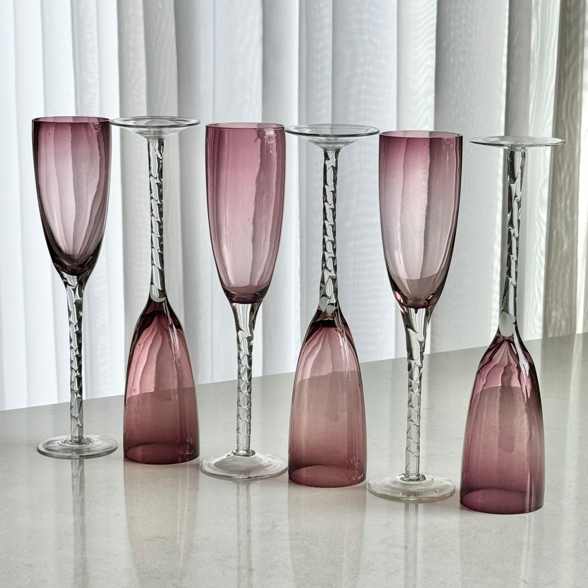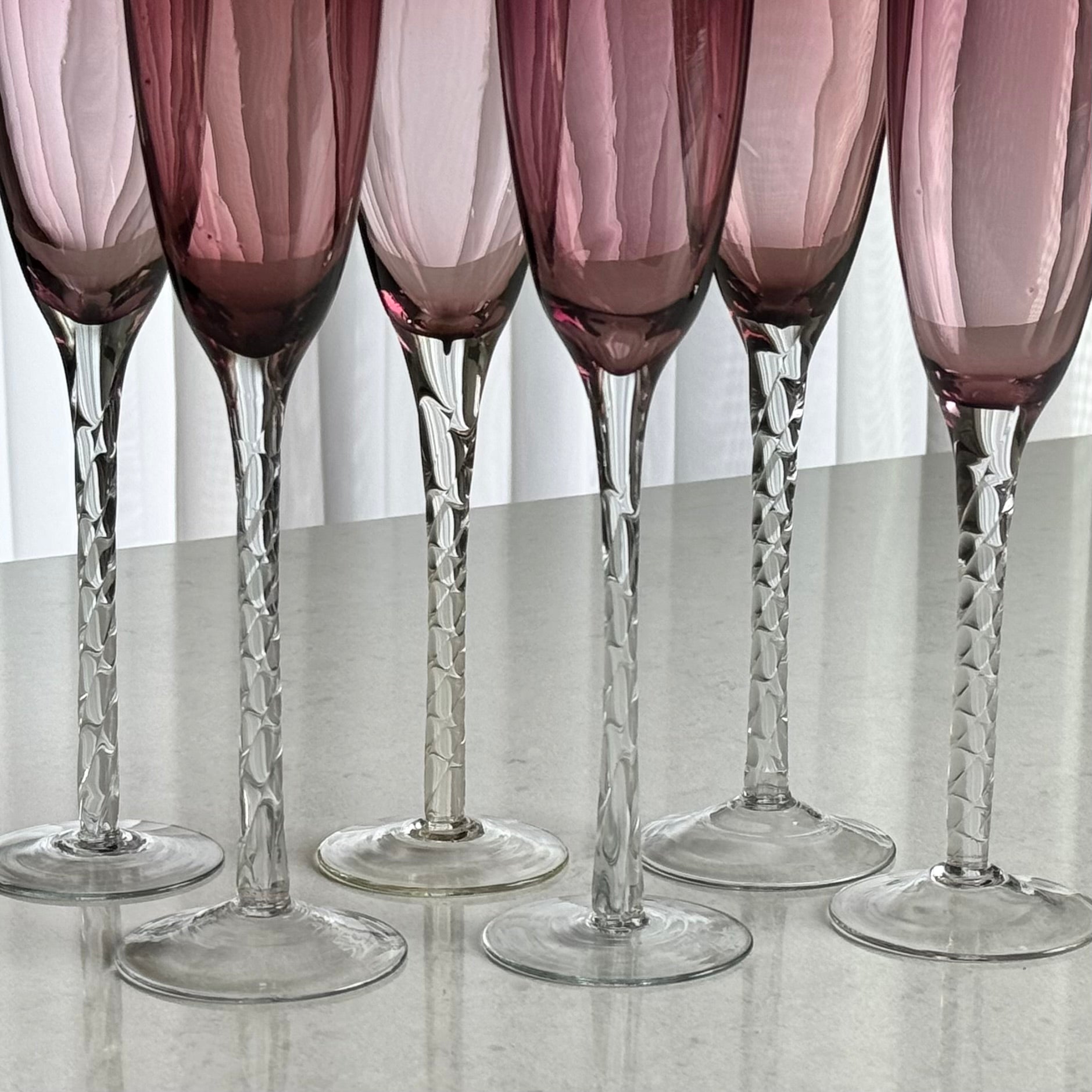 Vintage Amethyst Twisted Stem Glasses - Set of 6