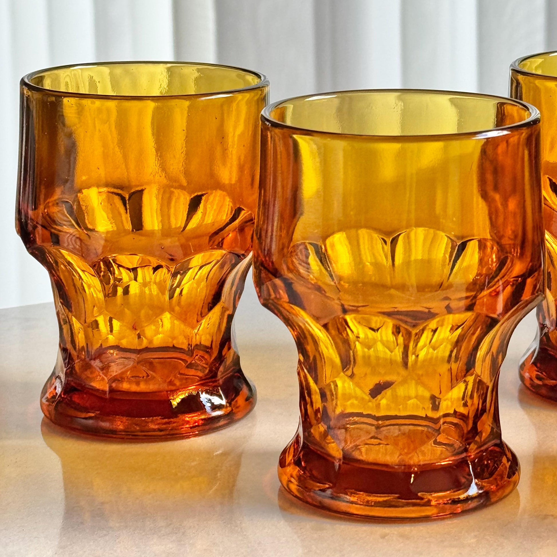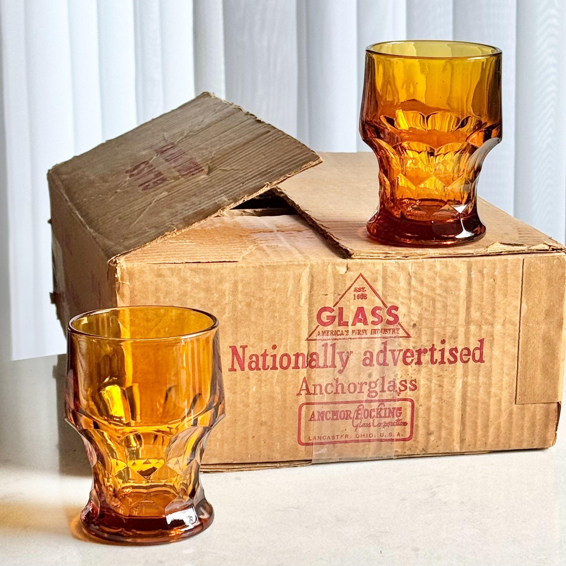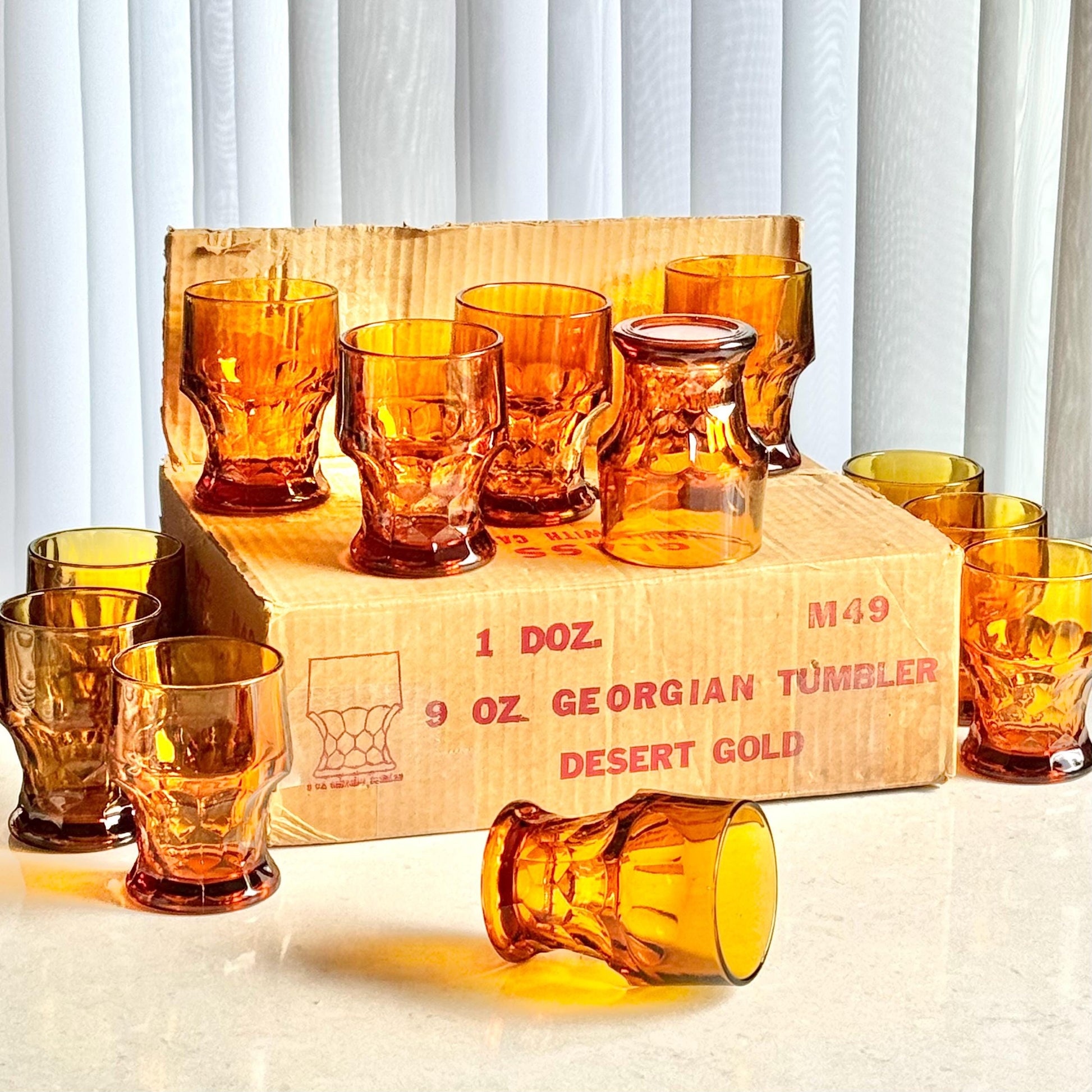Vintage Anchor Hocking Desert Gold Georgian Colonial Honeycomb Thumbprint Glasses - Set of 12 Tumblers
