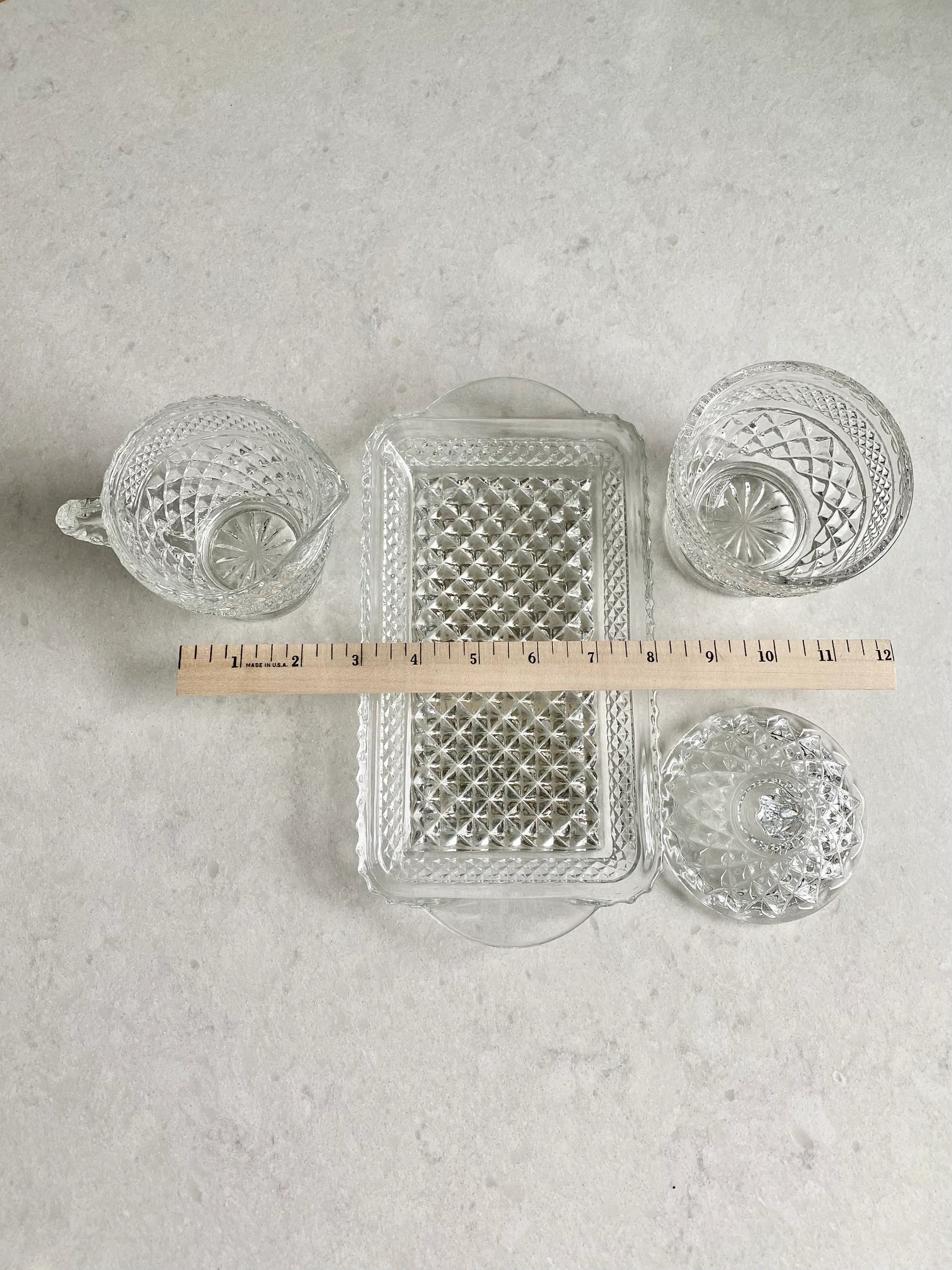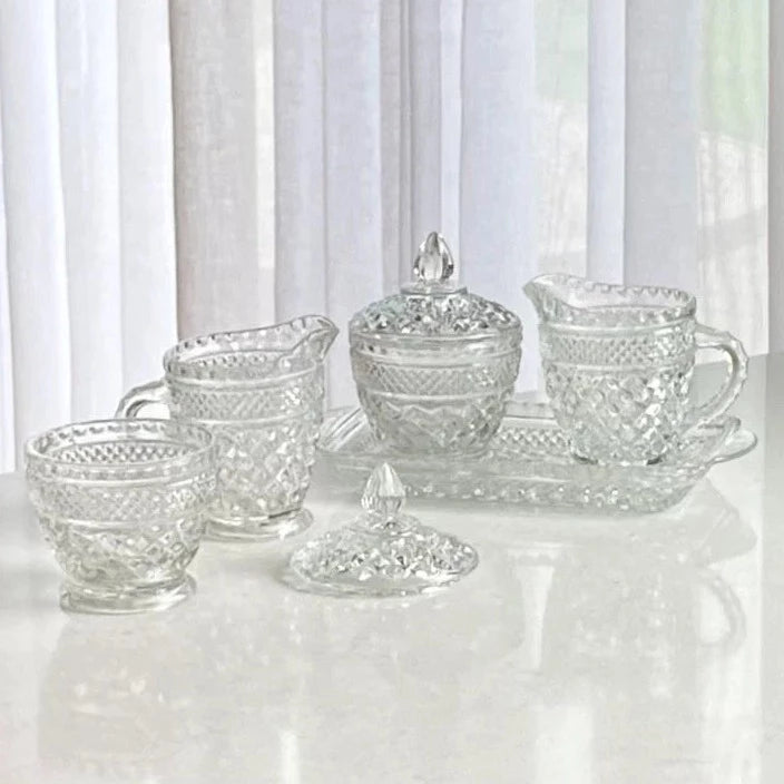 Vintage Anchor Hocking Wexford Waffle Covered Sugar and Creamer Sets - With and Without Undertray Available (circa 1962 - 1998)