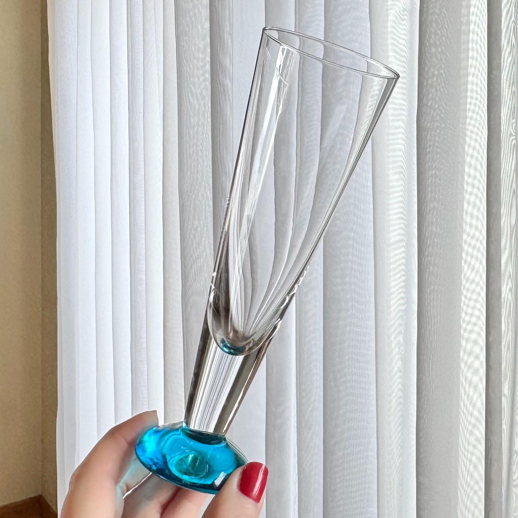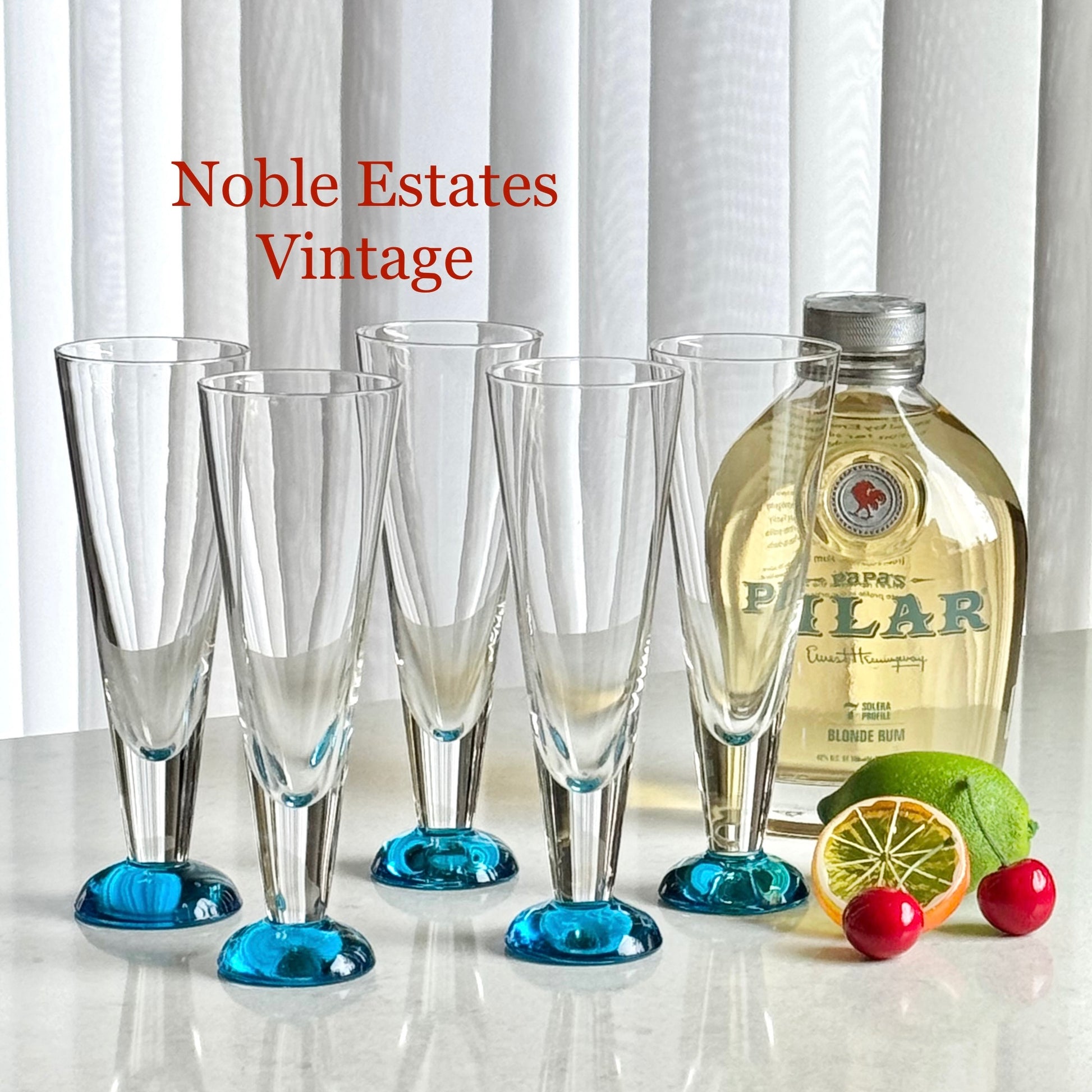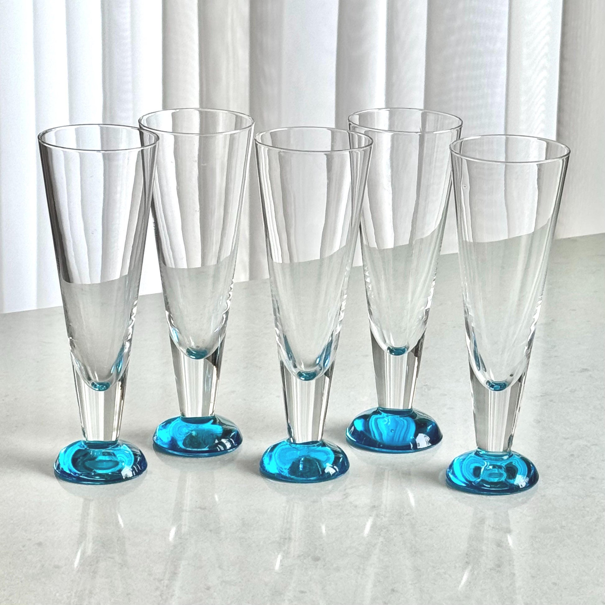 Vintage Aqua Blue Foot Fluted Glasses - Set of 5