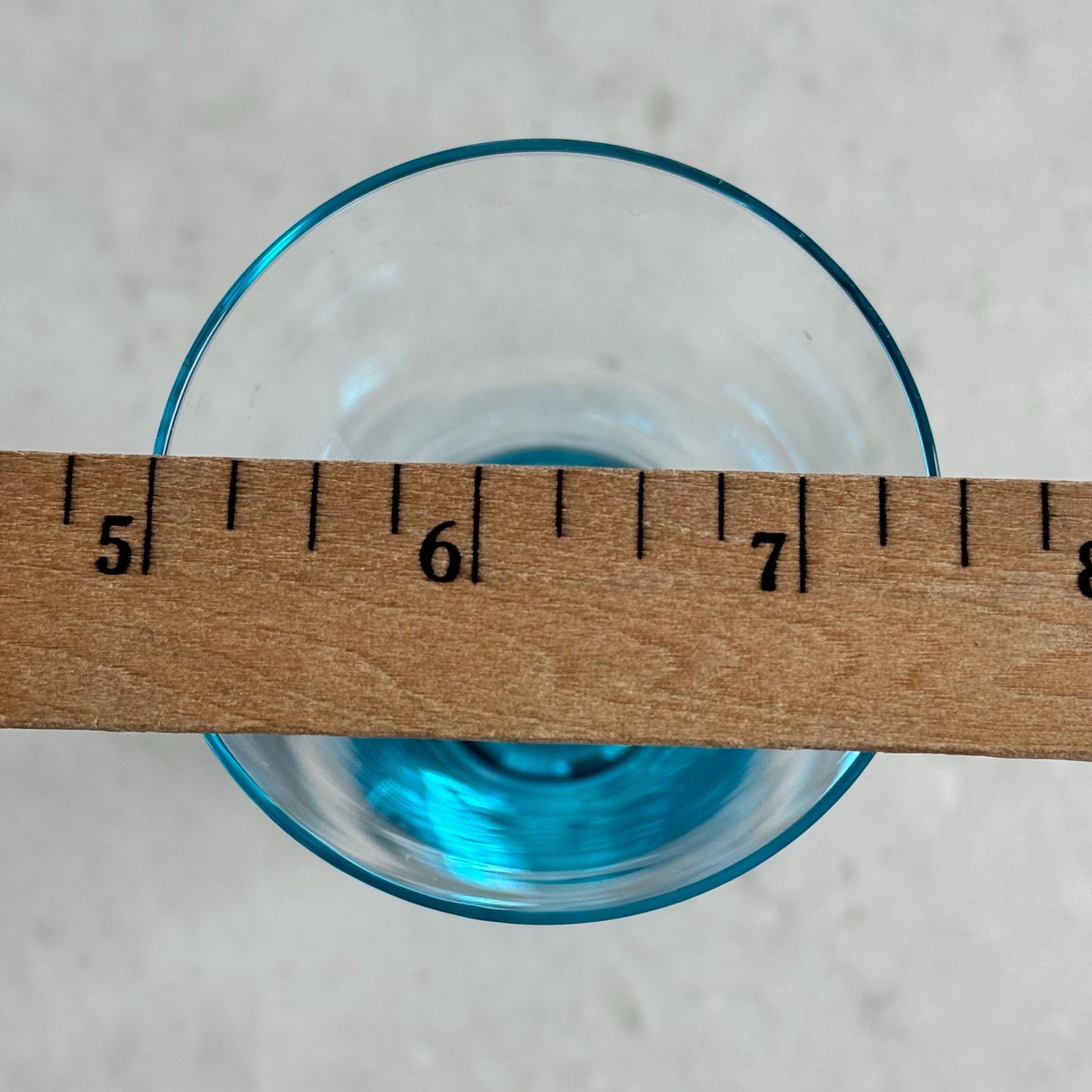 Approximately 7-1/4" tall and 2-3/8" across the rim with a capacity of about 7 ounces completely full. Excellent vintage condition, with air bubbles and variations among the glasses as is typical with these pieces.