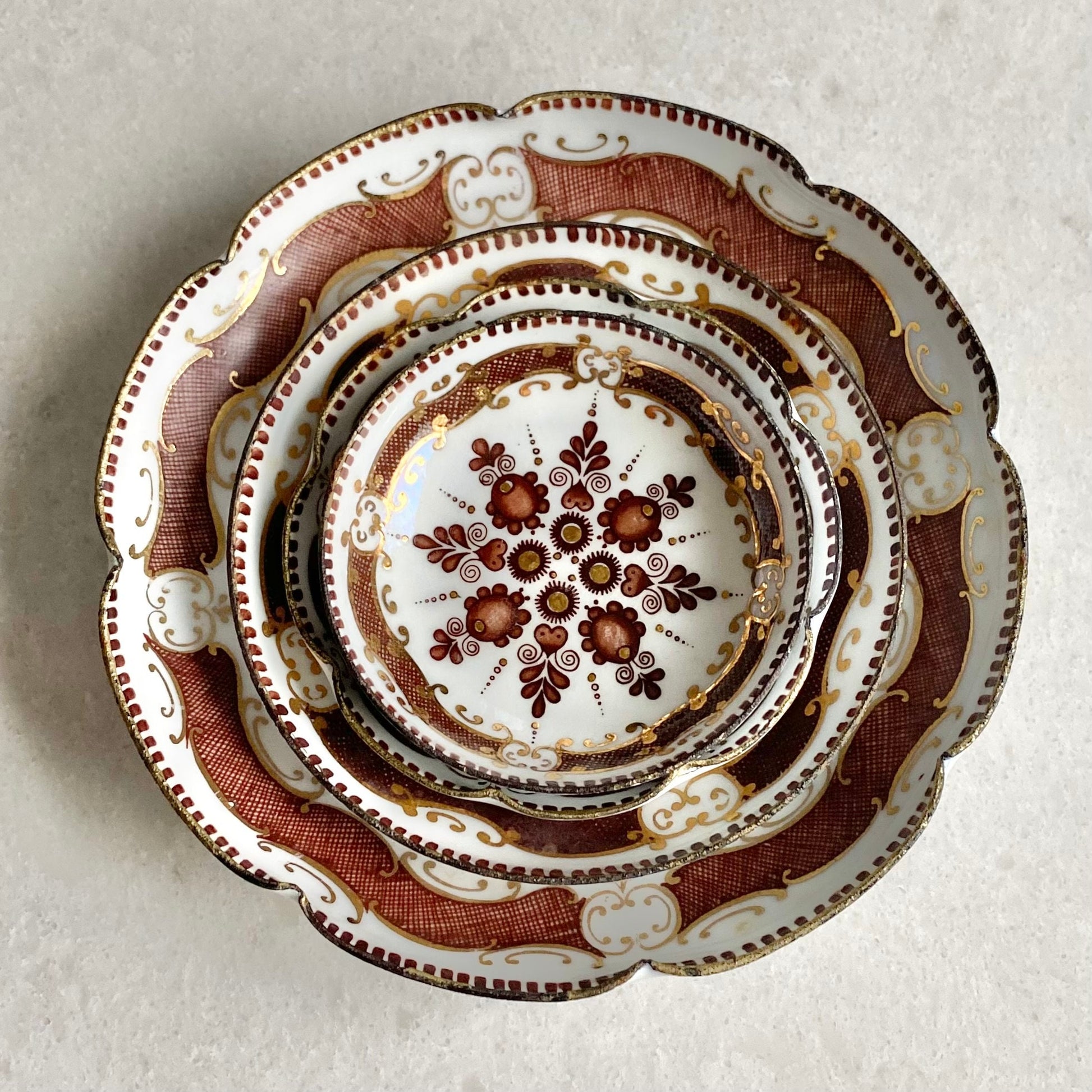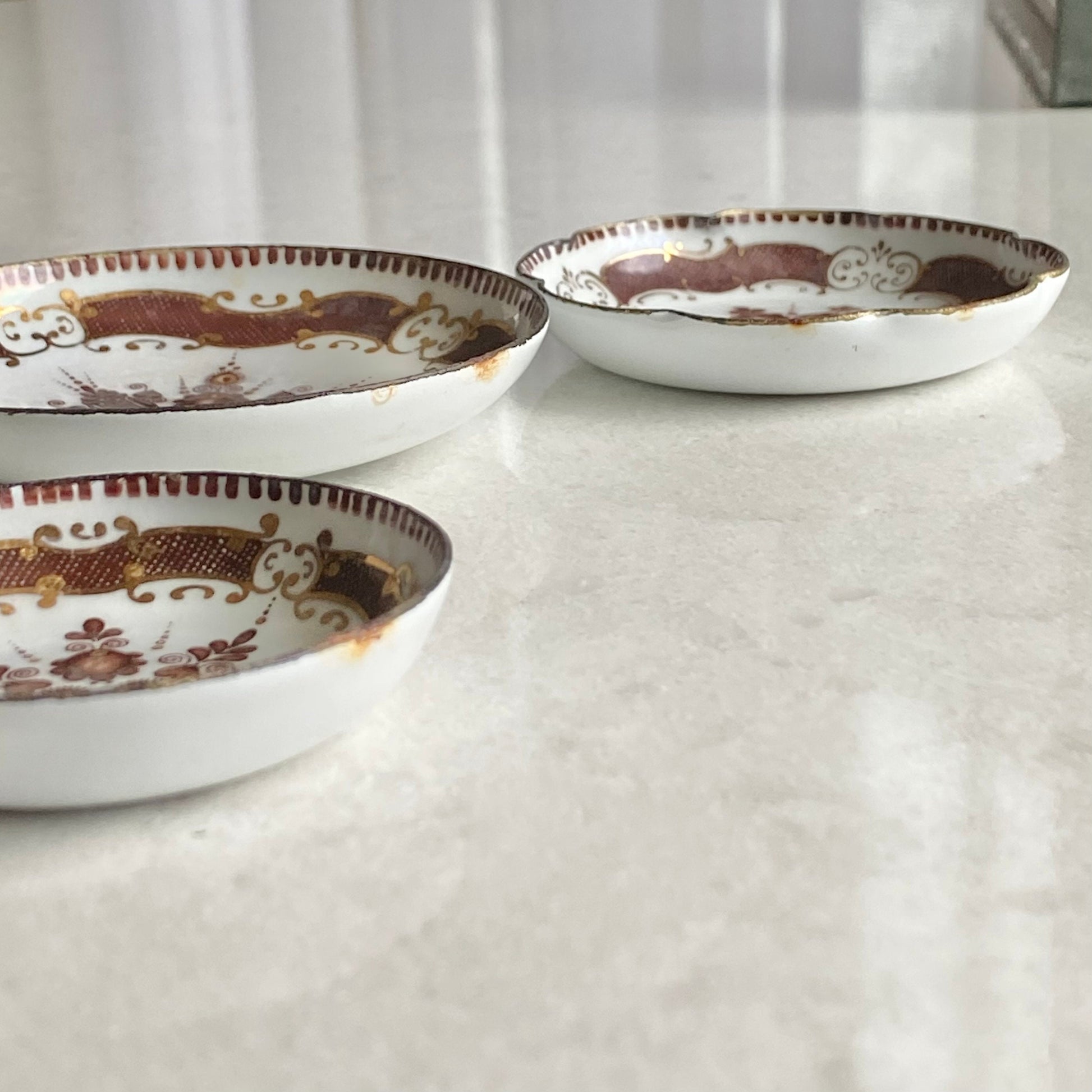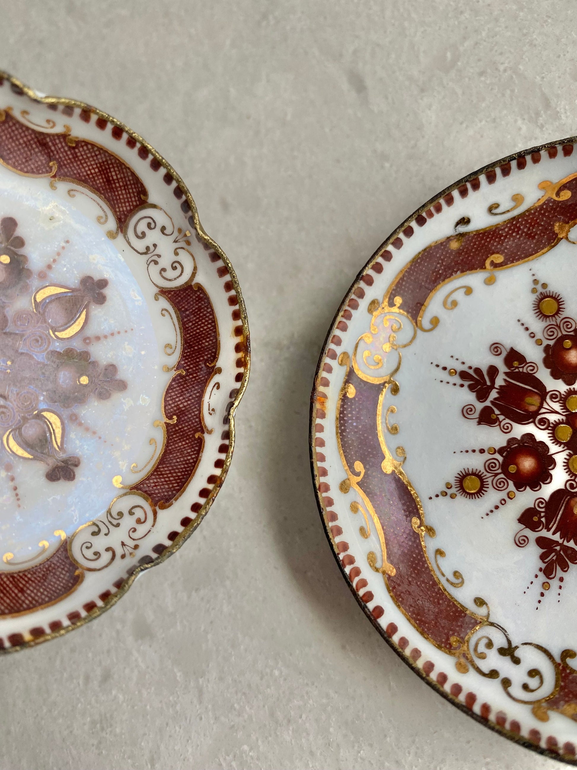 There are a few areas where you can see oxidization, and I think these bowls are metal with a ceramic overlay. The color of the design is darker in real life than it appears on my screen so please remember that colors vary from monitor to monitor.
