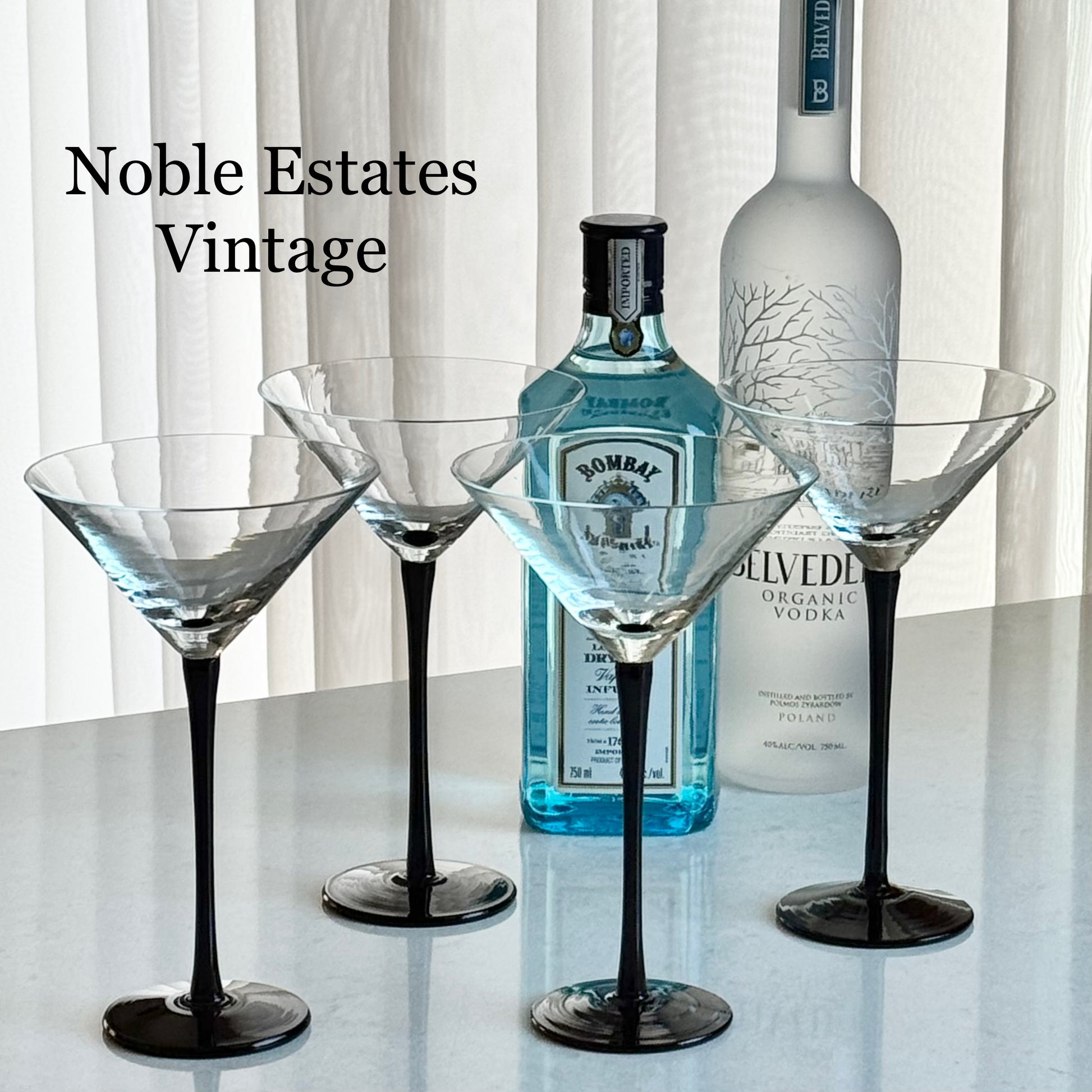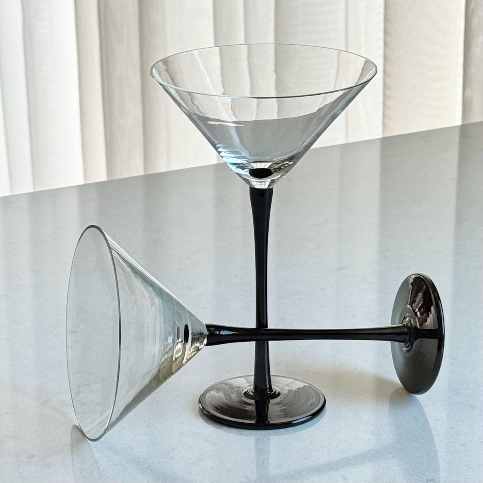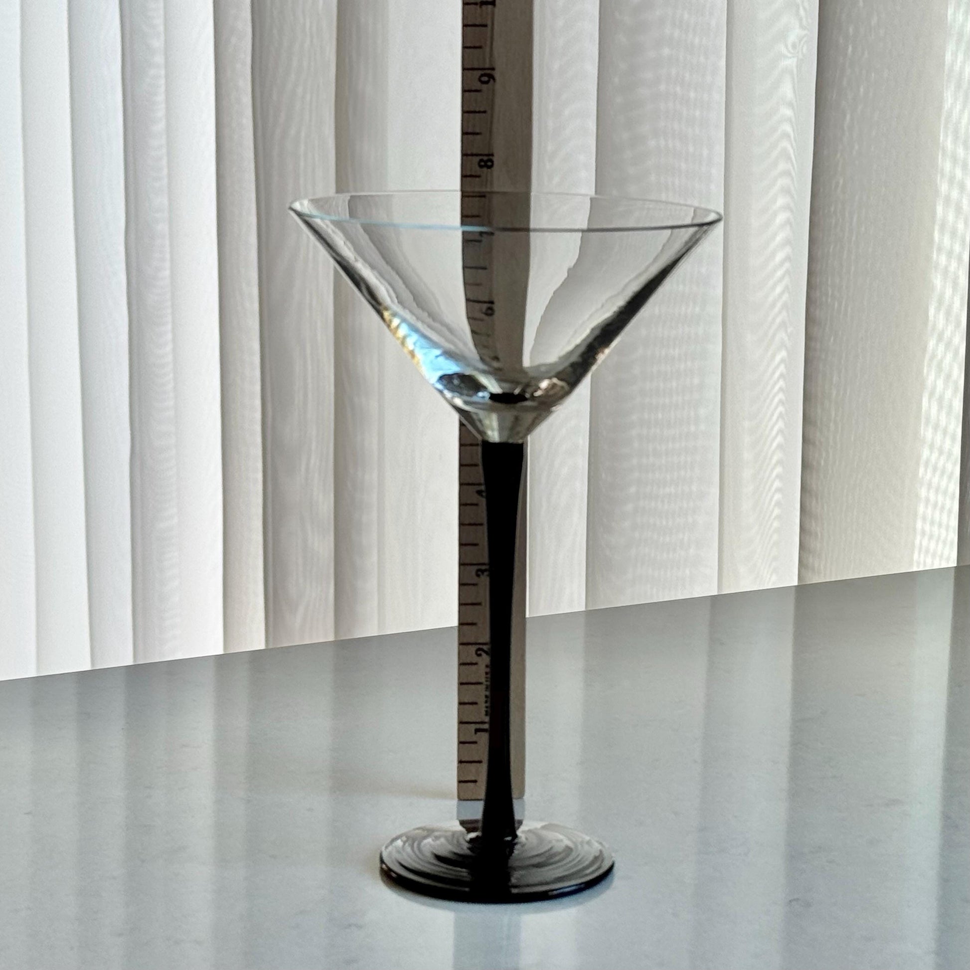 Set of four swanky long stemmed glasses! Approximately 7-5/8" tall and 4-3/4" across the rim with a capacity of about 8 ounces completely full. Excellent vintage condition. Note that these are tall glasses, as shown with the standard sized can and other items used for scale. There are other glasses in this line available as shown in the last photo and listed separately. FREE SHIPPING in the continental U.S. included in the price. If you are outside of this area please contact me for options. Any props used or other items shown are for photo purposes only and are not included with the items being sold.