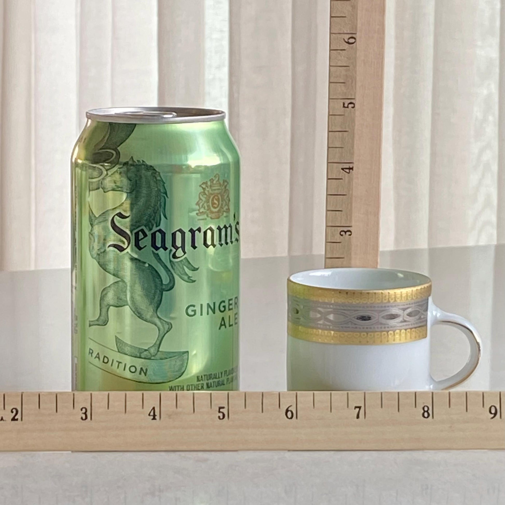 The cups are approximately 2-3/8" tall with a capacity of about 4 ounces completely full. The saucers are approximately 4-3/4" across. Excellent vintage condition.
