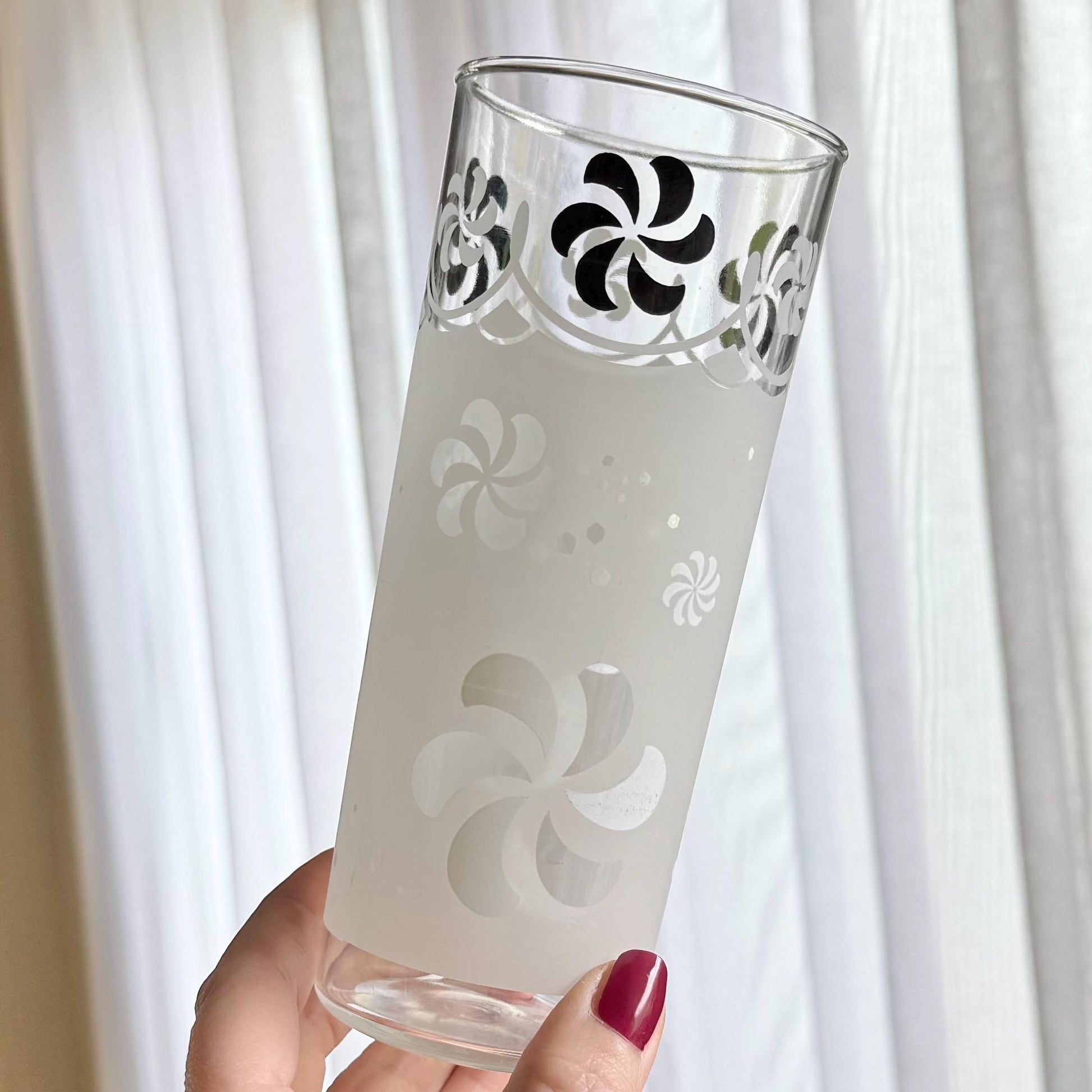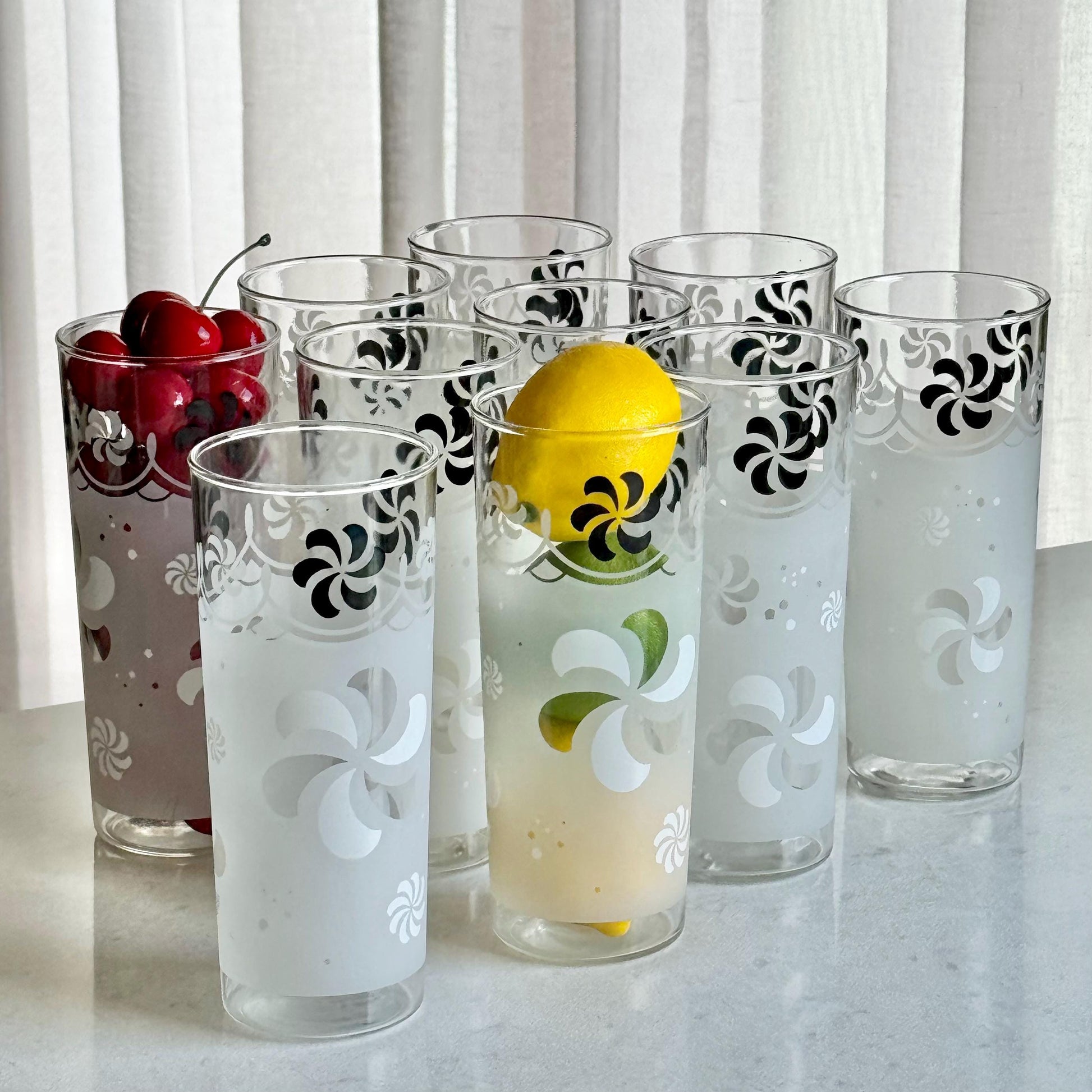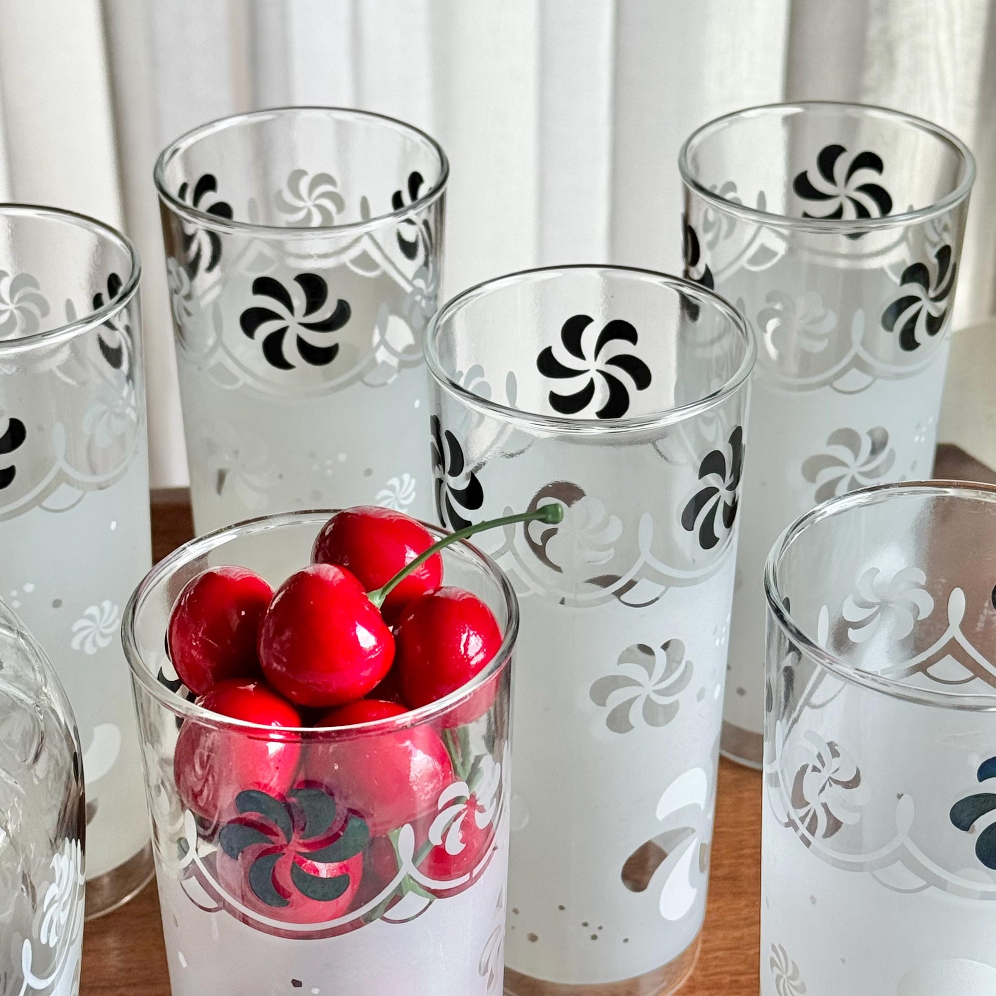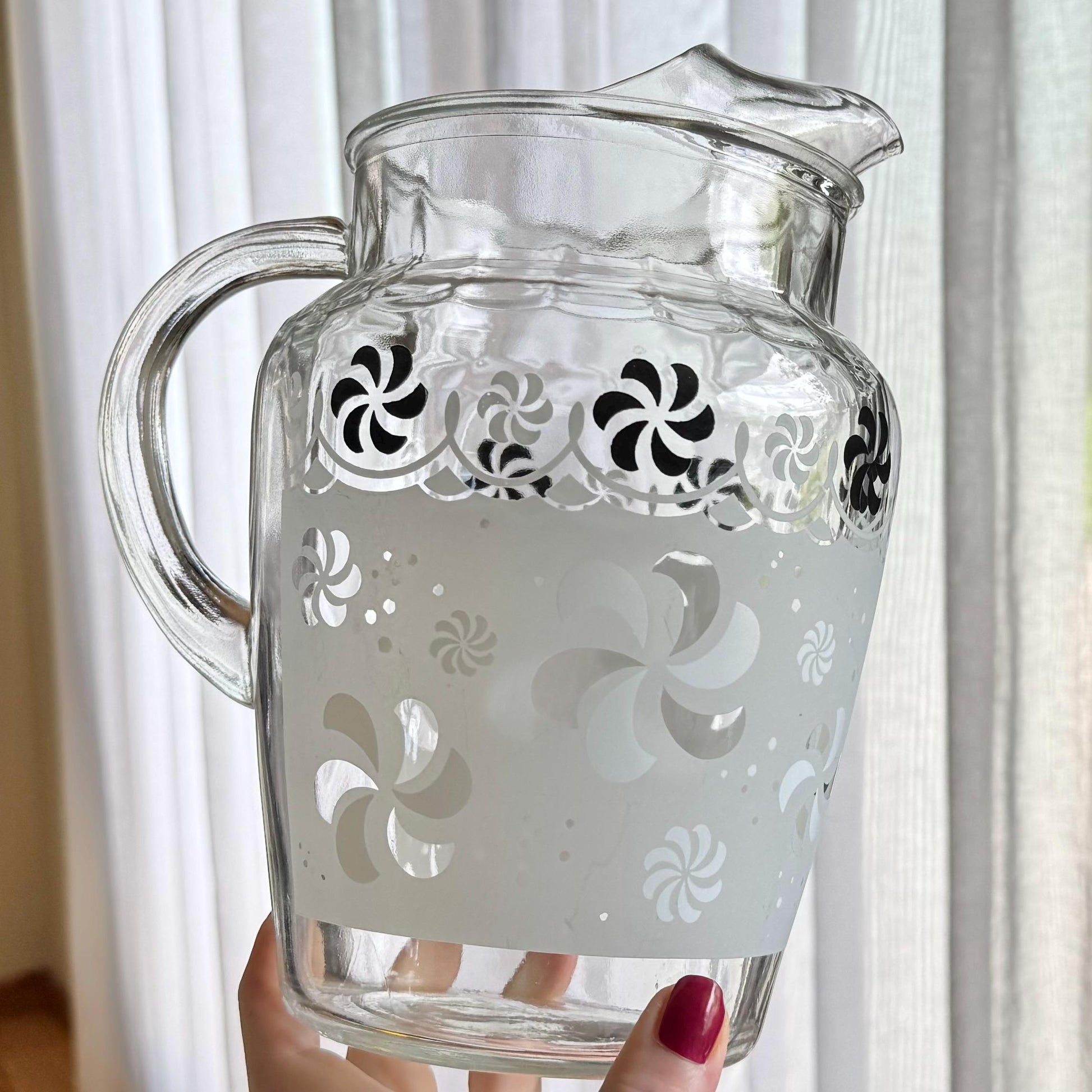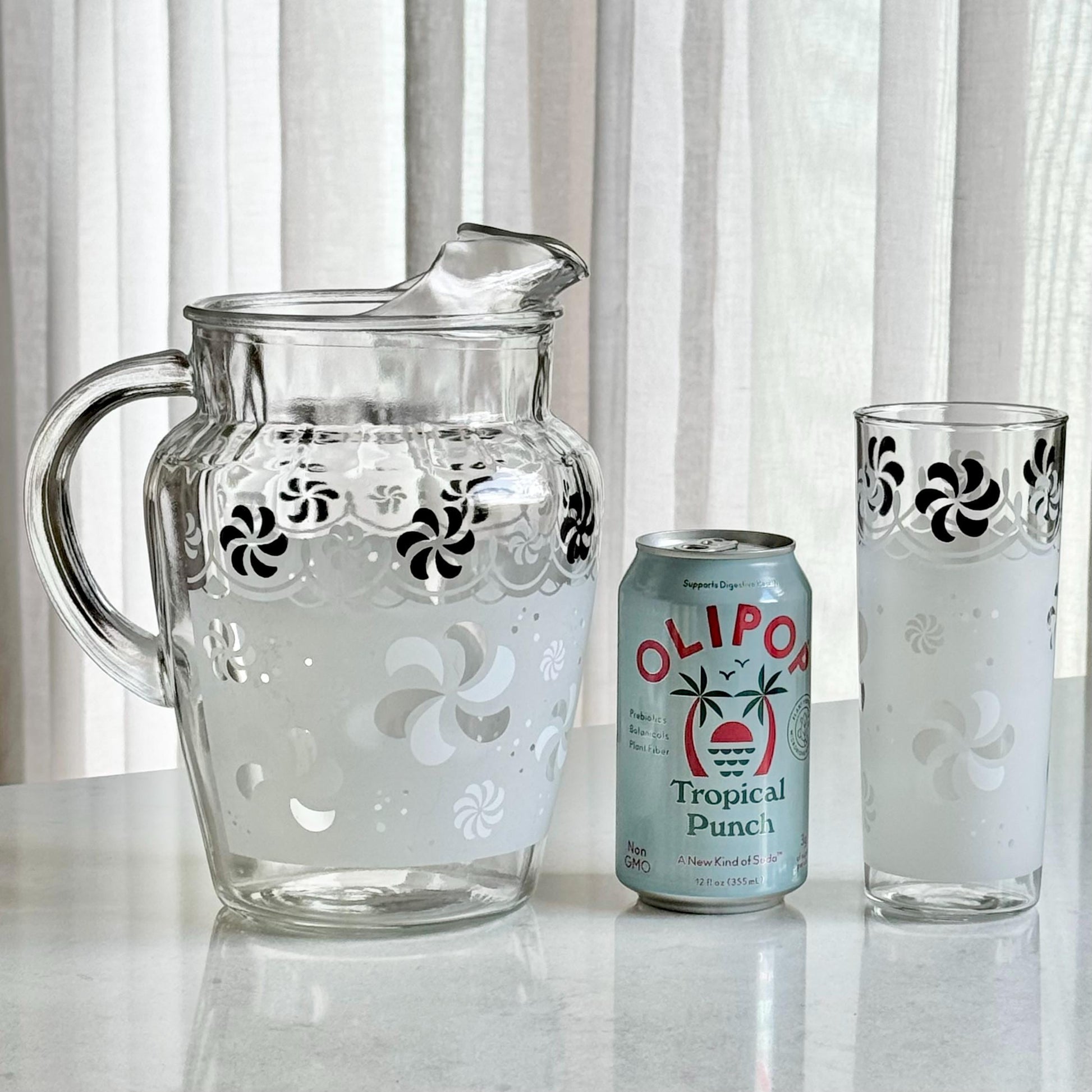 Vintage Black and White Pinwheel Pitcher and Ten (10) Glasses