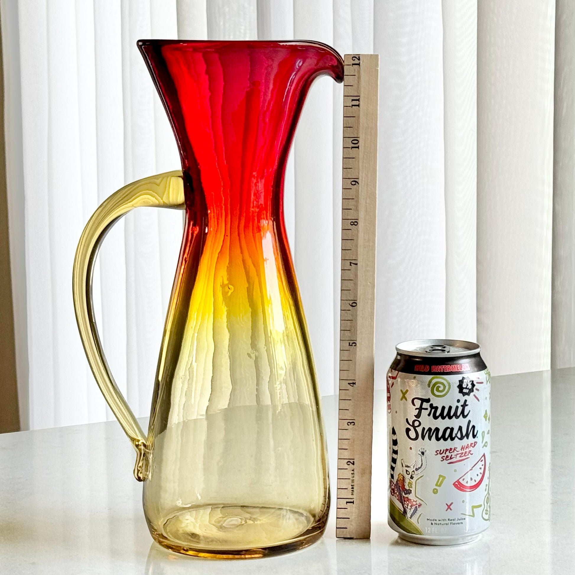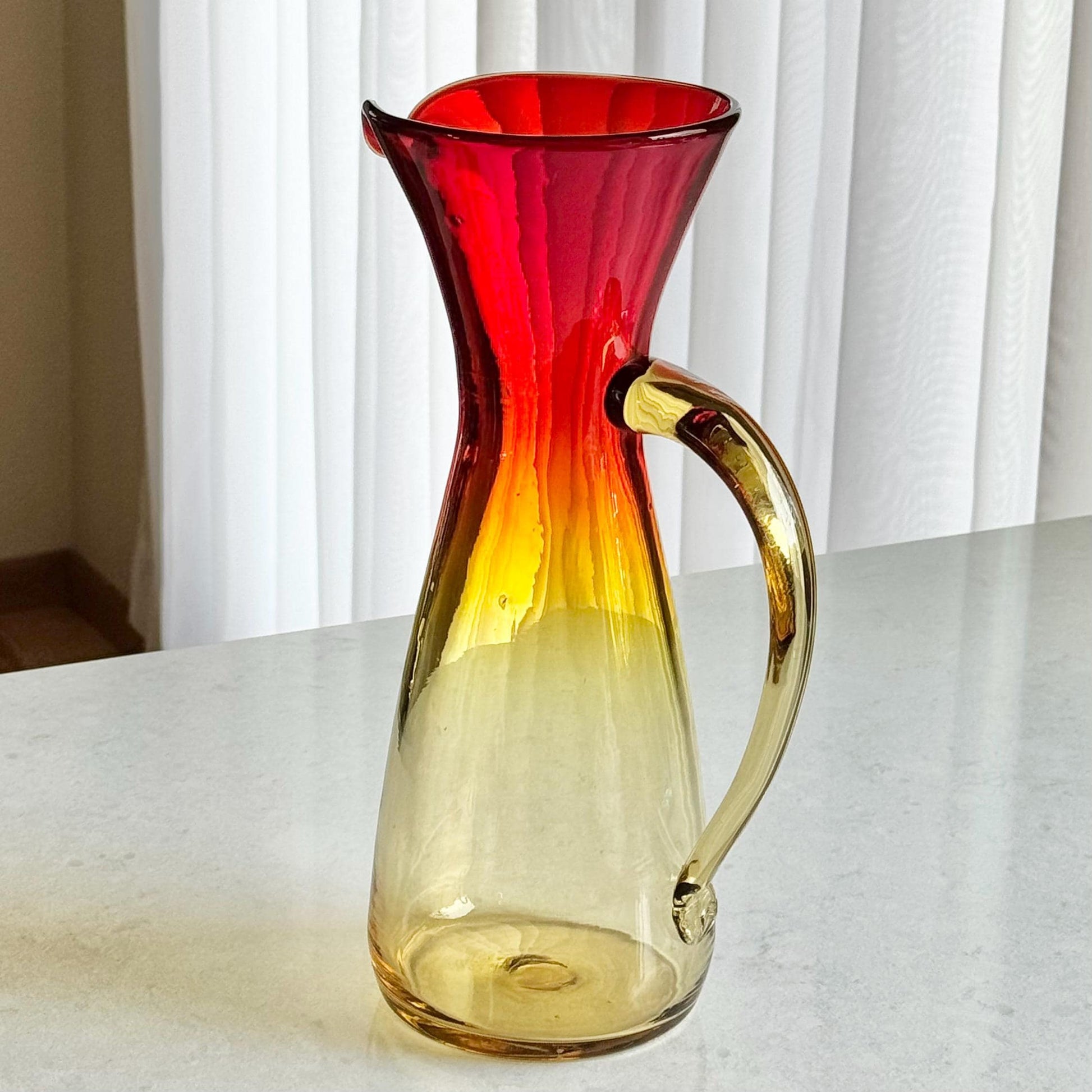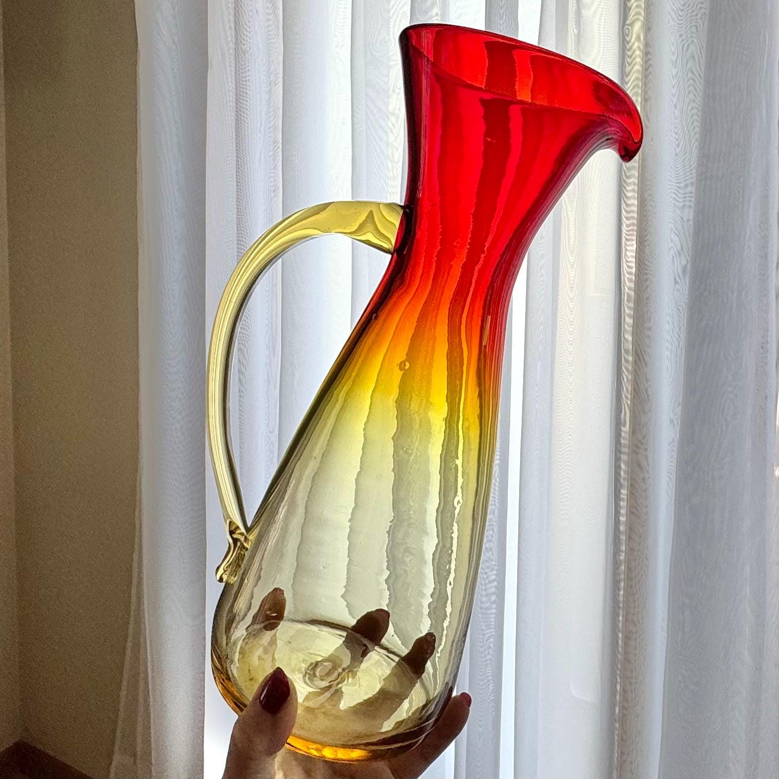 There is another Blenko Tangerine Amberina Pitcher also available as shown in the last photo and listed separately. In that last photo, this is the TALLER of the two pieces shown.