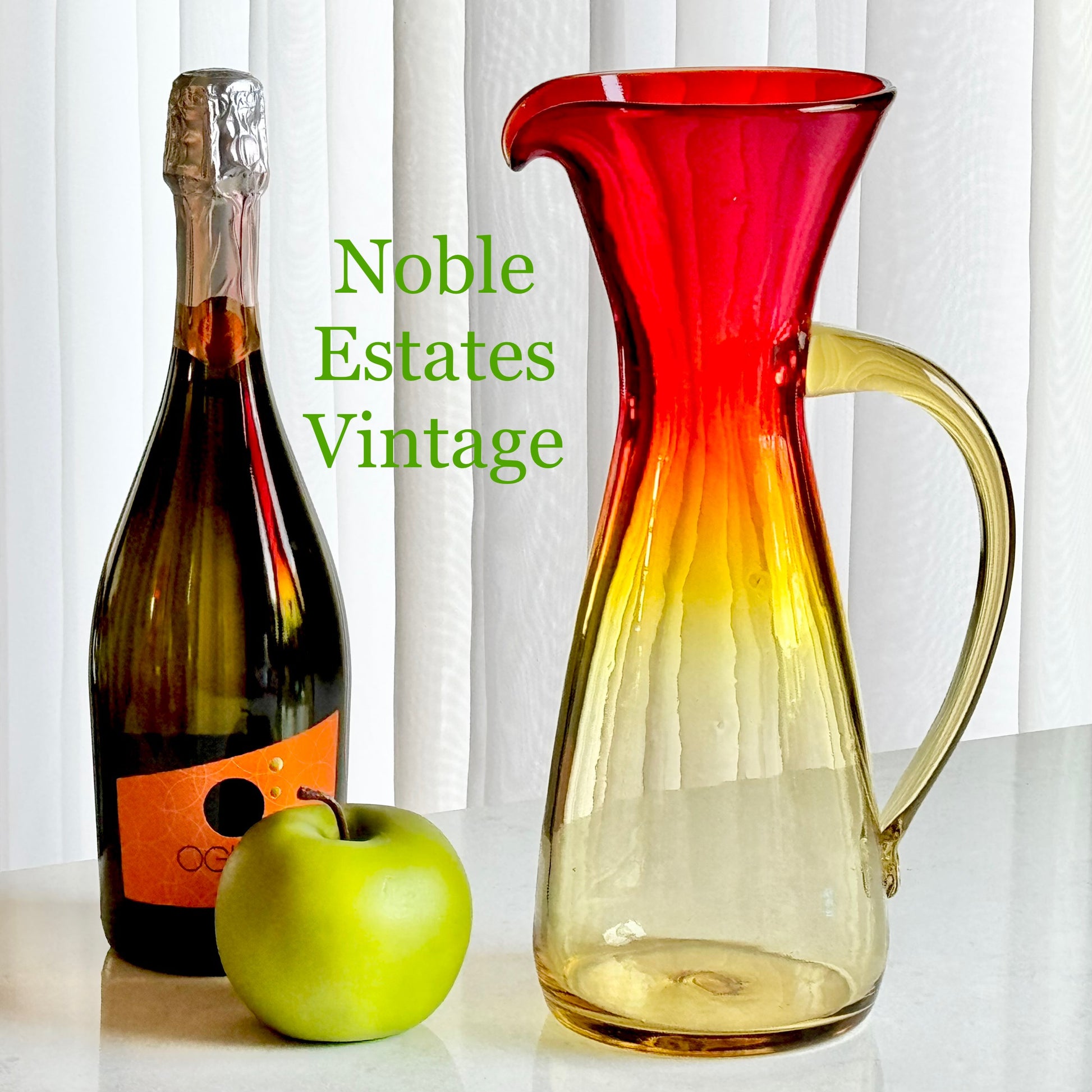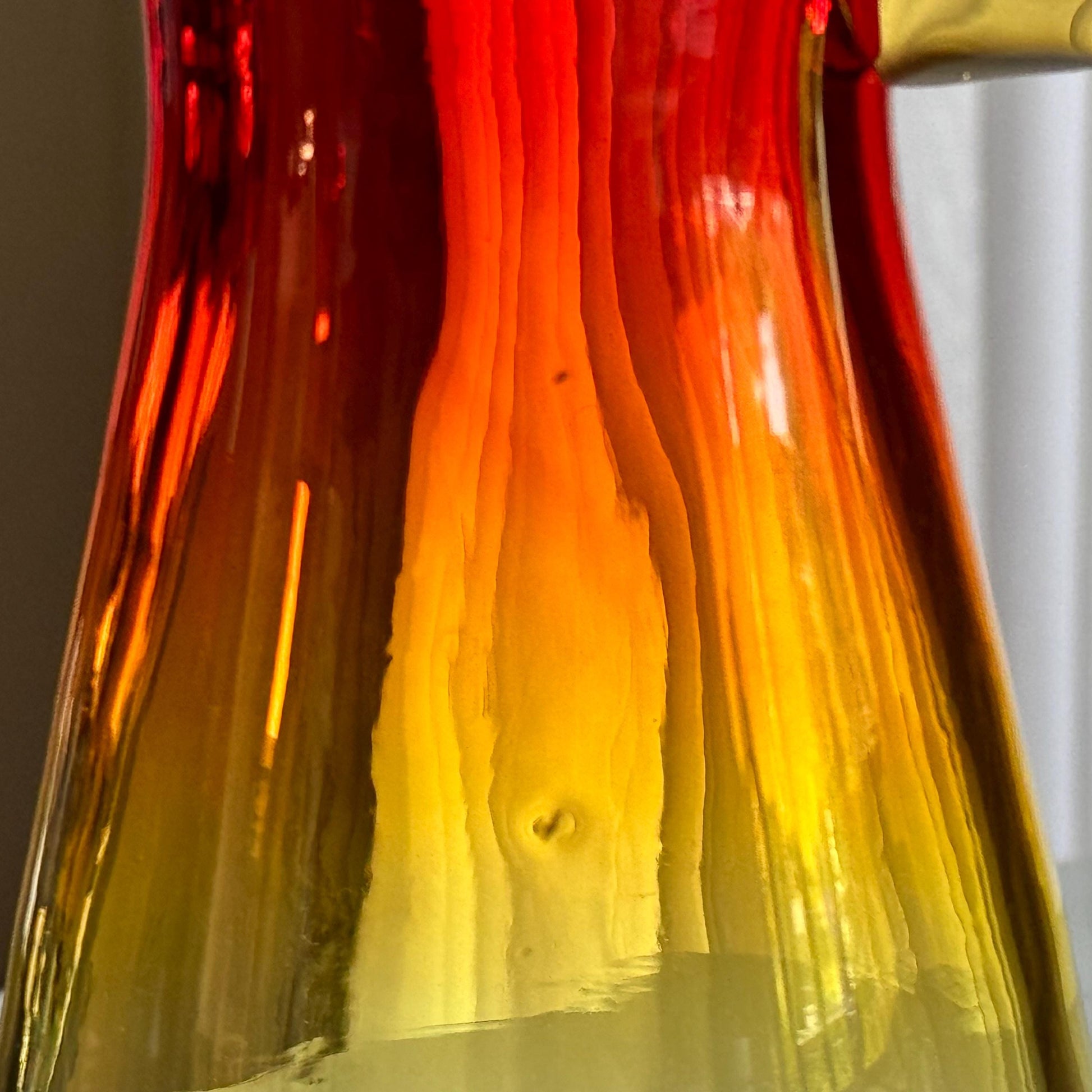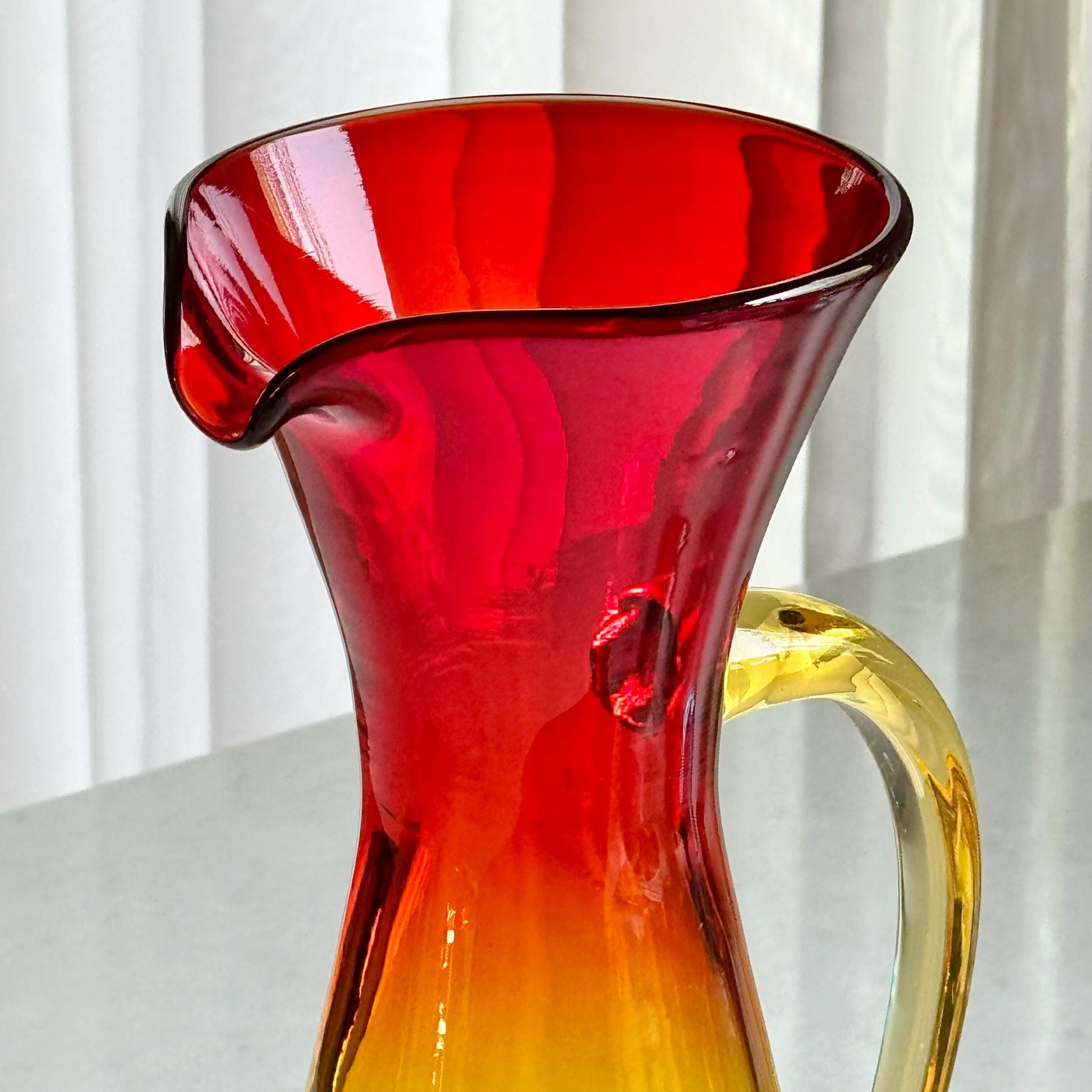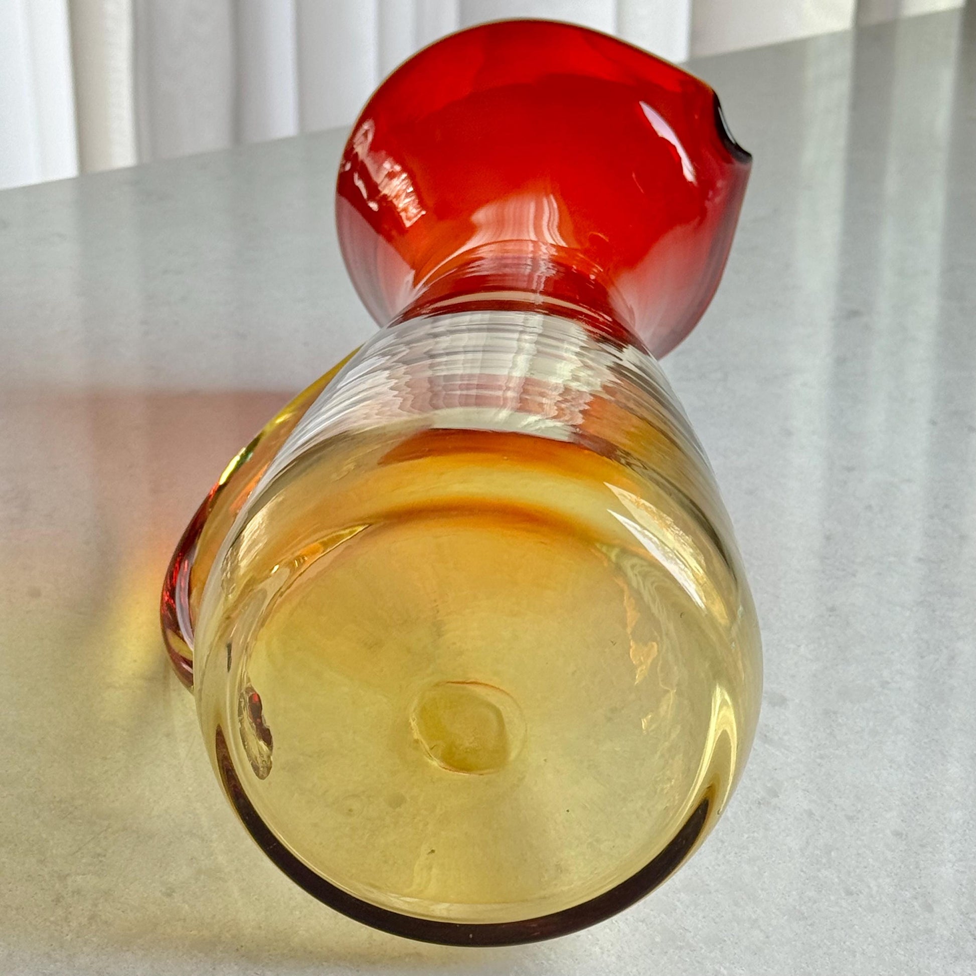 There is another Blenko Tangerine Amberina Pitcher also available as shown in the last photo and listed separately. In that last photo, this is the TALLER of the two pieces shown.