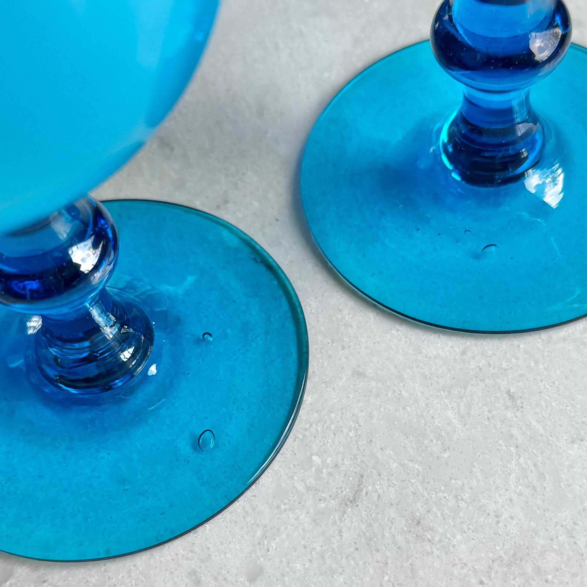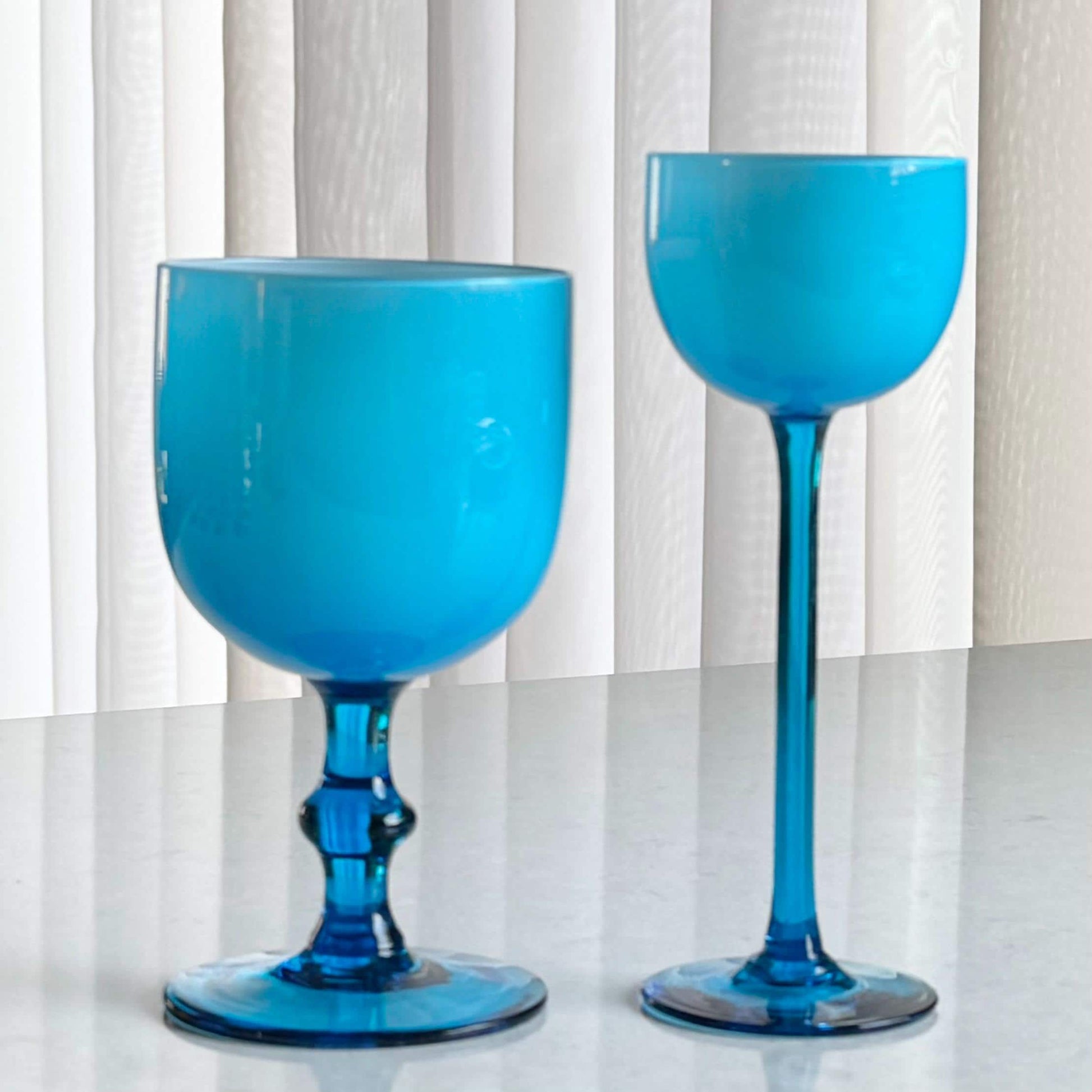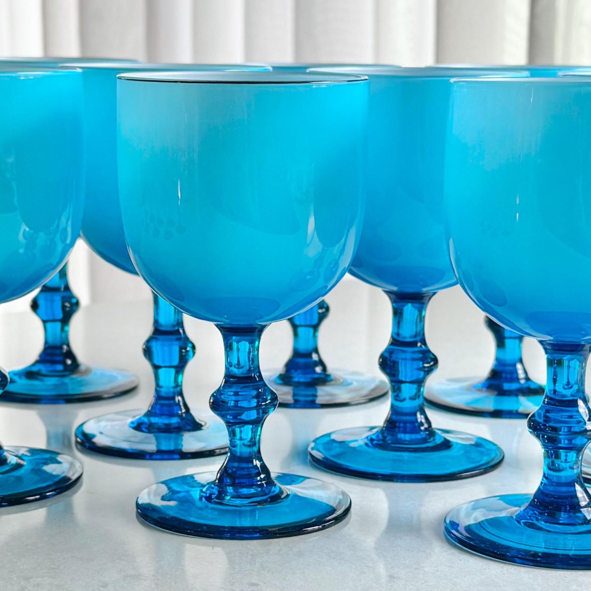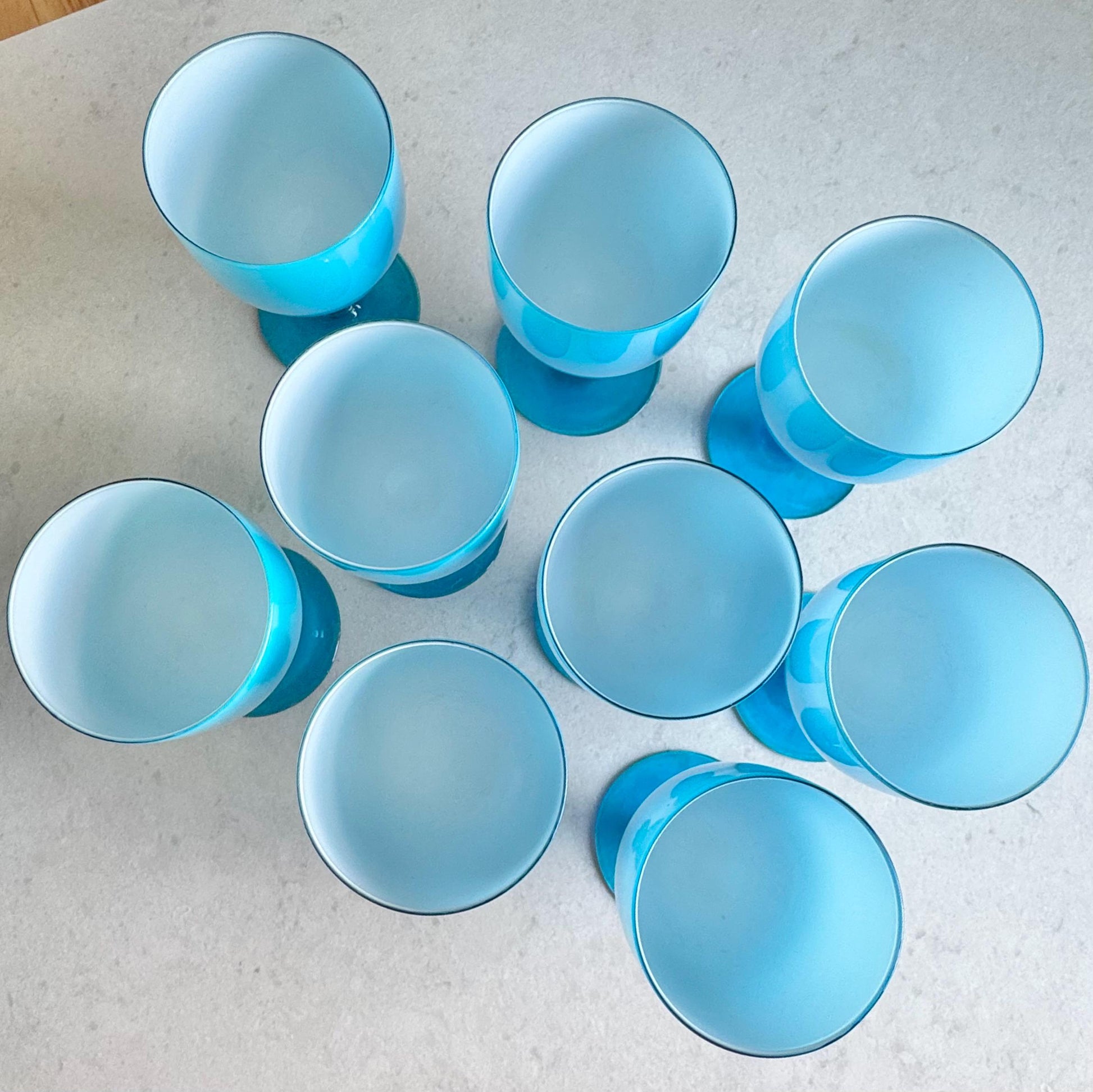 Vintage Carlo Moretti Crysta Blue Cased Glasses - Set of 9 Goblets
