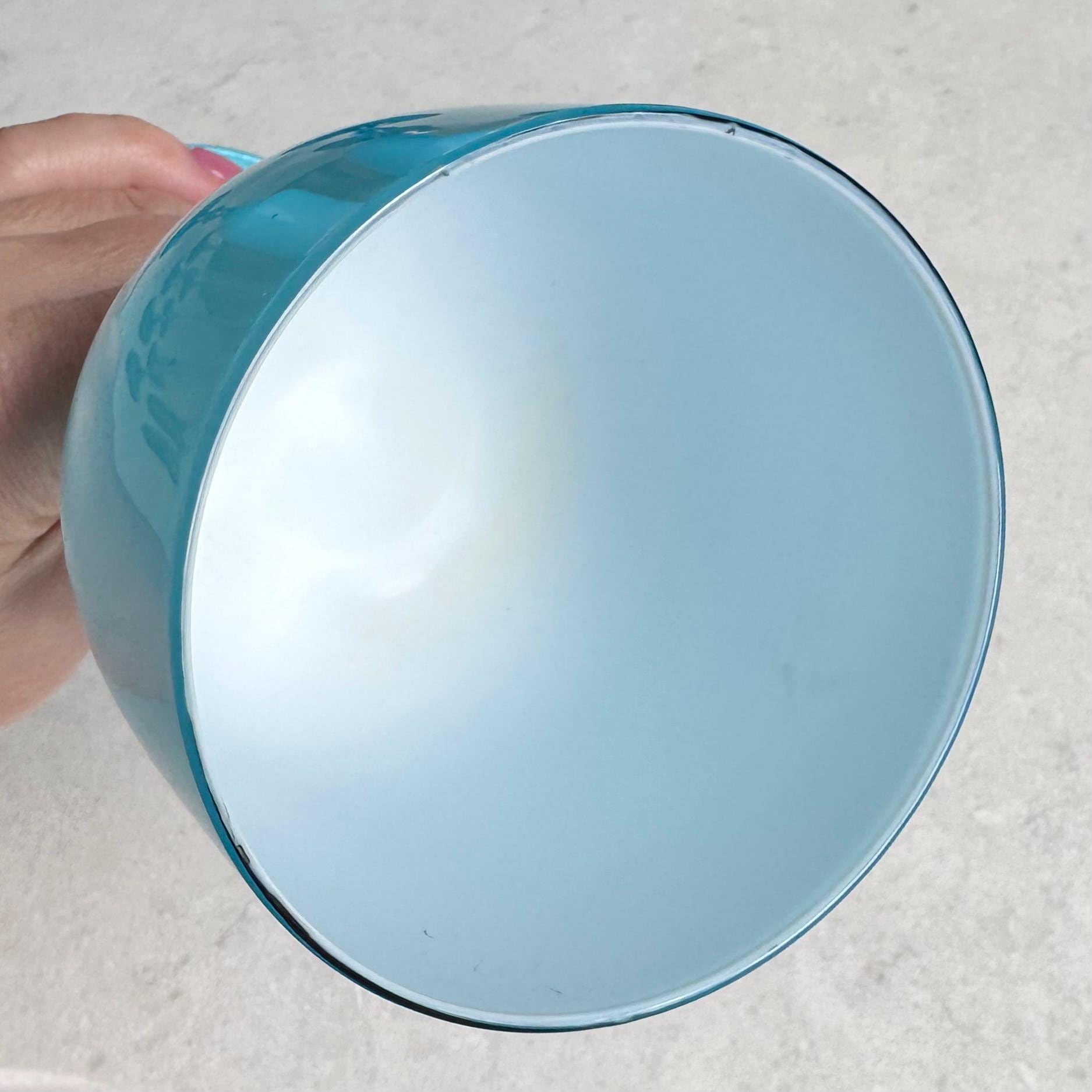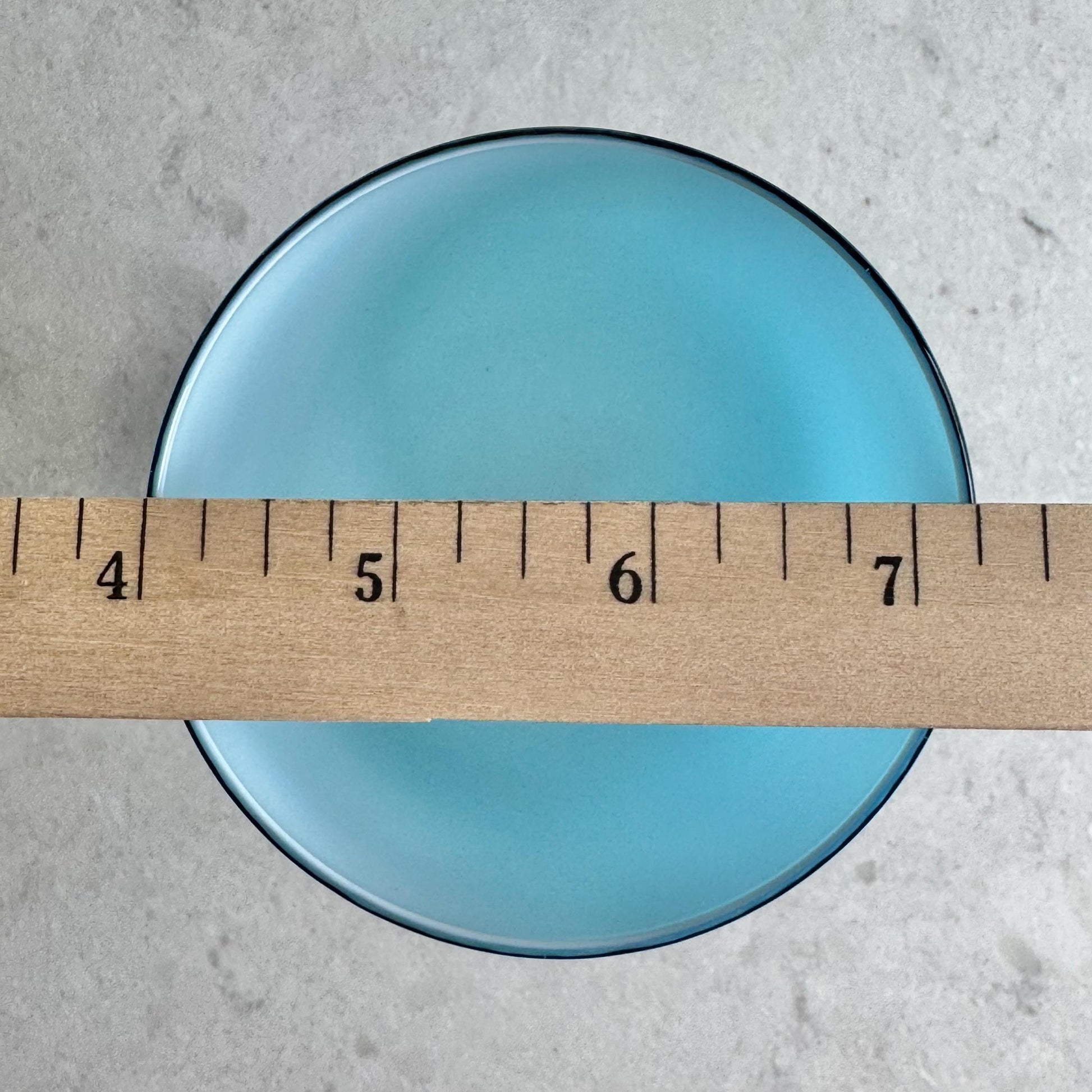 Approximately 6" tall and 3-1/4" across the rim with a capacity of about 10 ounces completely full.