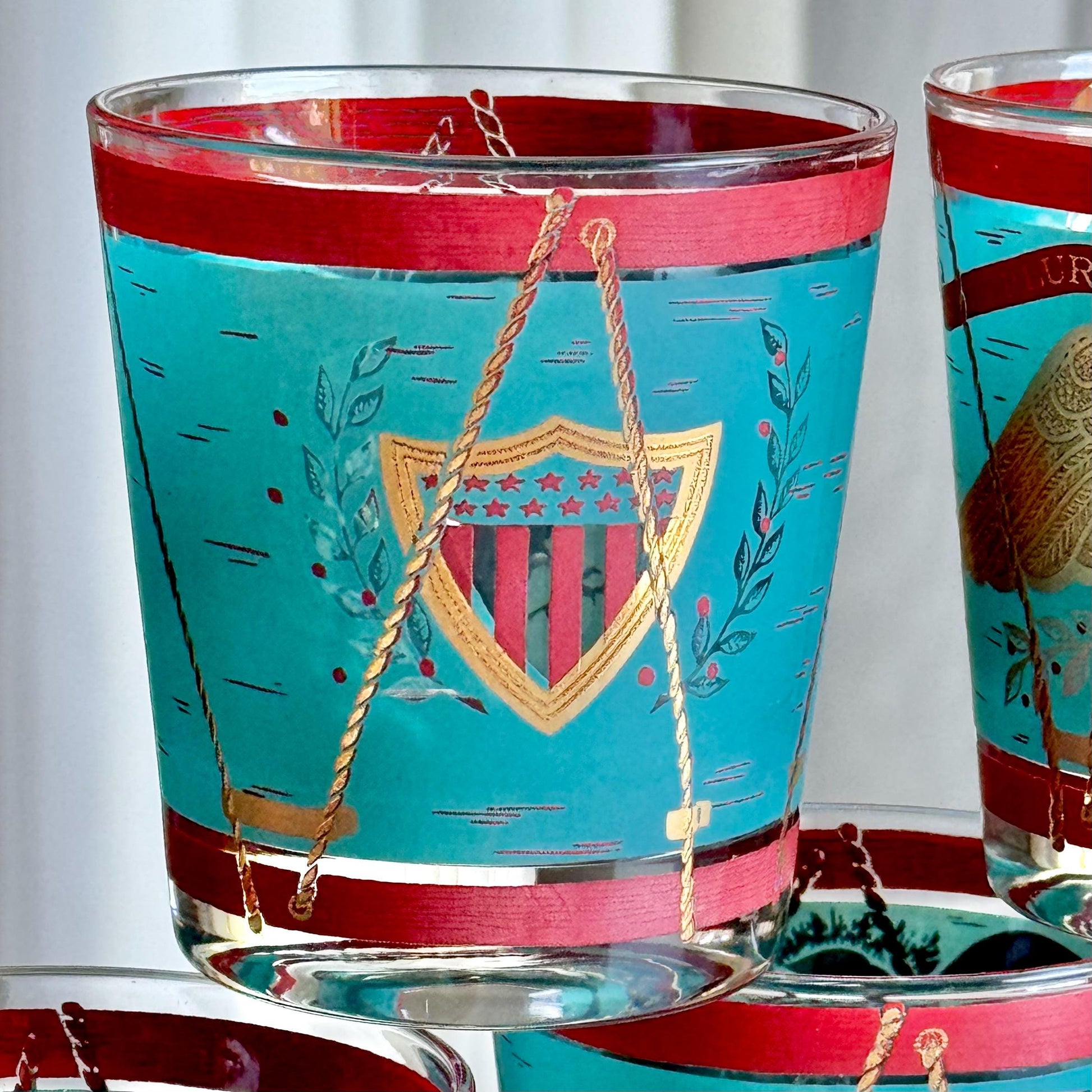 Vintage Cera E Pluribus Unum Regimental Drum Glasses - Set of 5