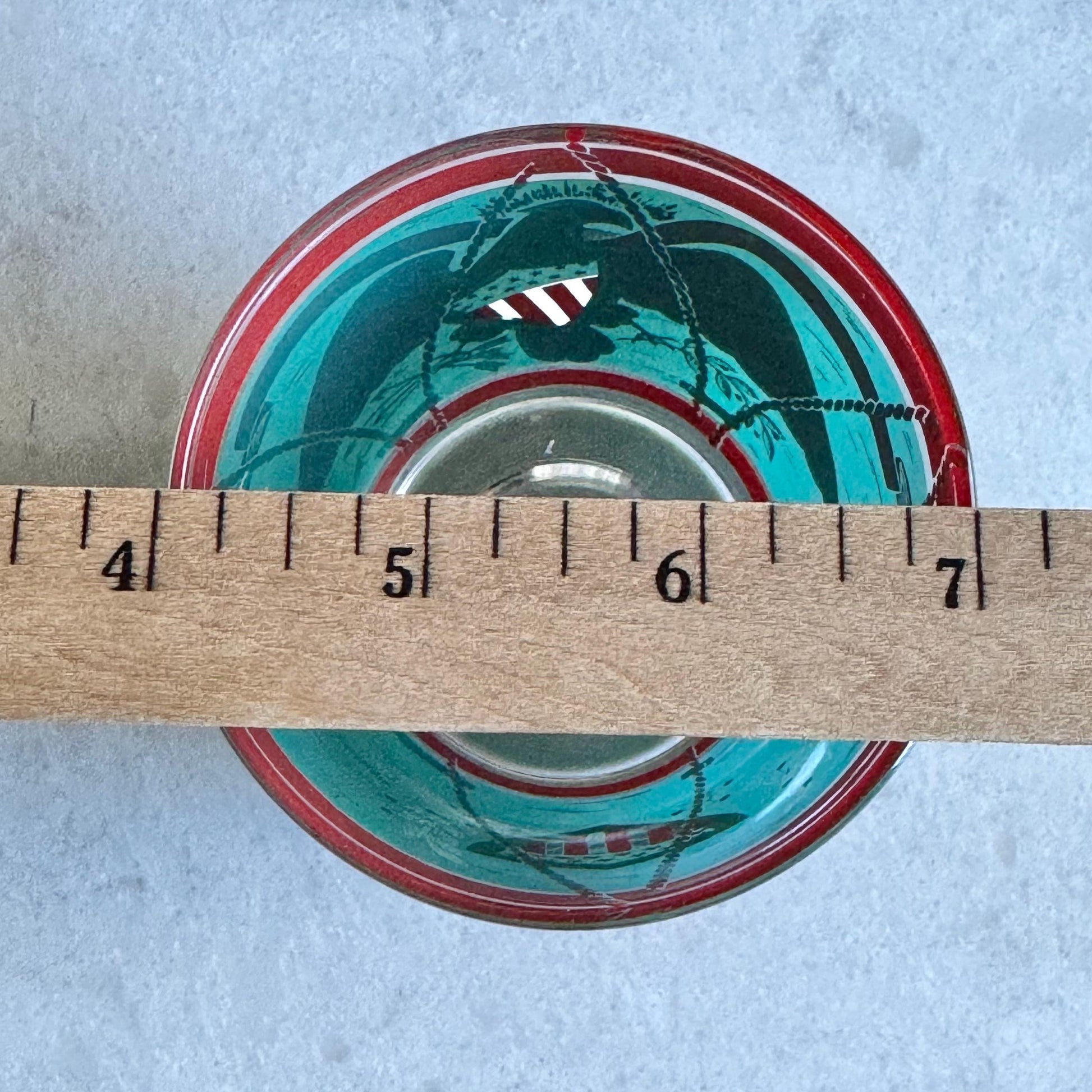 Approximately 3-1/4" tall and 3" across the rim with a capacity of about 7 ounces completely full. Excellent vintage condition.