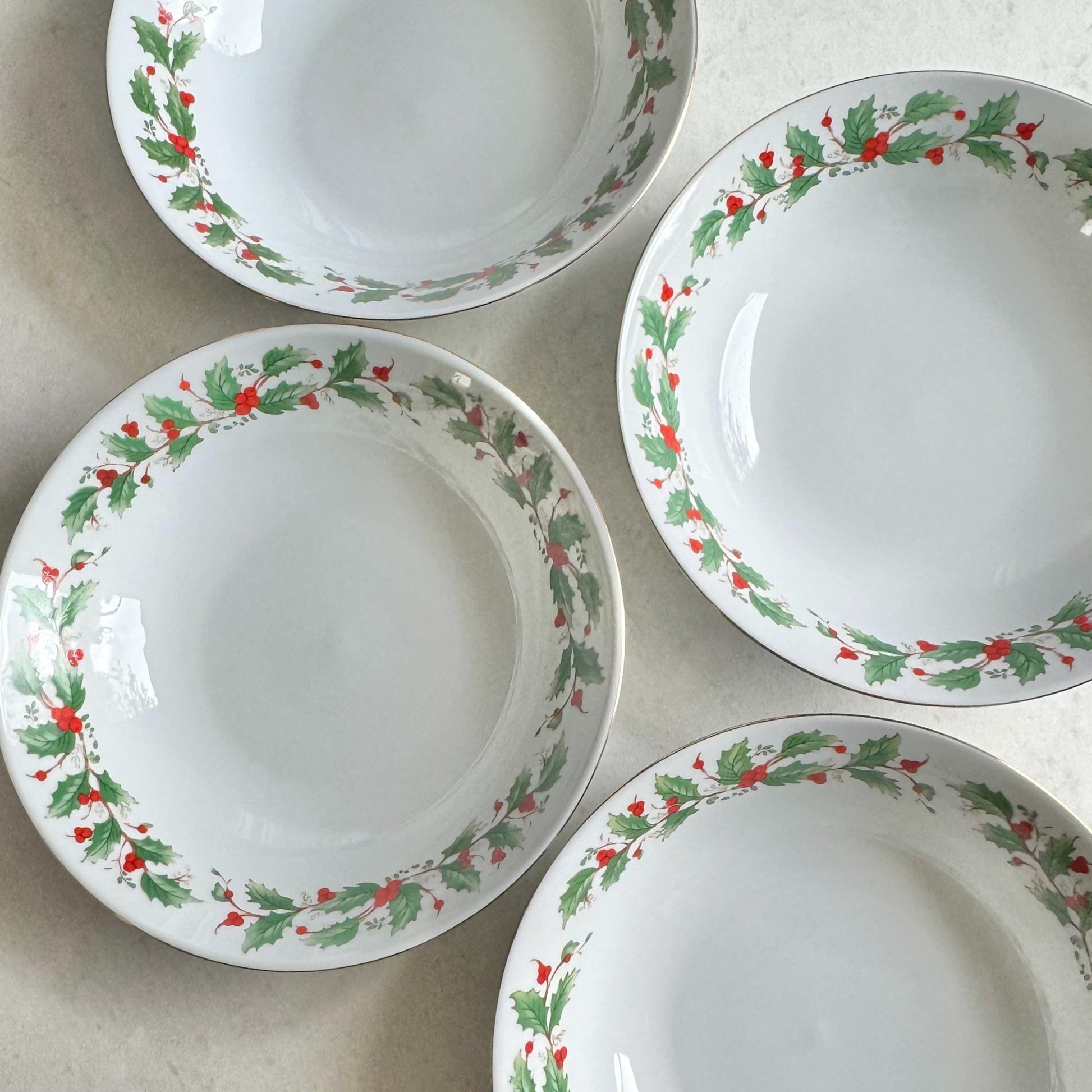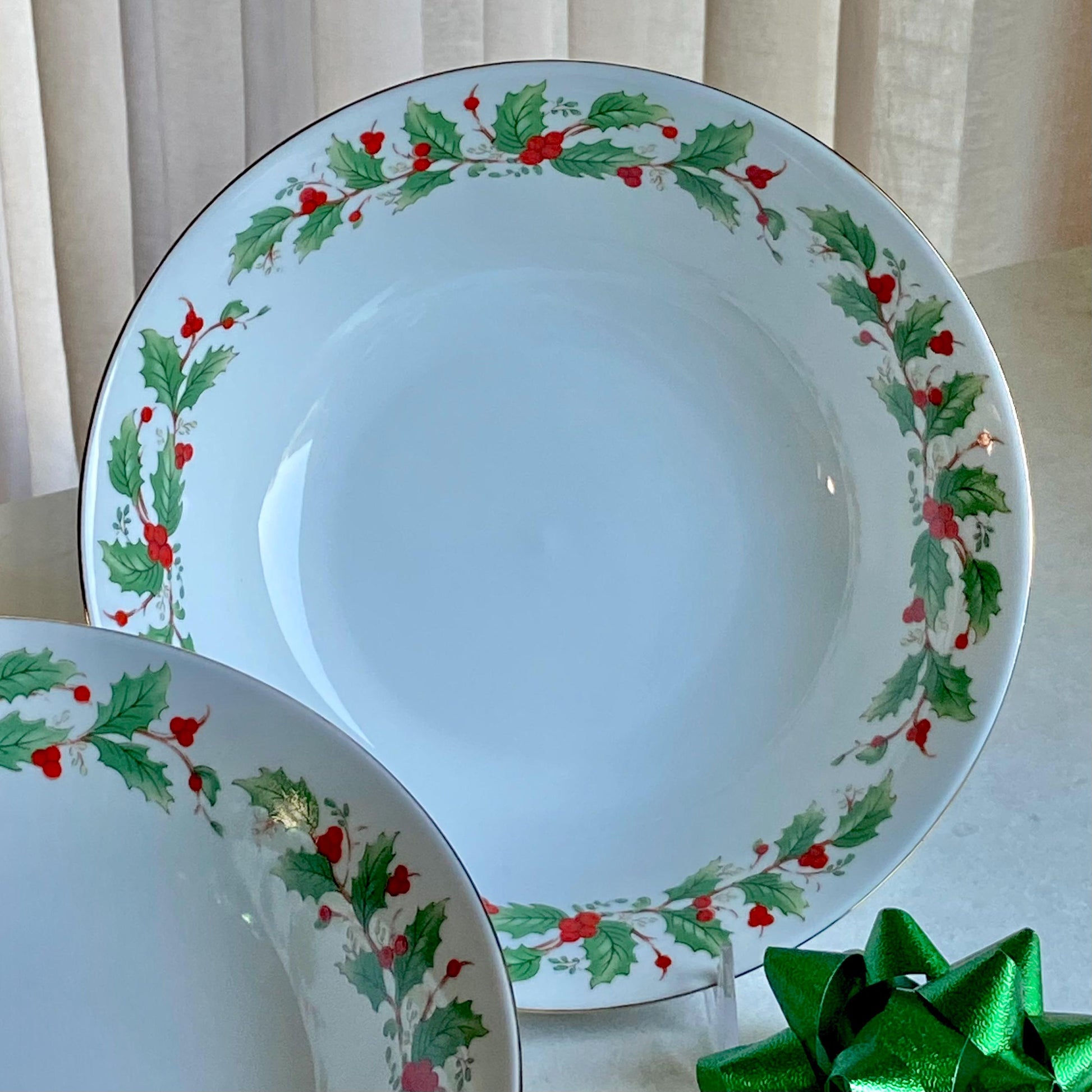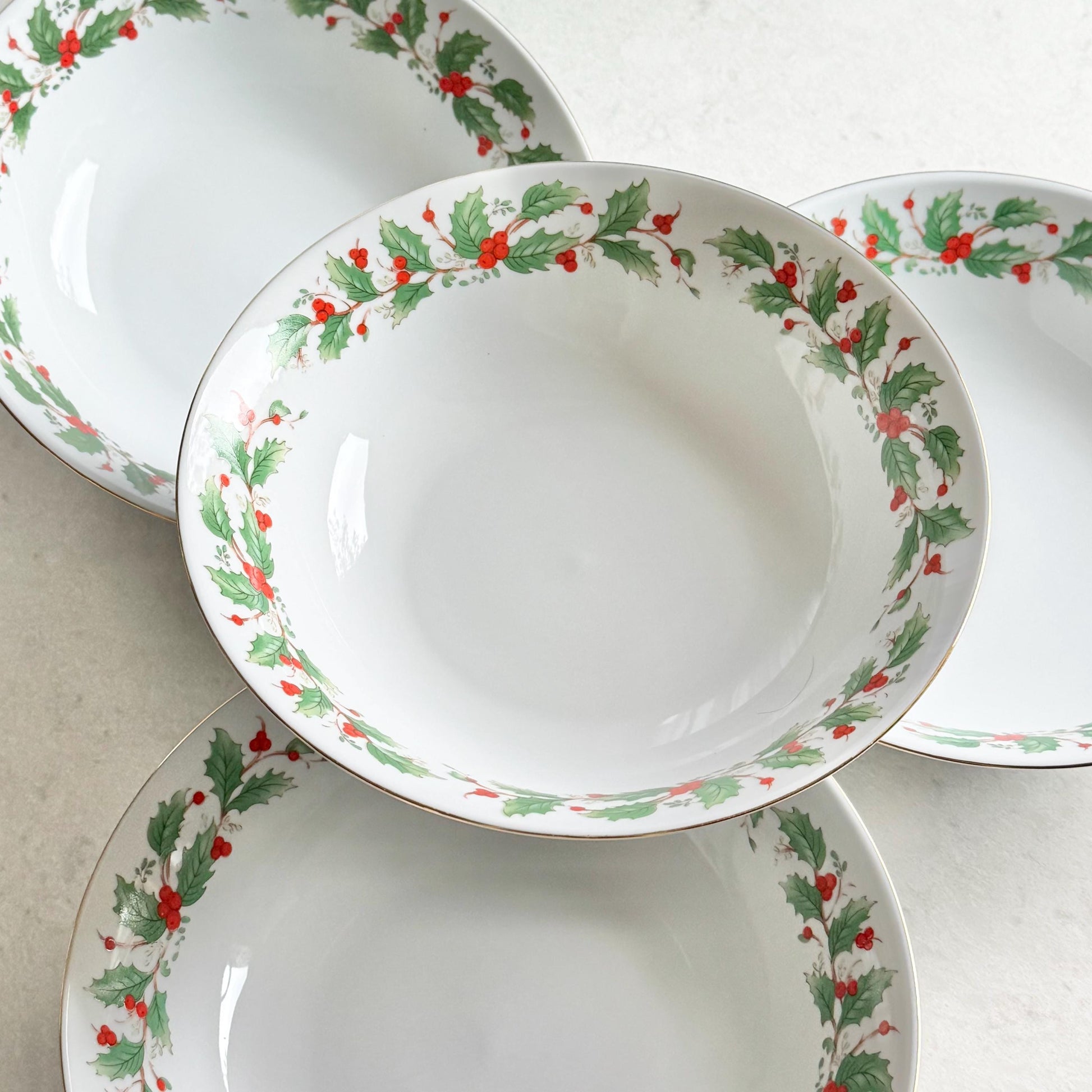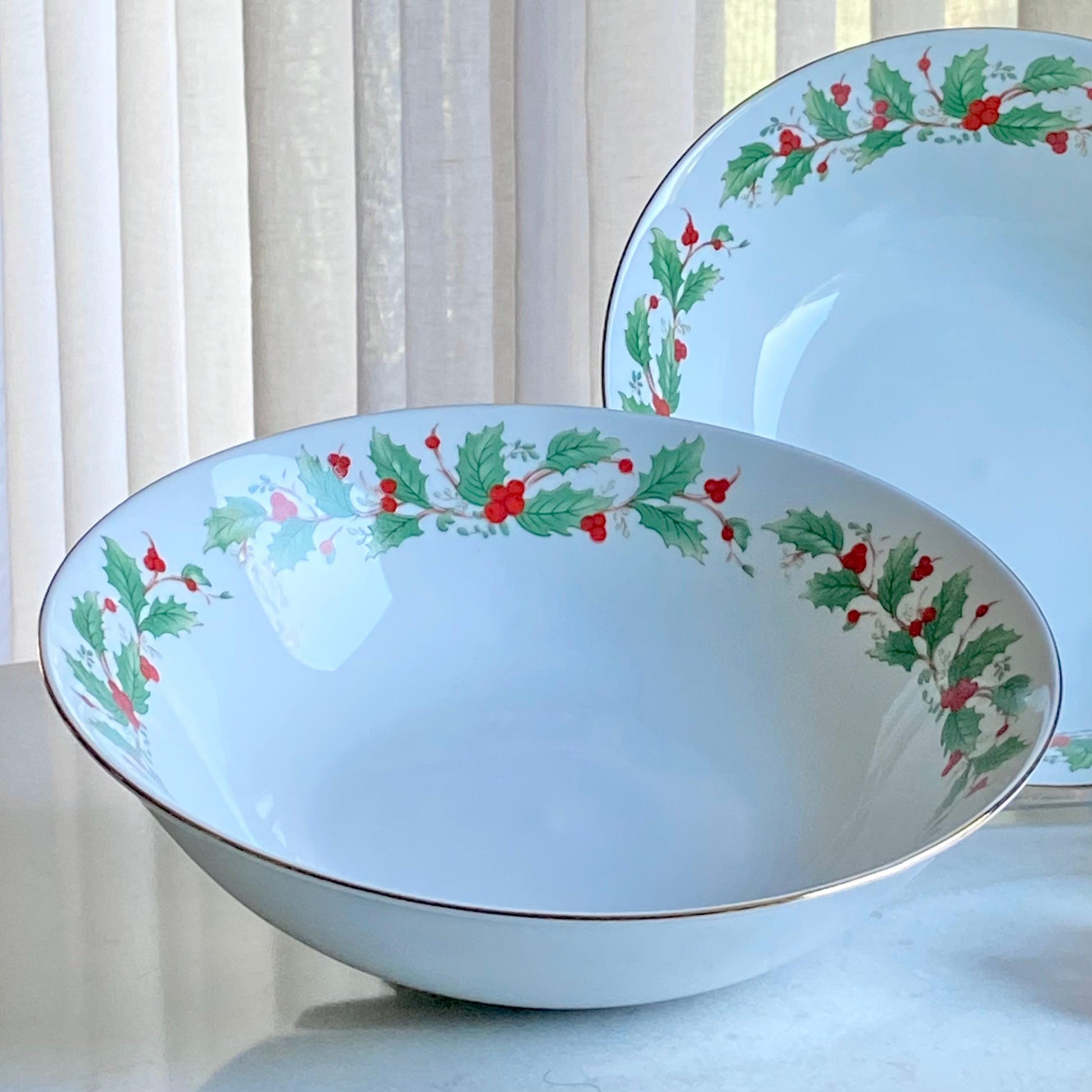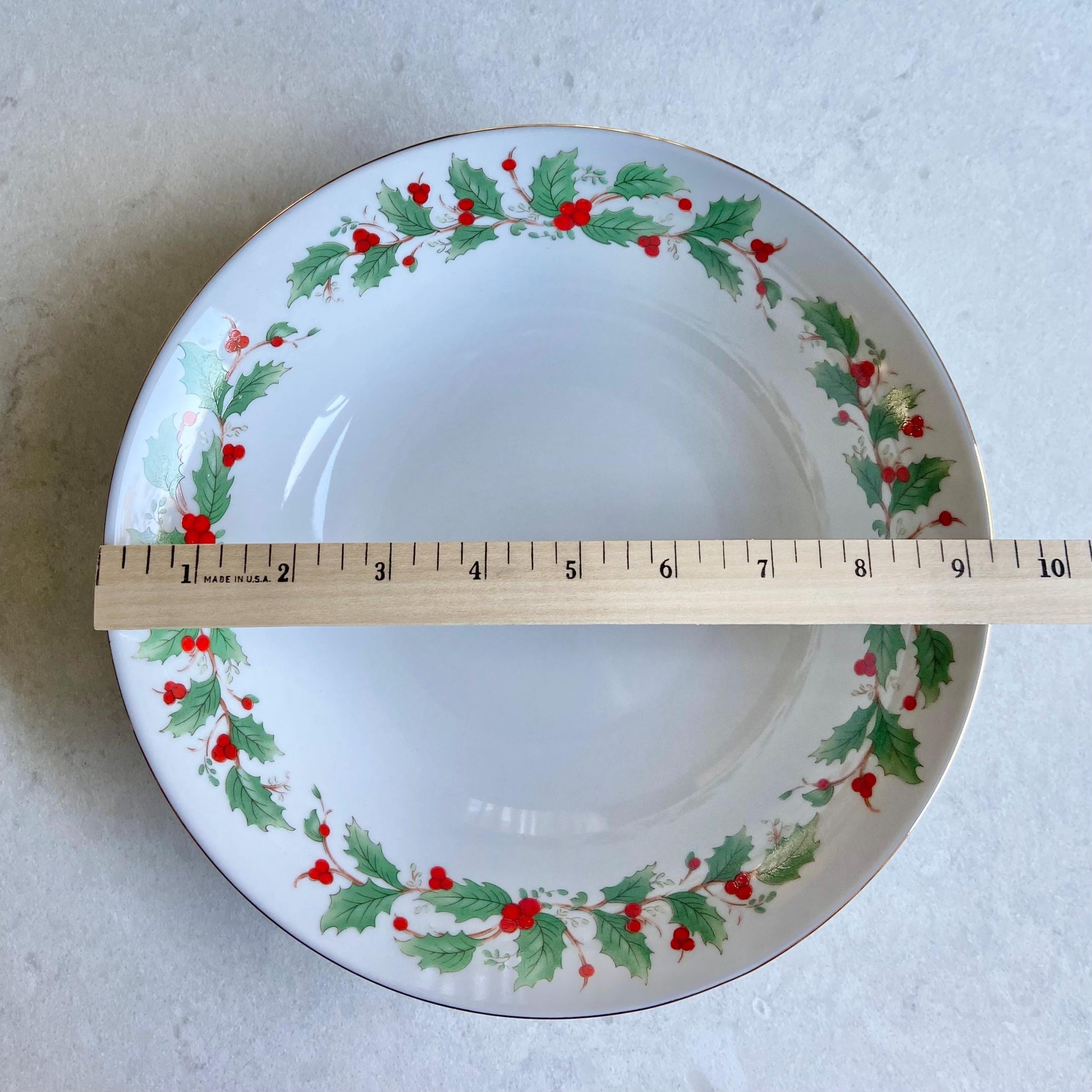 Festive bowls, perfect for your holiday serving needs! Each bowl is sold individually. The bowls are approximately 9-1/4" across and 2-1/2" deep. These are in really great condition, but in the interest of being conservative I have to point out they have been pre-loved and therefore may not be "perfect." Please see my other listings for dishes and additional serving pieces, all of which are listed separately and shown in some of the photos. FREE SHIPPING in the continental U.S. included in the price. If you are outside of this area or have a specific shipping request please contact me for options.