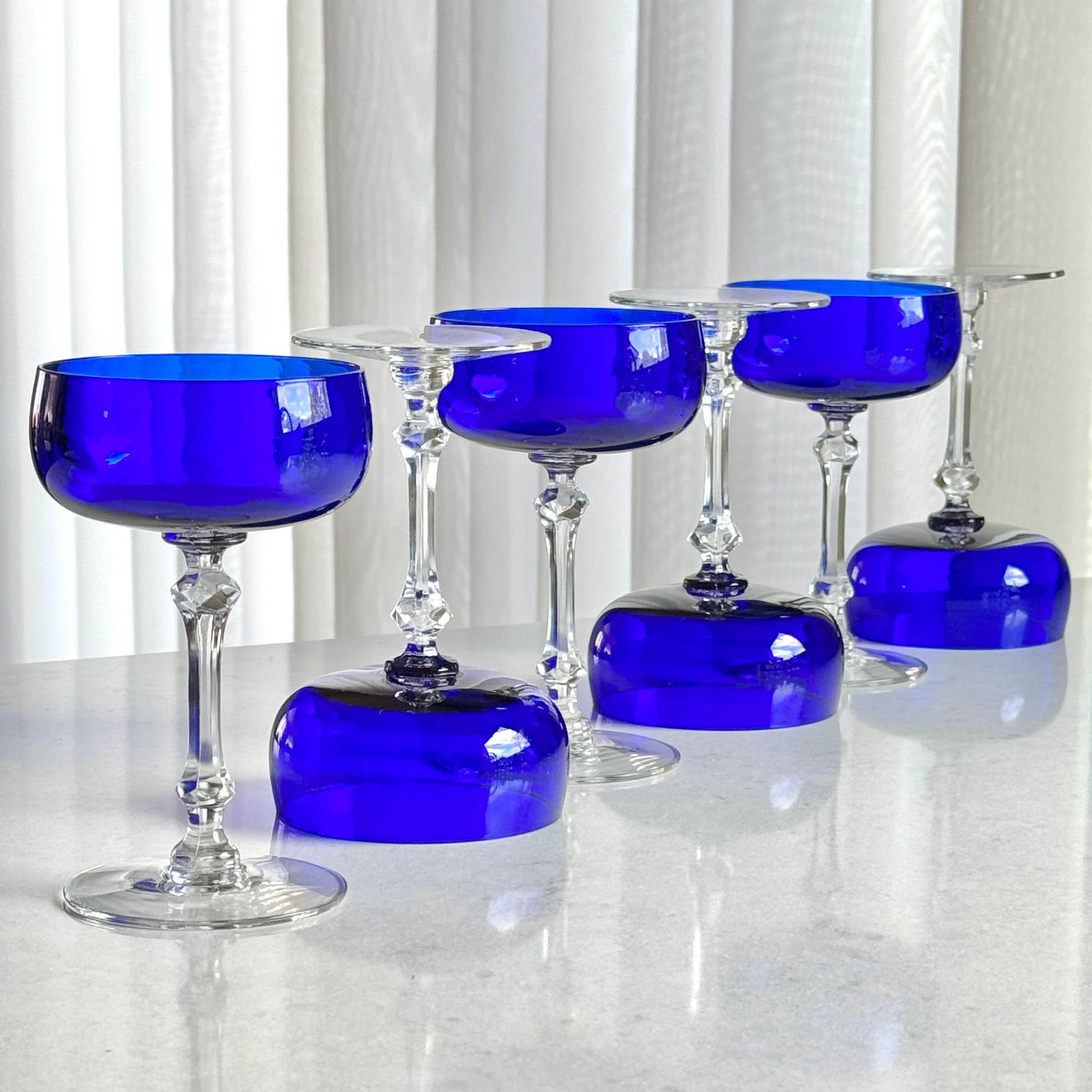 Vintage Cobalt Blue Glasses - Set of 6 Coupes