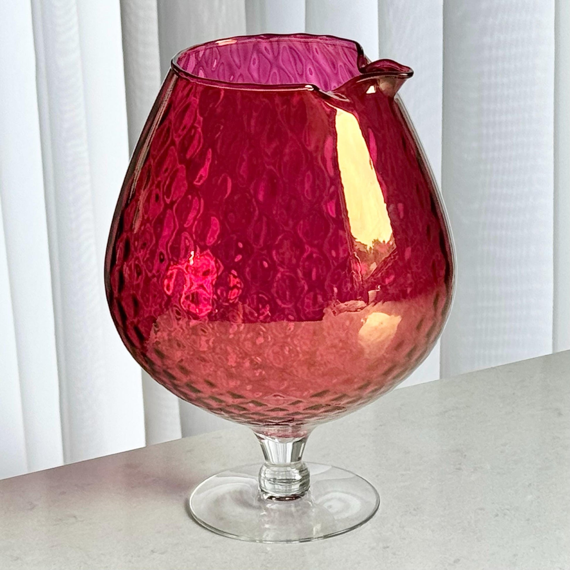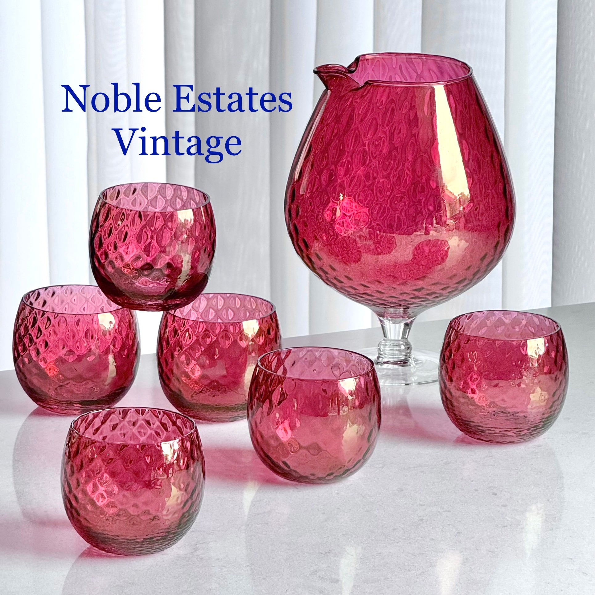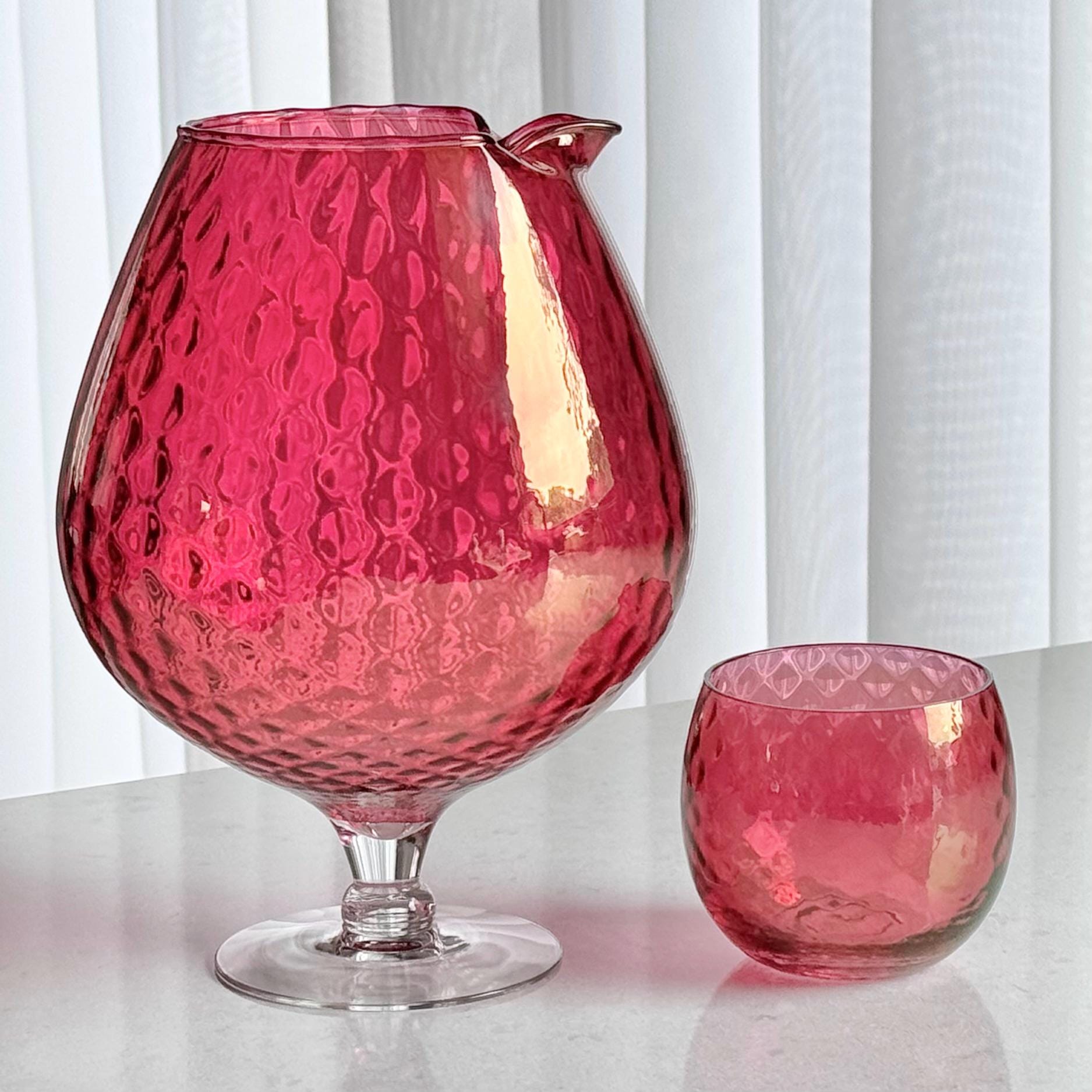 Vintage Cranberry Diamond Optic Carafe and 6 Glasses