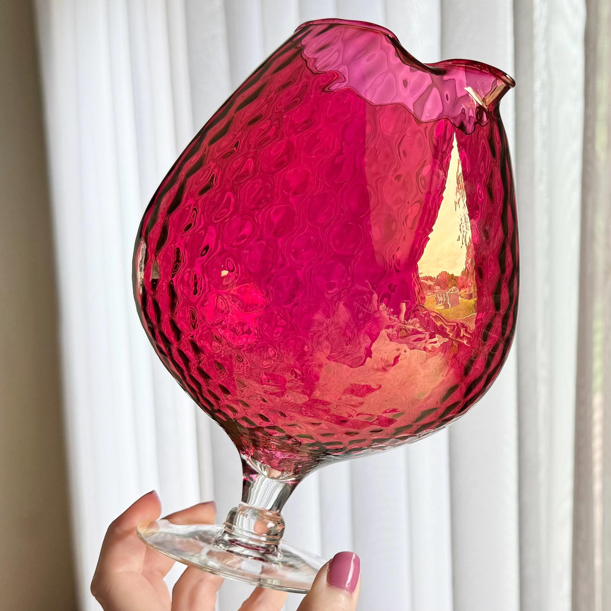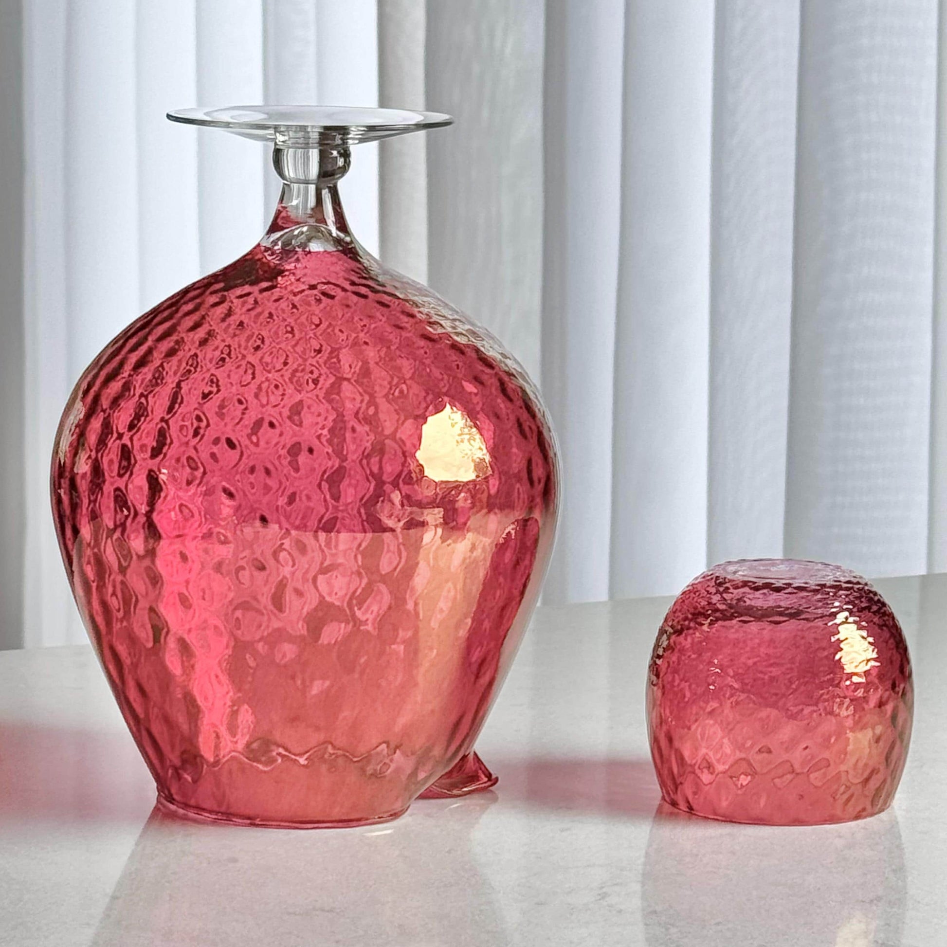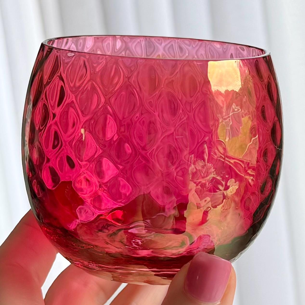 Vintage Cranberry Diamond Optic Carafe and 6 Glasses