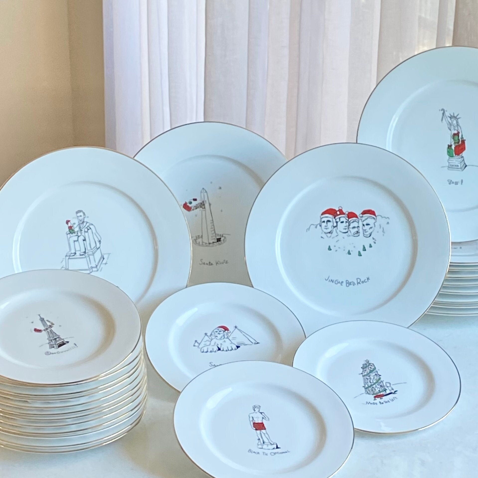 Set D - 12 SALAD Plates as follows: --- 1 Michelangelo's David --- 3 Eiffel Tower --- 3 Great Sphinx of Giza --- 5 Leaning Tower of Pisa