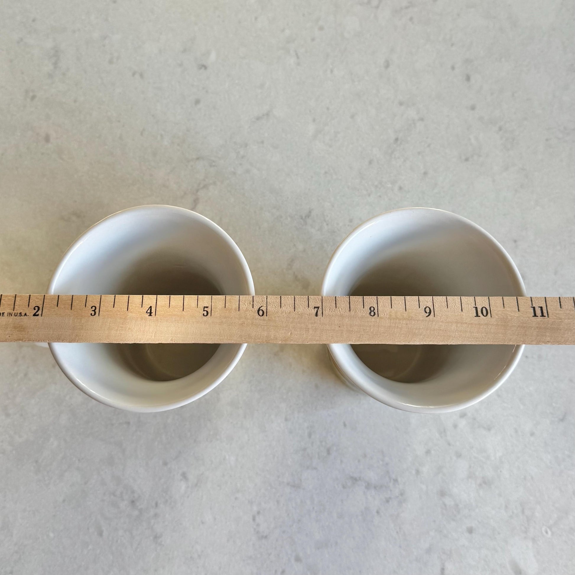 Approximately 6" tall and 3-3/4" across the rim with a capacity of about 16 ounces completely full.
