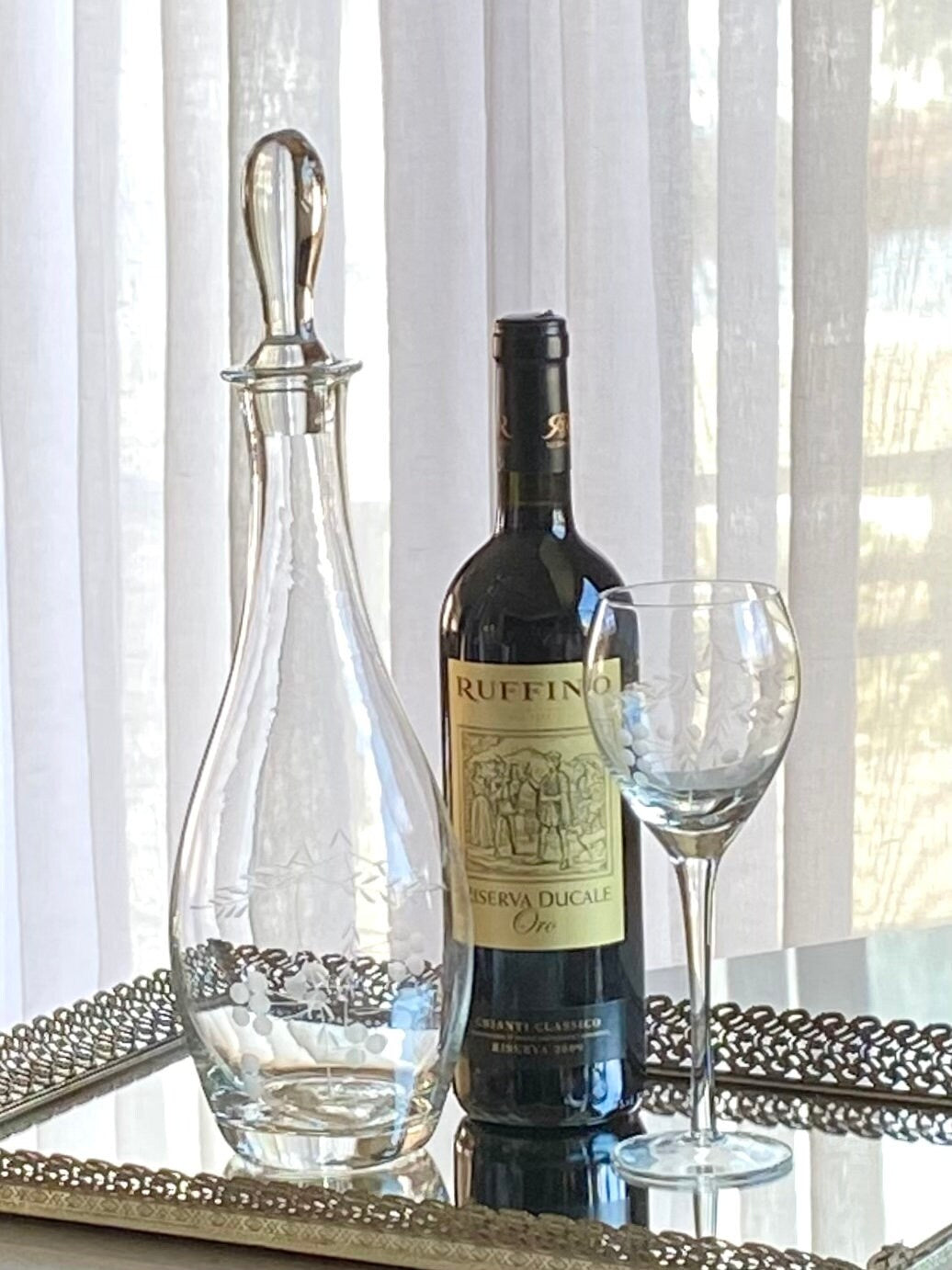 Note the decanter and the glasses are on the taller side, as shown using the picture with the wine bottle for scale.