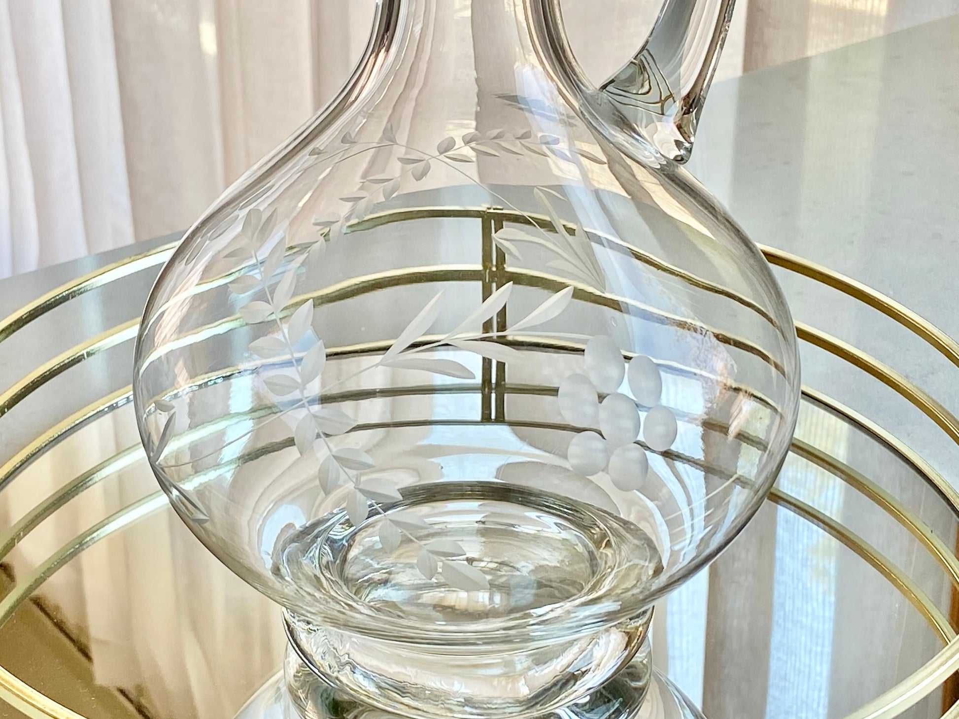 Vintage Etched Decanter and Five (5) Glasses (Set #1022)