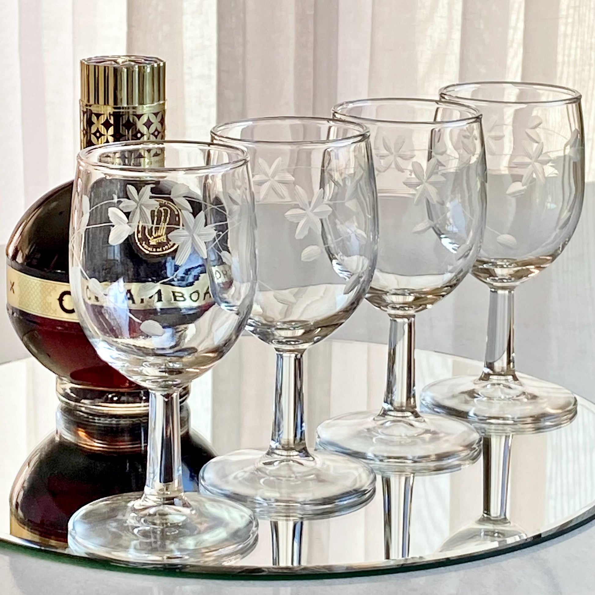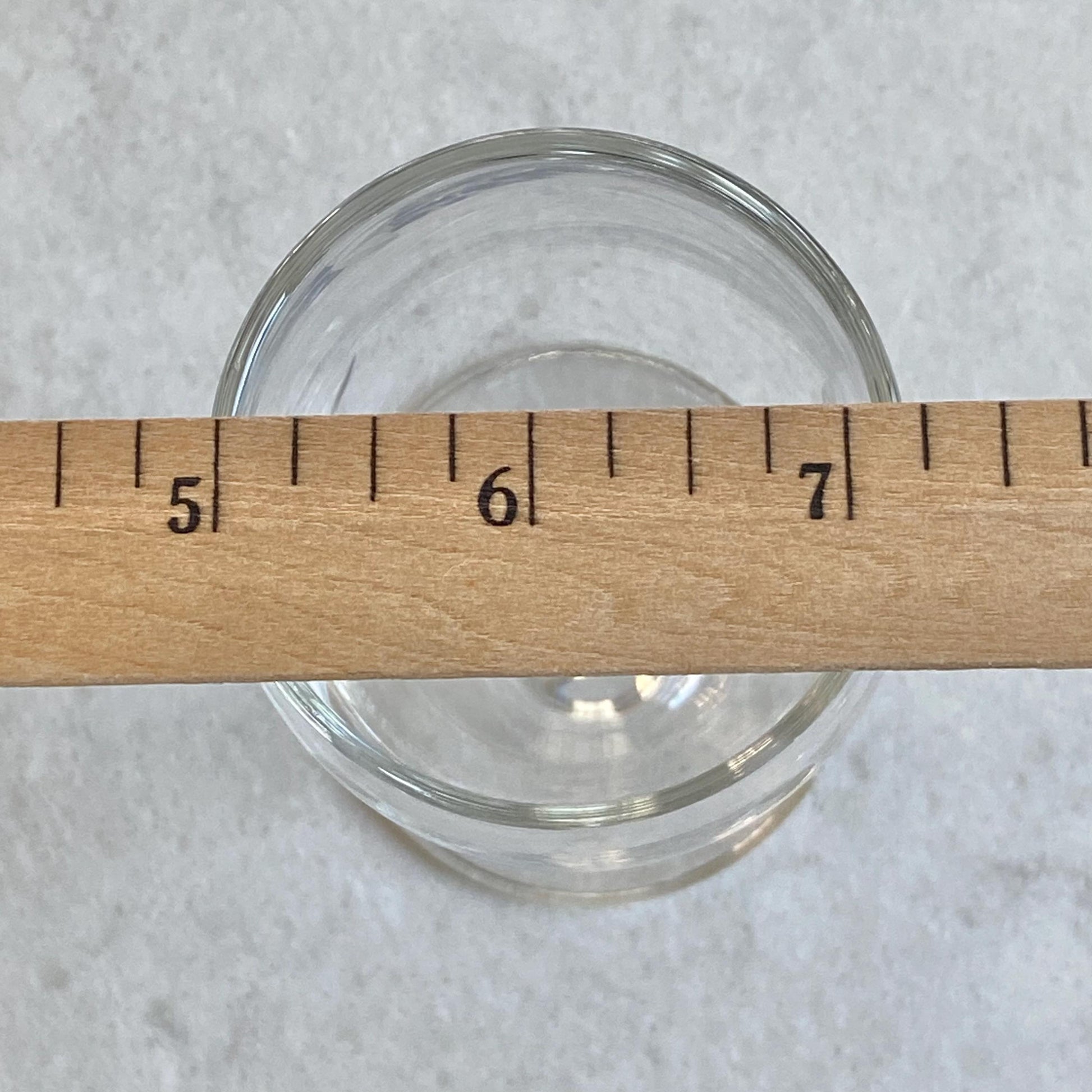 Approximately 5-1/8" tall and 2-1/8" across the top with a capacity of about 5 ounces completely full. Excellent vintage condition.