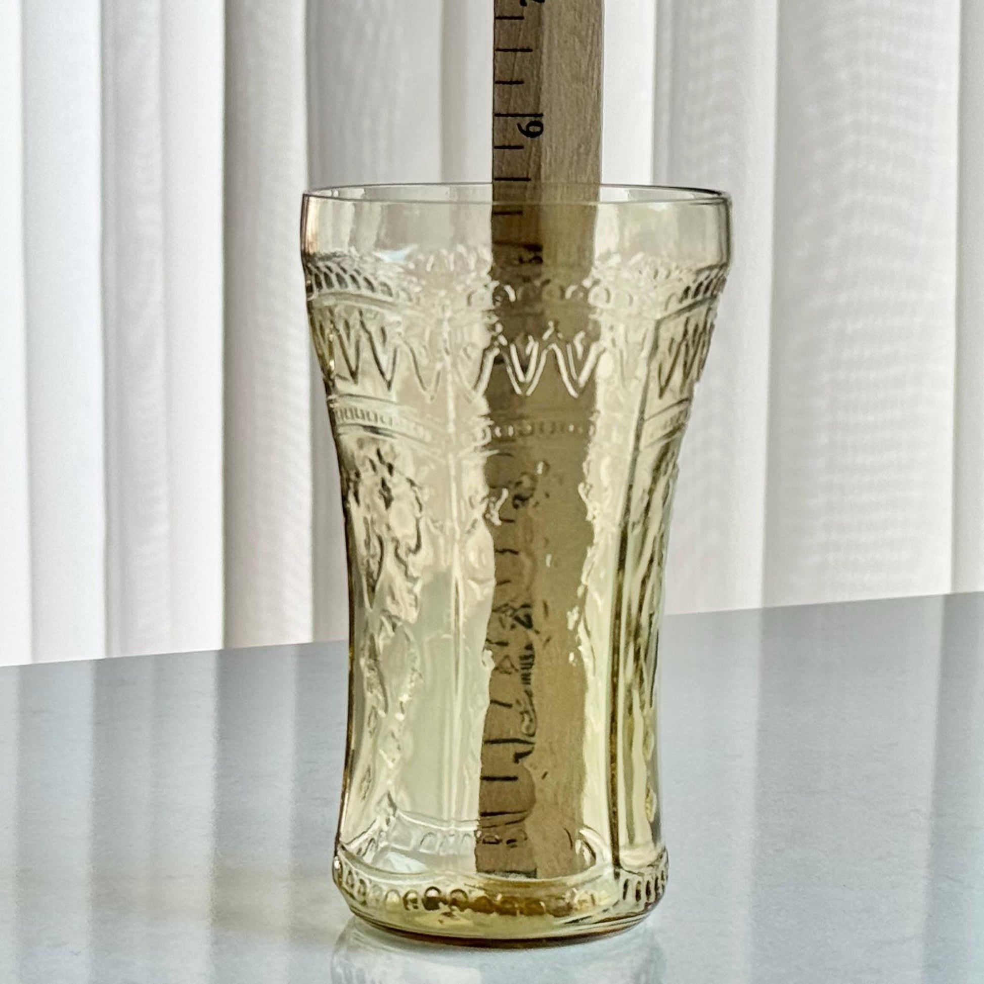 Approximately 5-1/2" tall and 3-1/8" across with a capacity of about 14 ounces completely full. Excellent vintage condition, with variations among the glasses as is typical with these pieces.