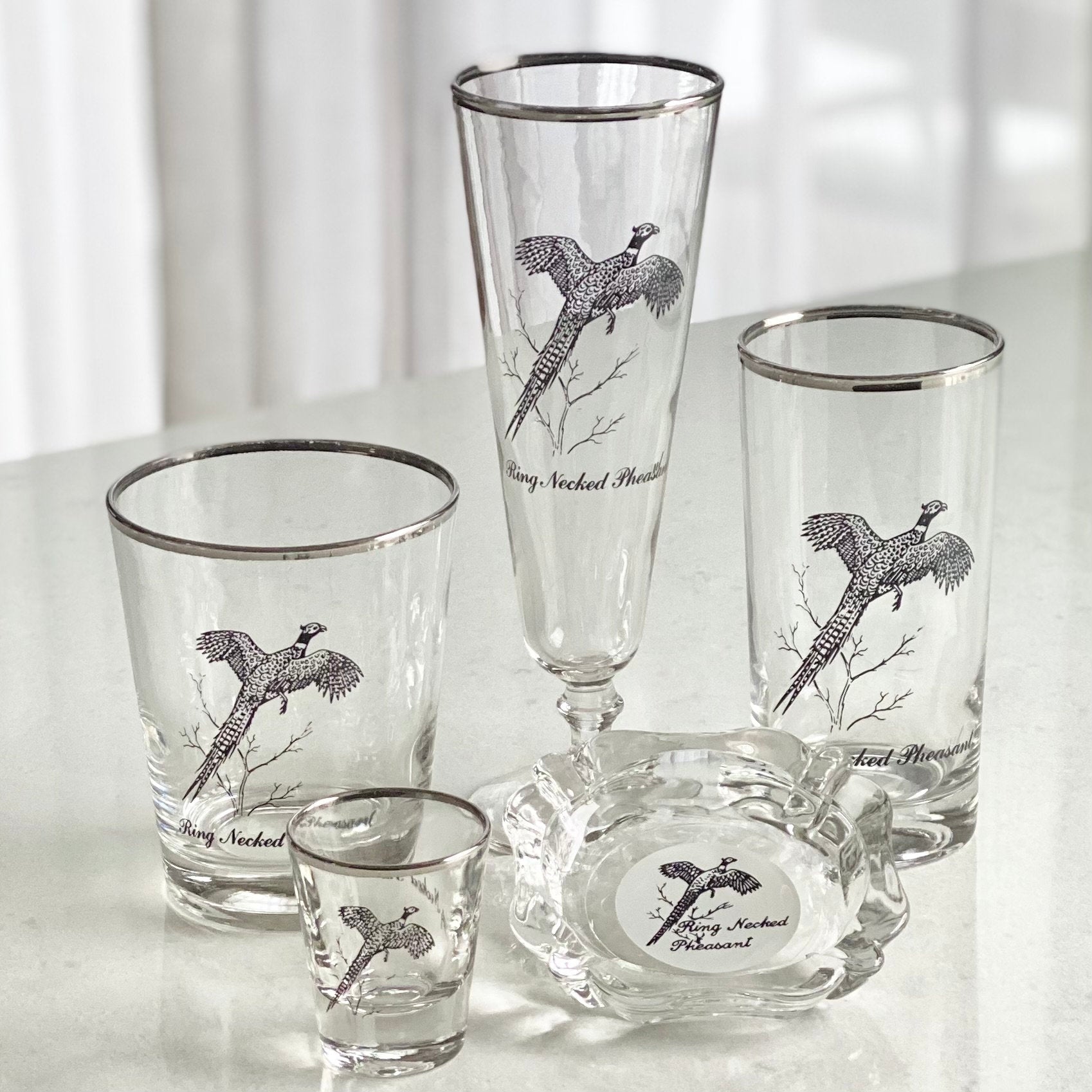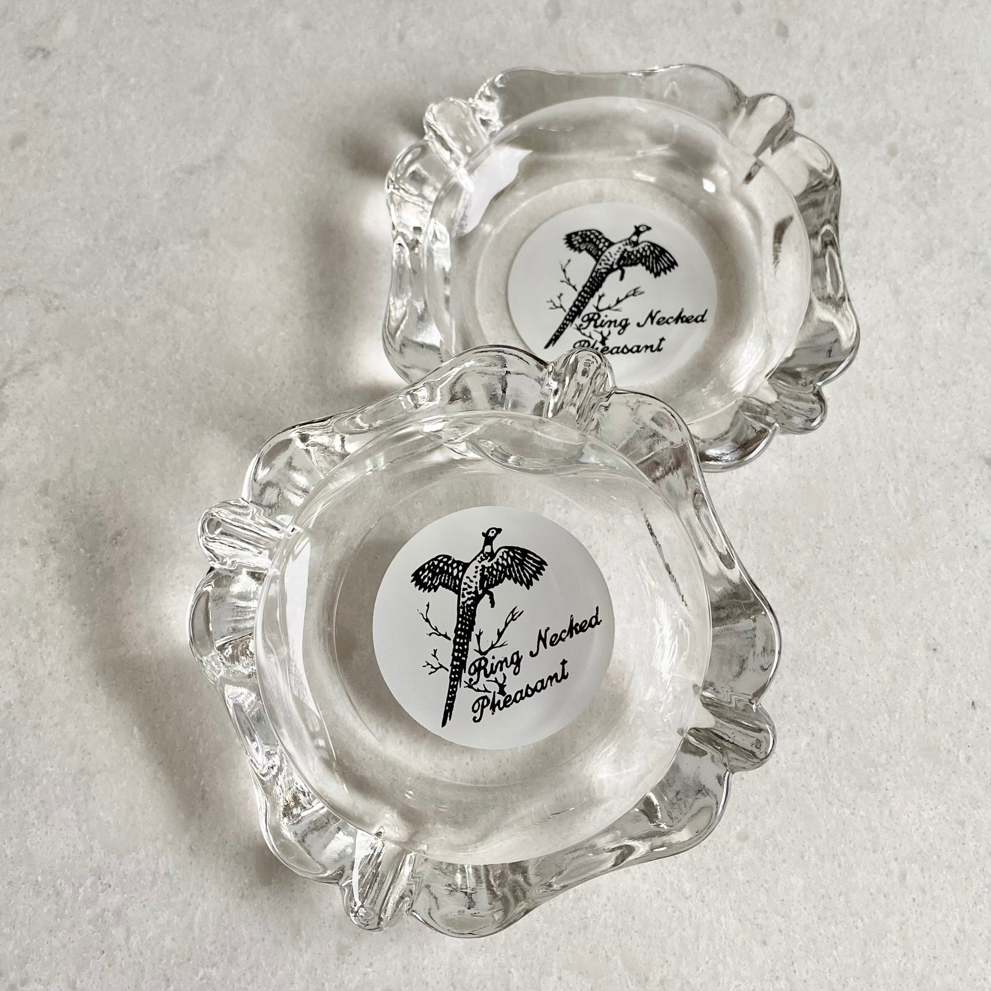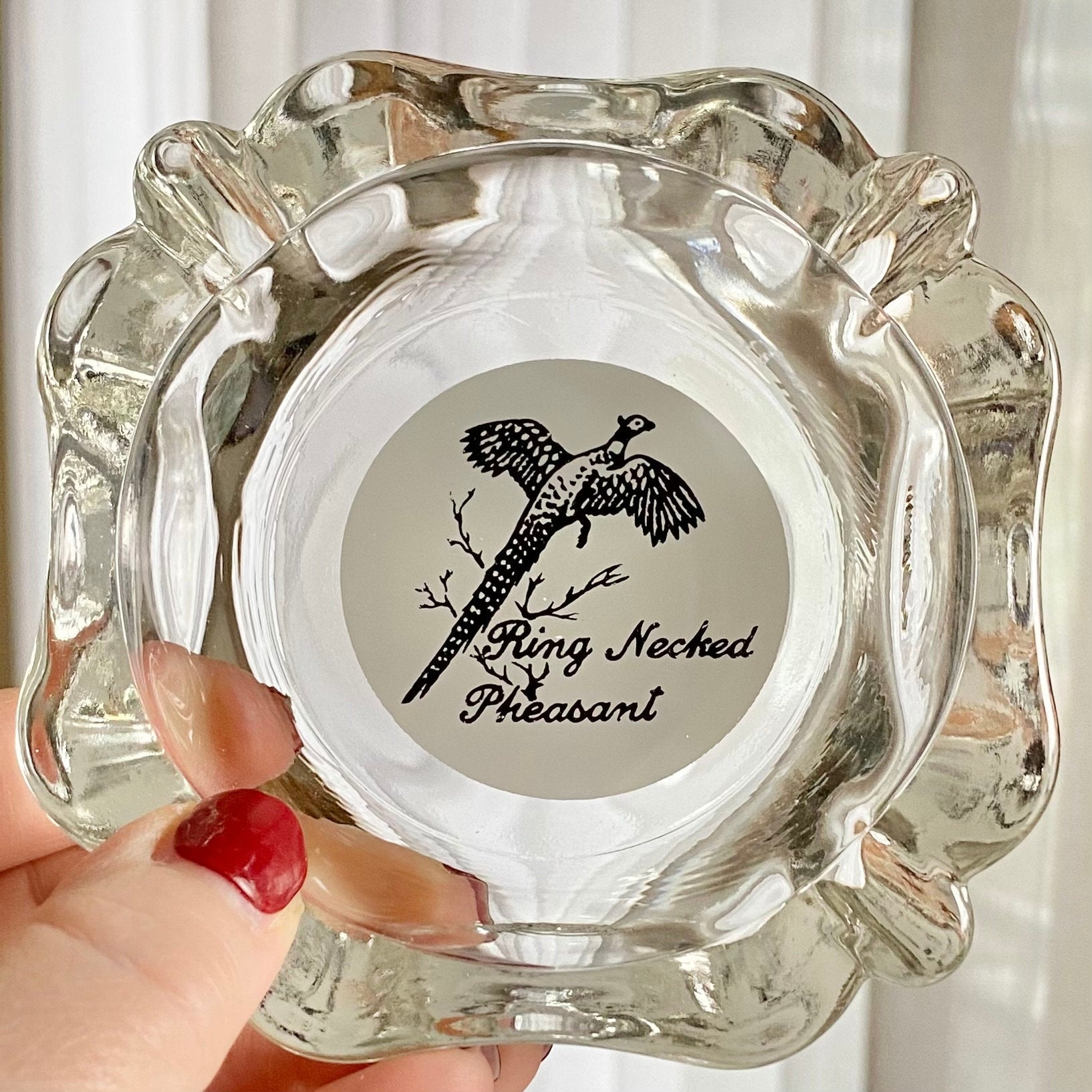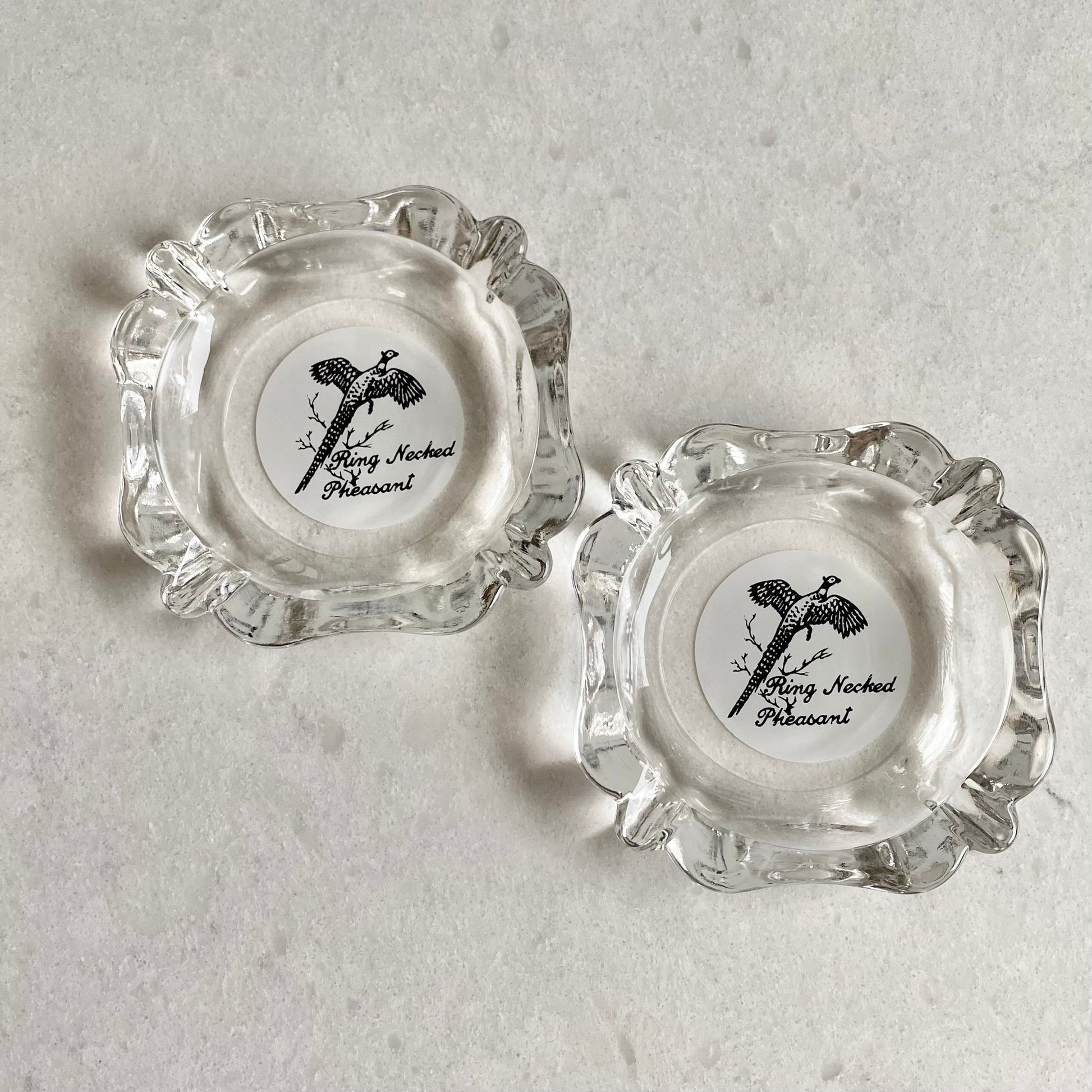 Vintage Federal Glass Sportsman Ring Necked Pheasant Ashtrays - Set of 2
