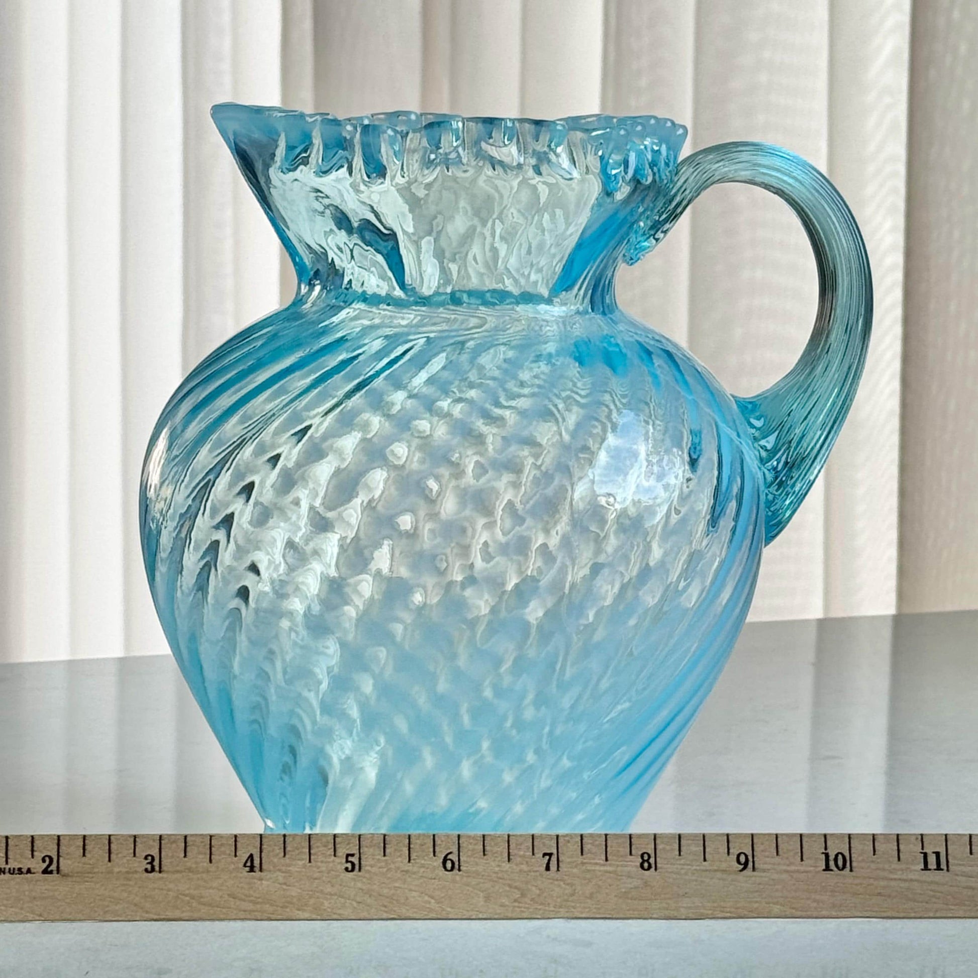 Vintage Fenton Blue Opalescent Large Spiral Swirl Pitcher