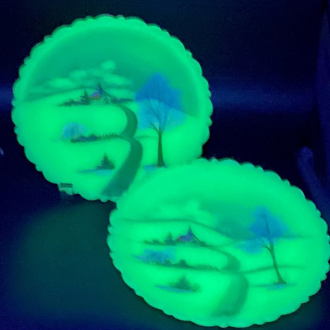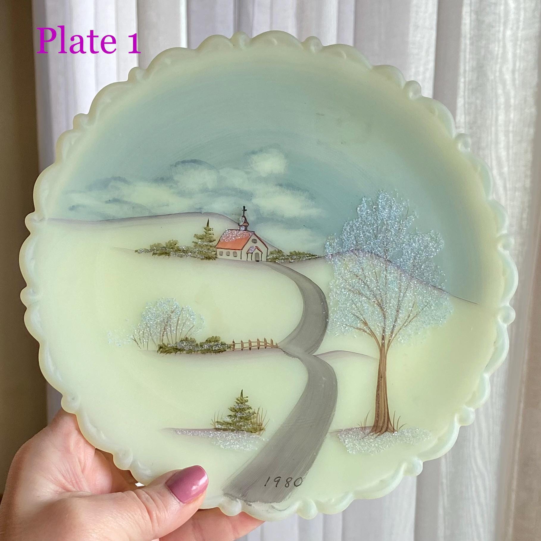 Vintage Fenton Hand Painted Custard Glass Plates (circa 1980) - 2 Available