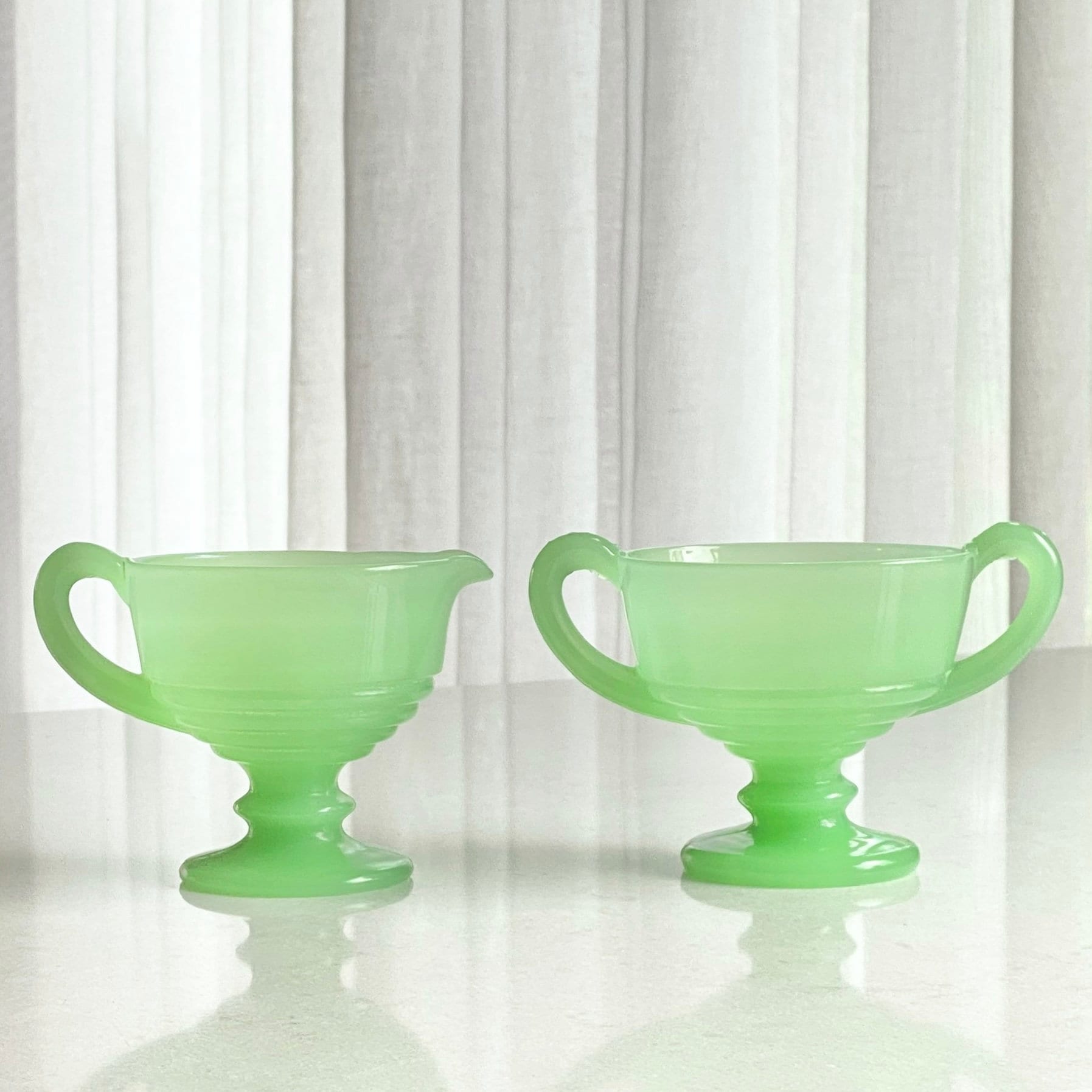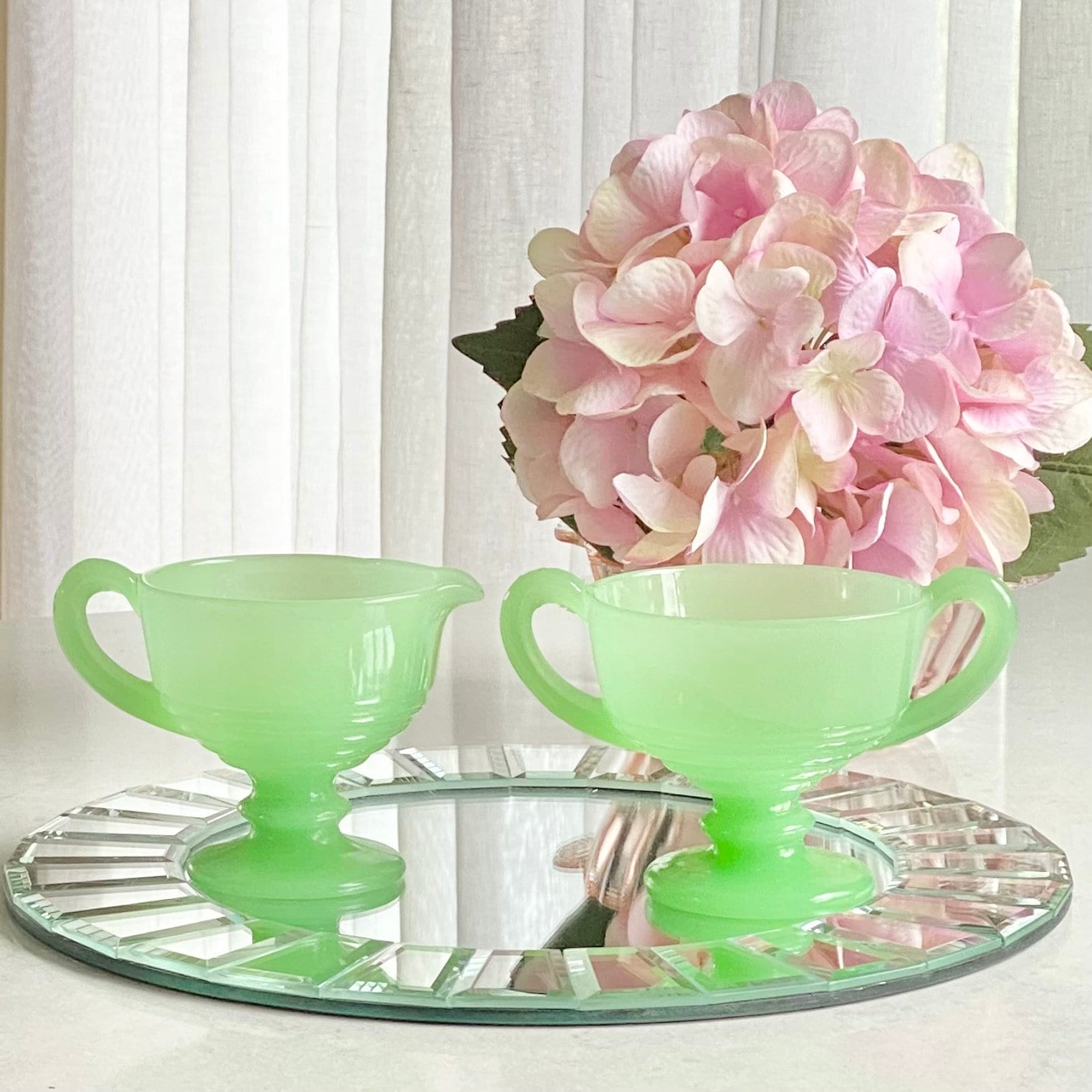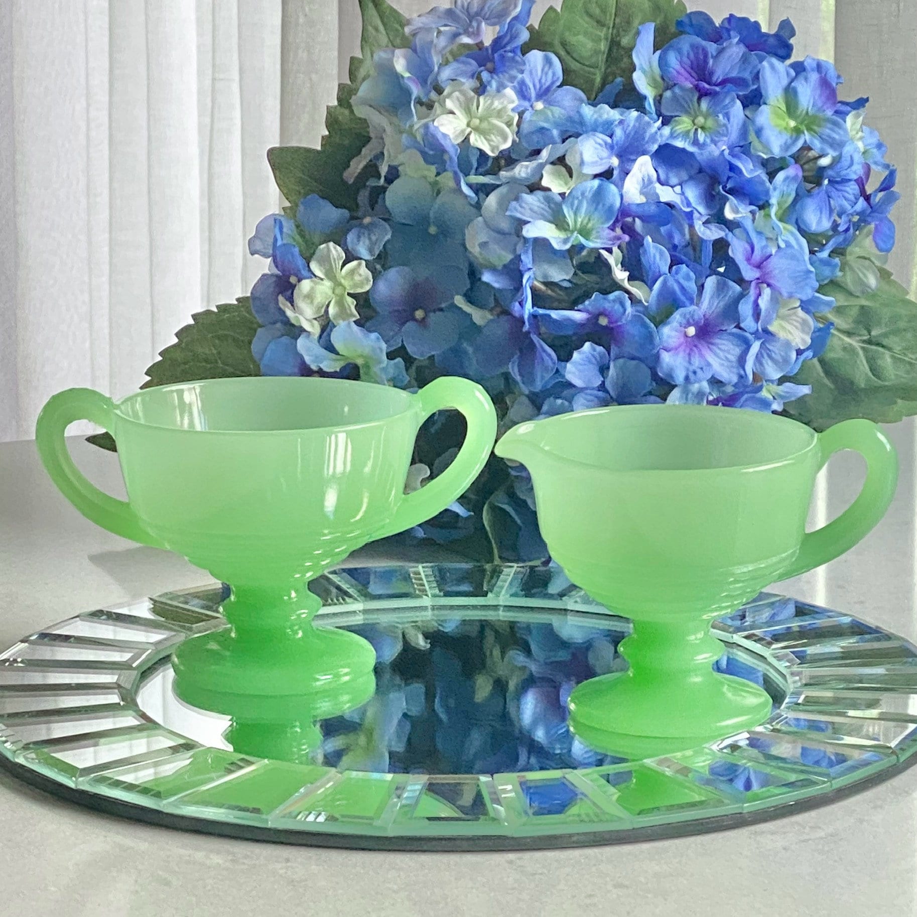 Vintage Fenton Jade Green Sugar and Creamer Set (circa 1921 - 1936)