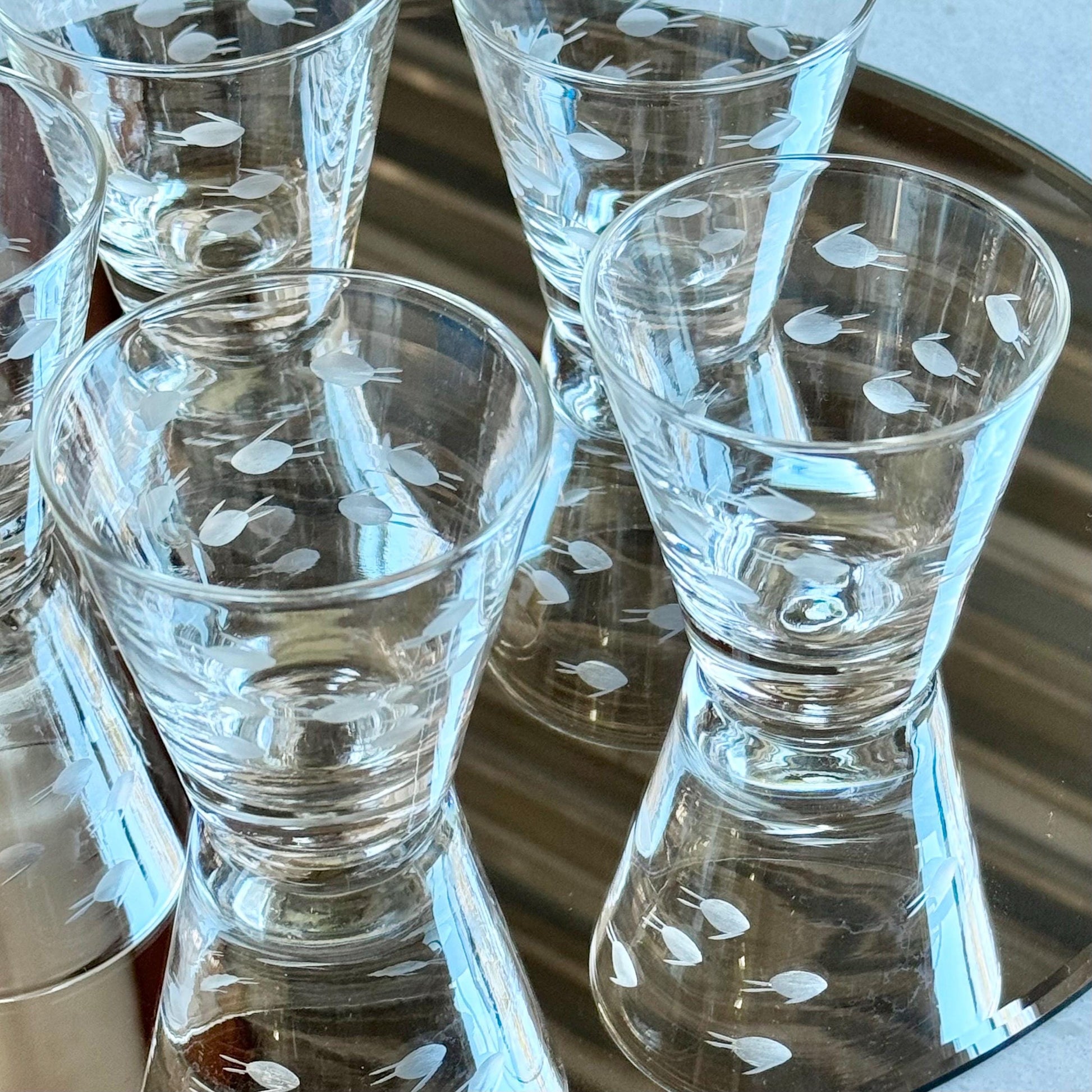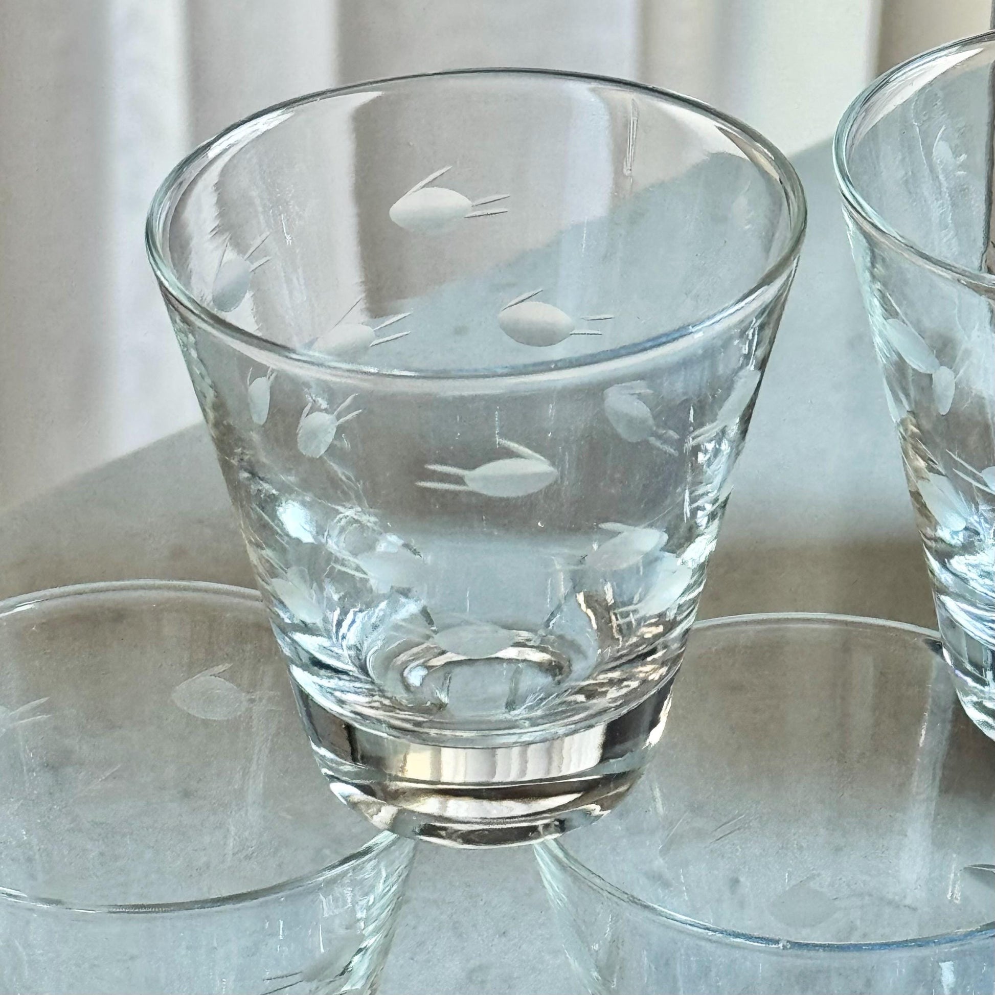 Set of six fish etched glasses. I have seen these referred to as Libbey, but have not been able to confirm that.