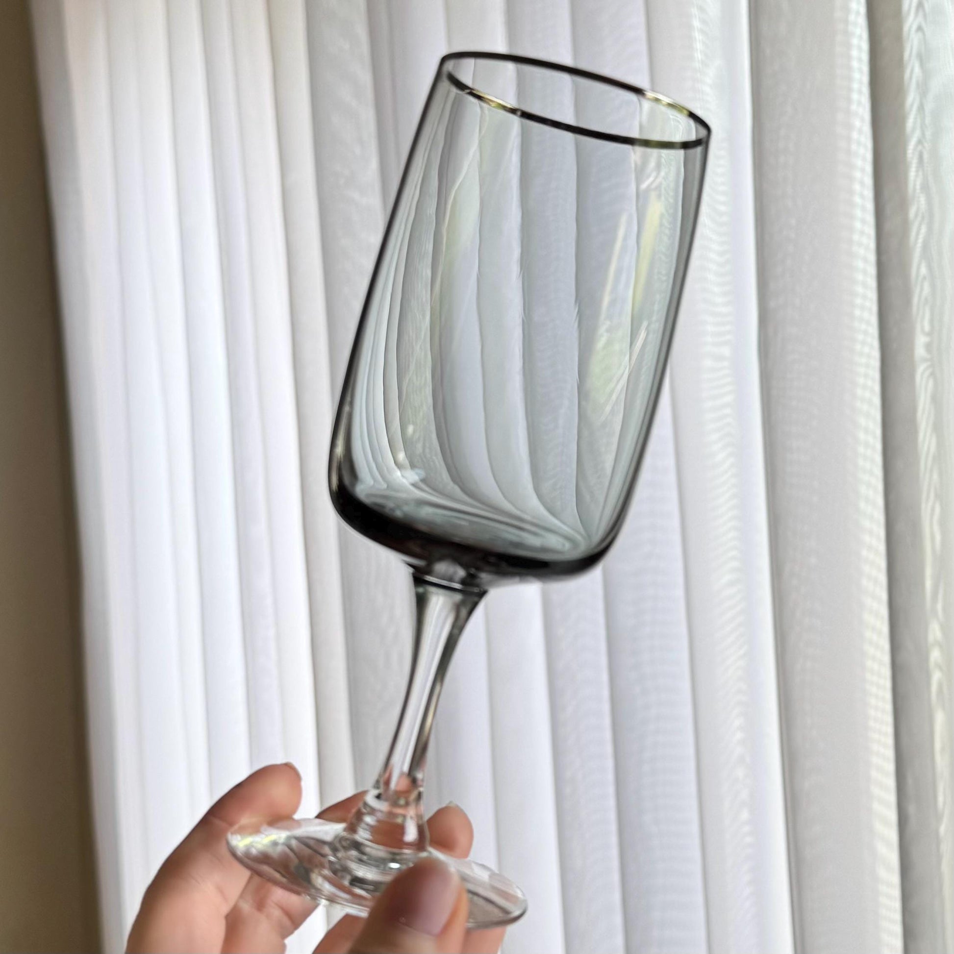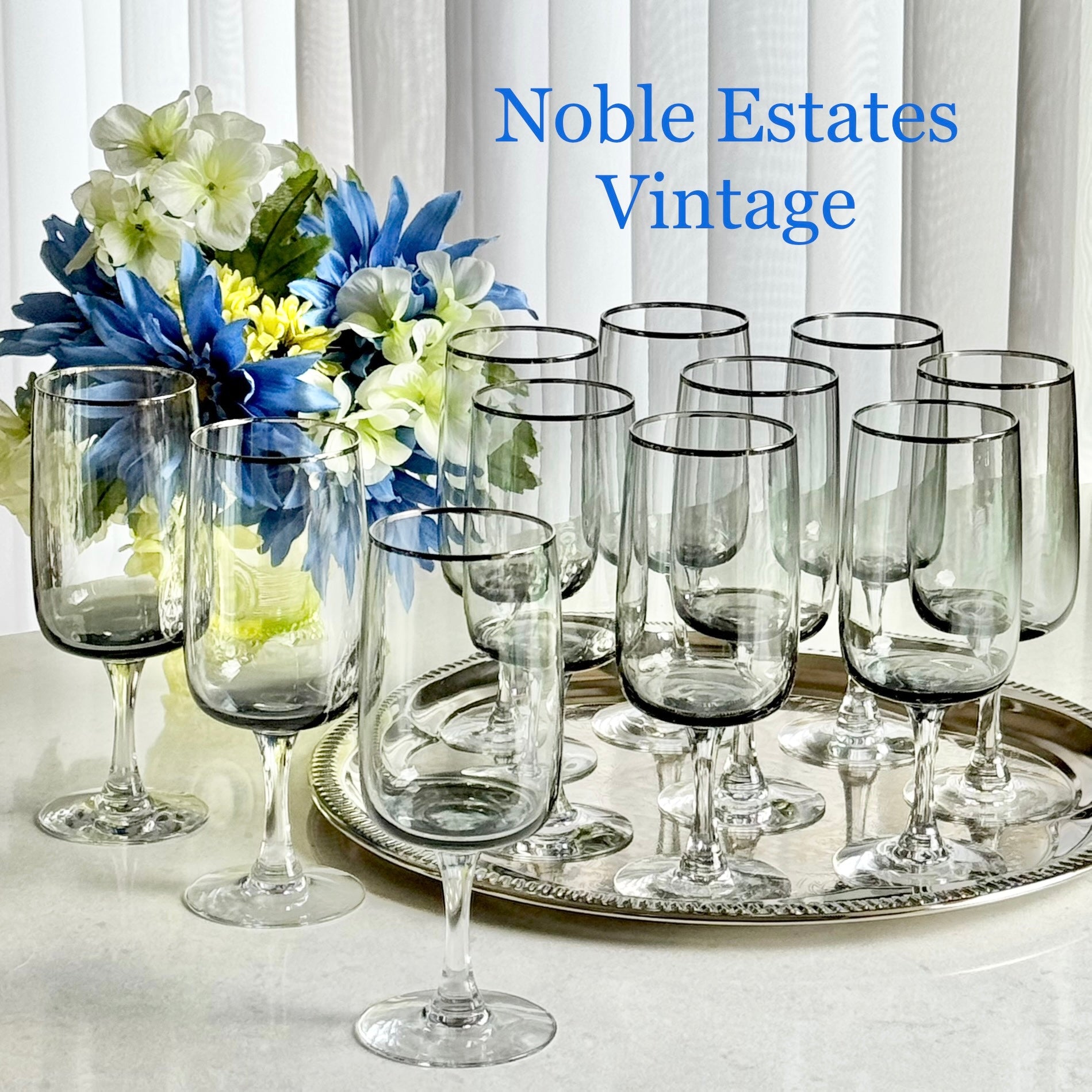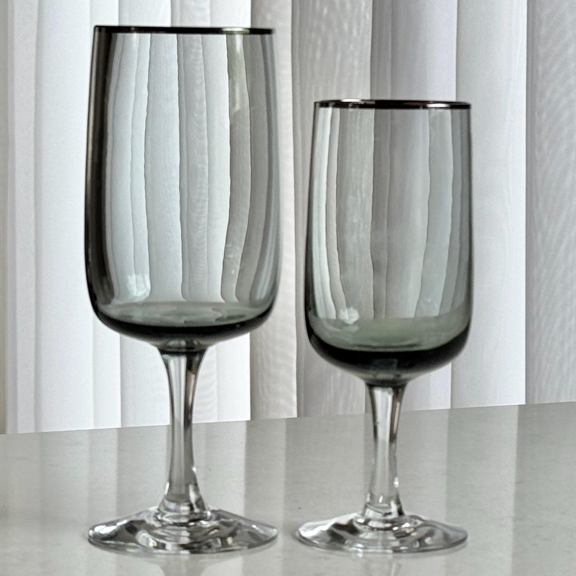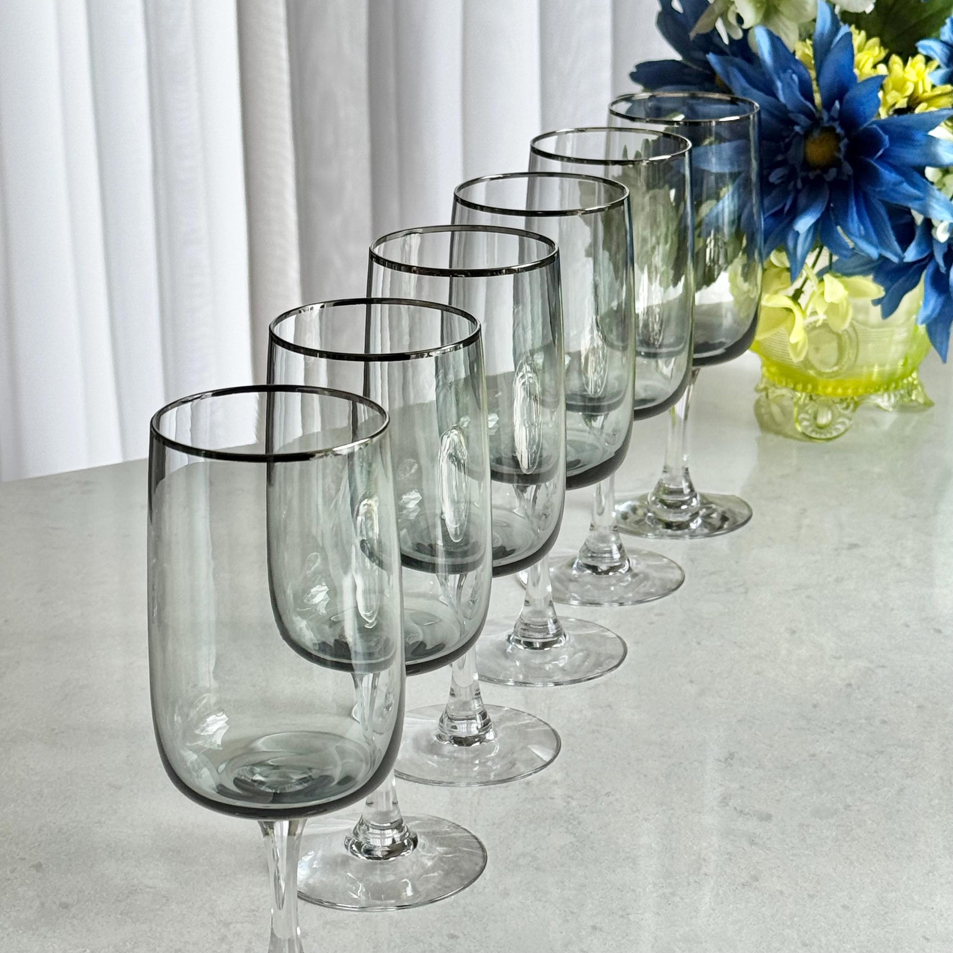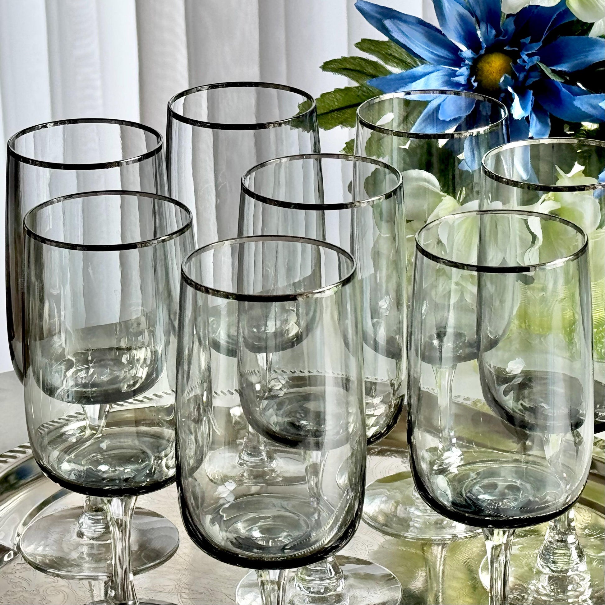 Vintage Fostoria Cherish Smoke Gray Glasses with Platinum Trim (circa 1969 - 1982) - Set of 11 (#FC2)