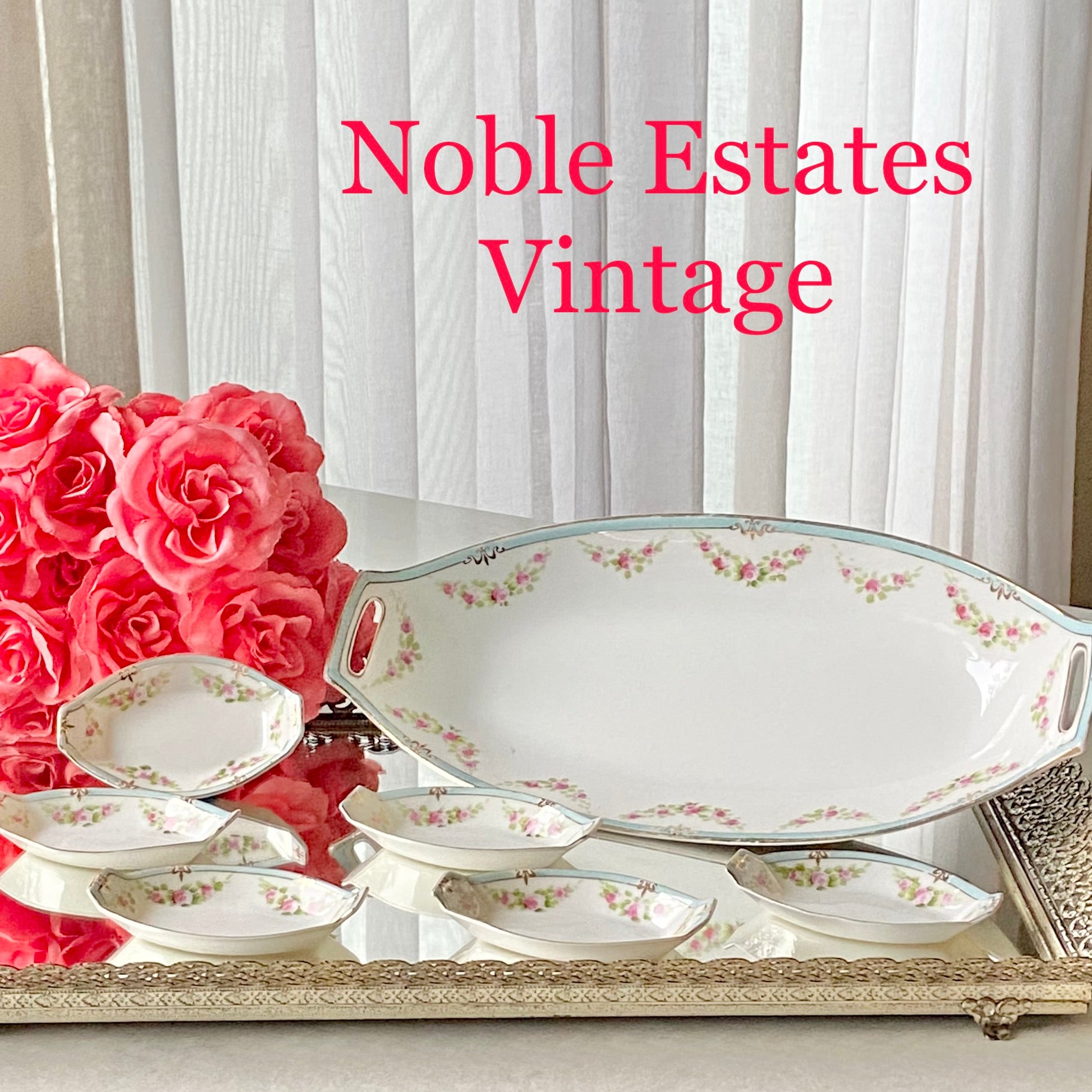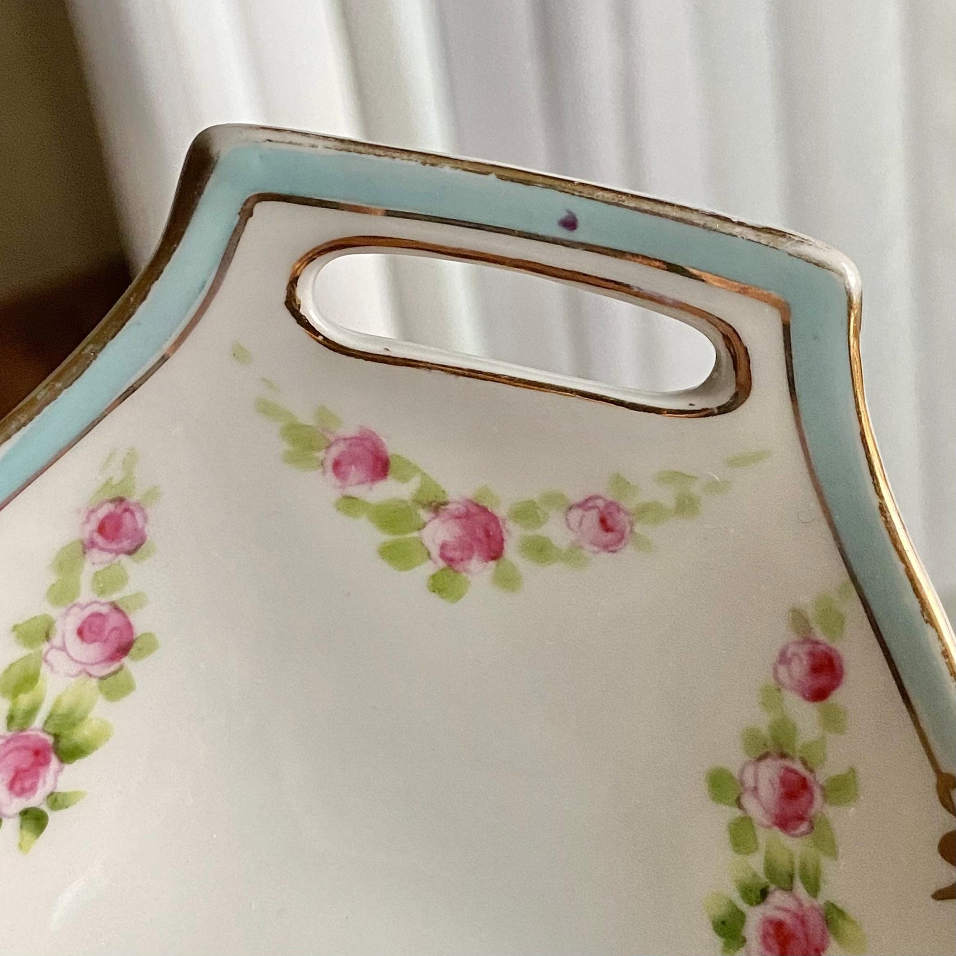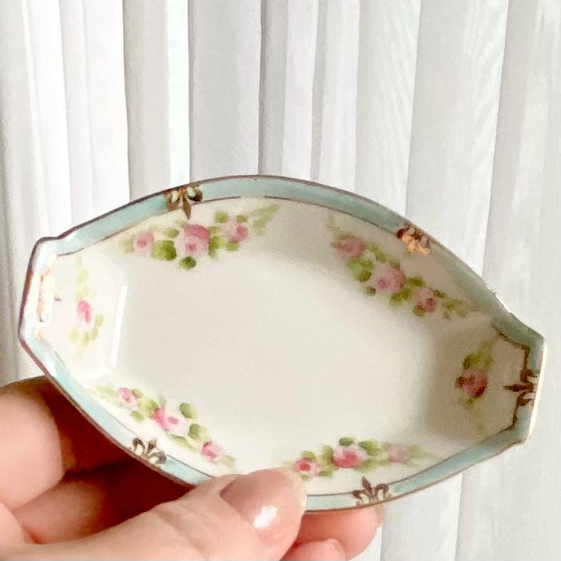 The larger dish is approximately 12" X 5-1/2" and the smaller dishes are approximately 3-3/4" X 2-1/4". Please see the photos for examples of light wear on the gold finish and slight inconsistencies in the images typical of these hand painted pieces.