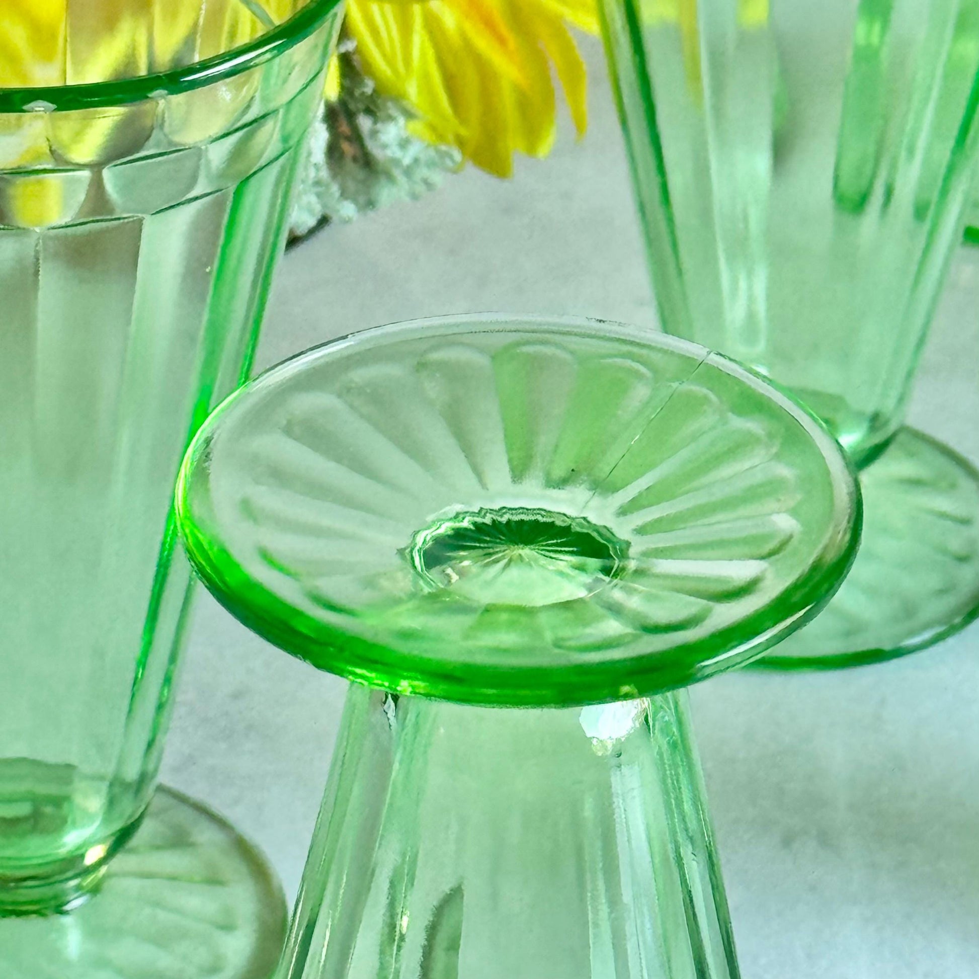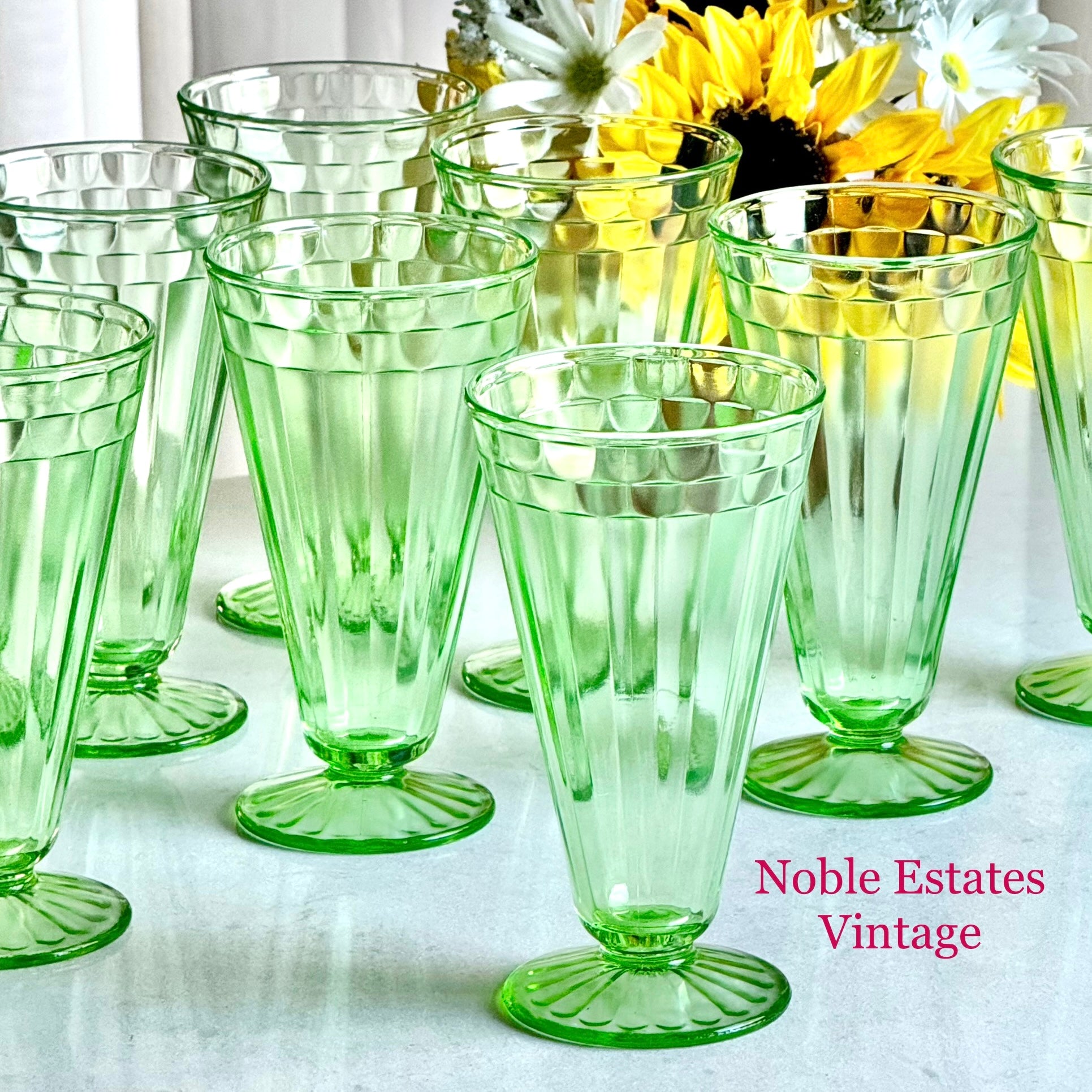 Vintage Green Uranium Glass Footed Tumblers / Parfaits - Set of 10