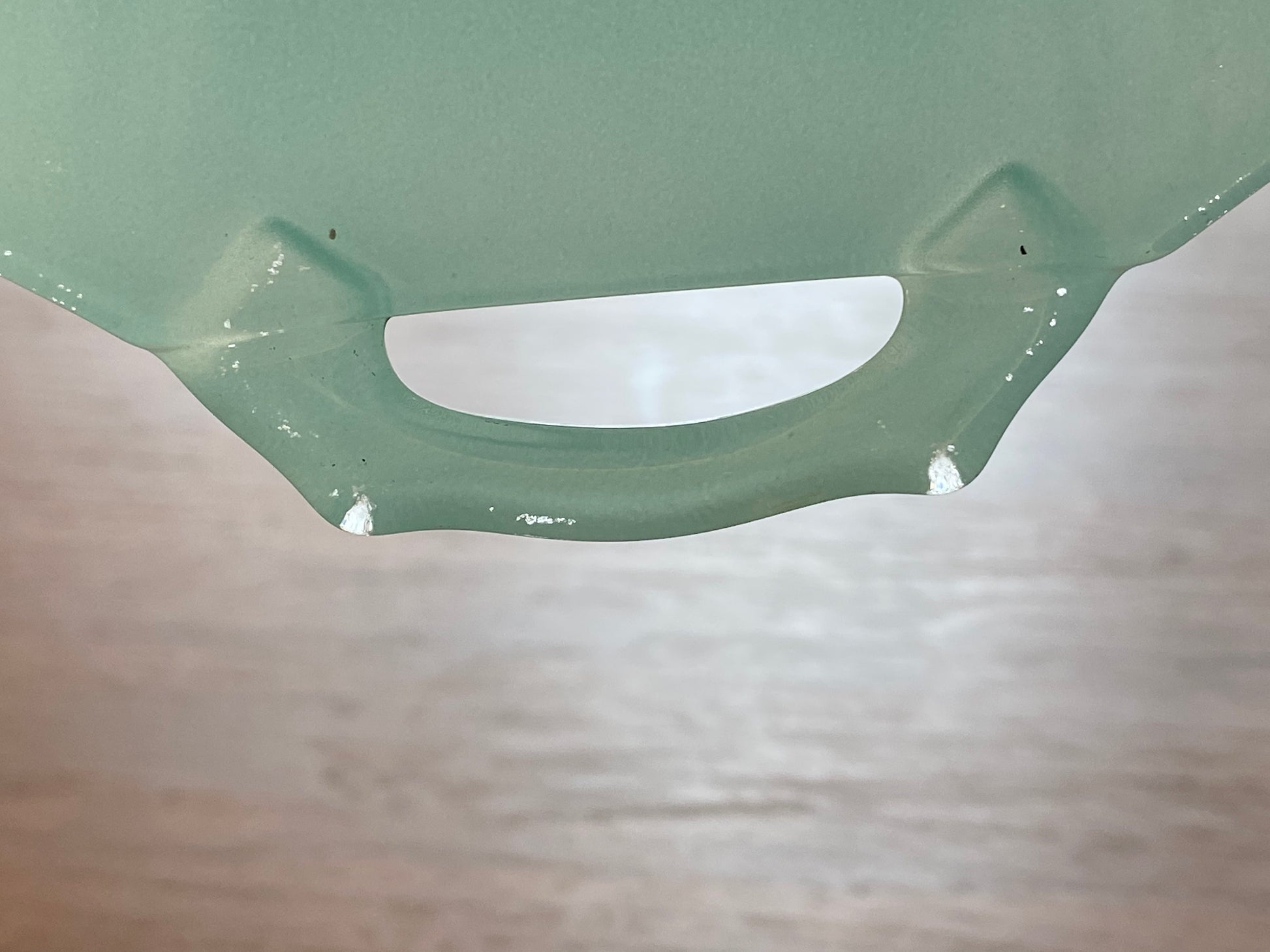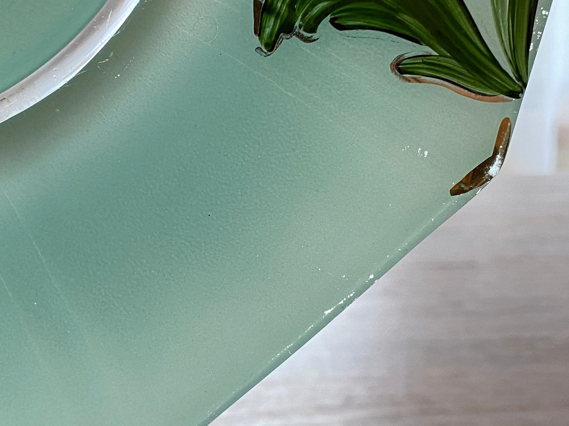 Light vintage wear of the type noted in the photos. You have to hold the plate up to the light to notice most of these small items.