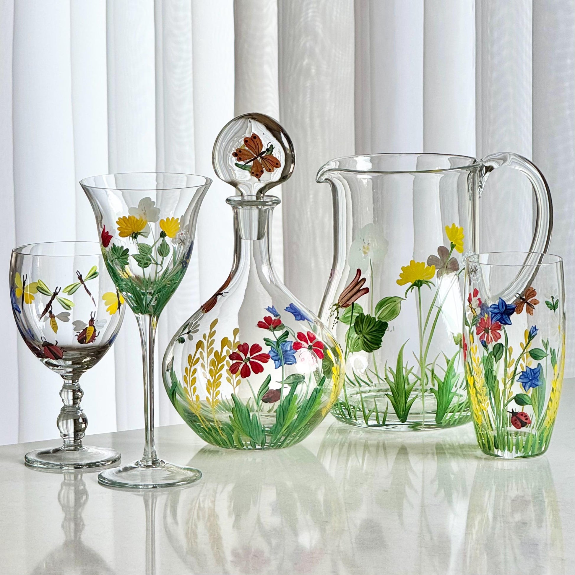 There are several other pieces in this line available, including additional styles of glasses, pitcher, decanter, vase and large hurricane. Some of these items are shown in the last picture, and all of which are sold separately.