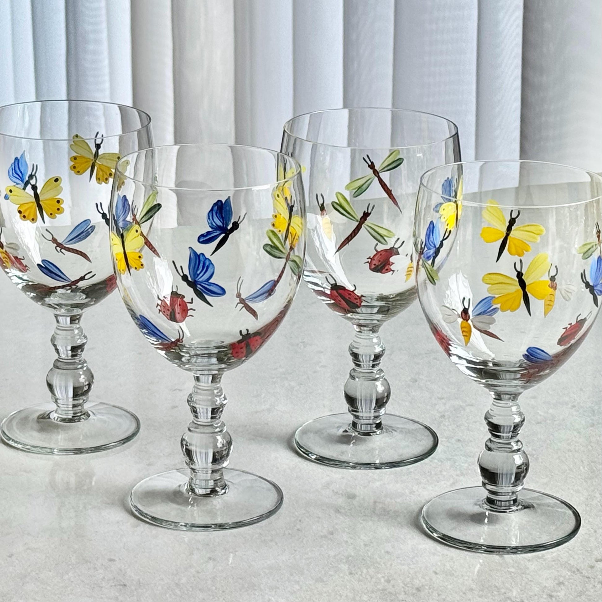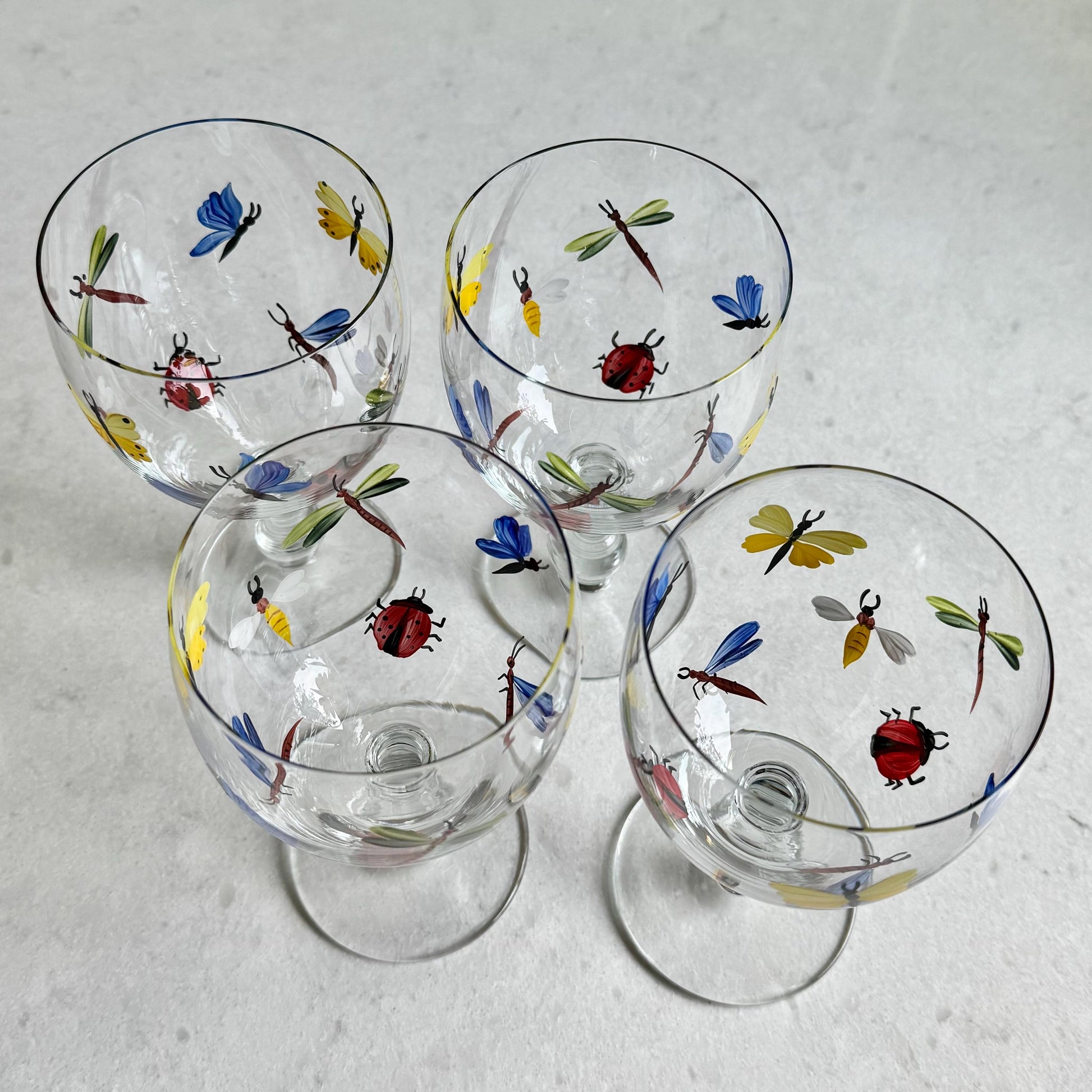 Vintage Hausen Ware Hand Painted Glasses - Set of 4 Goblets