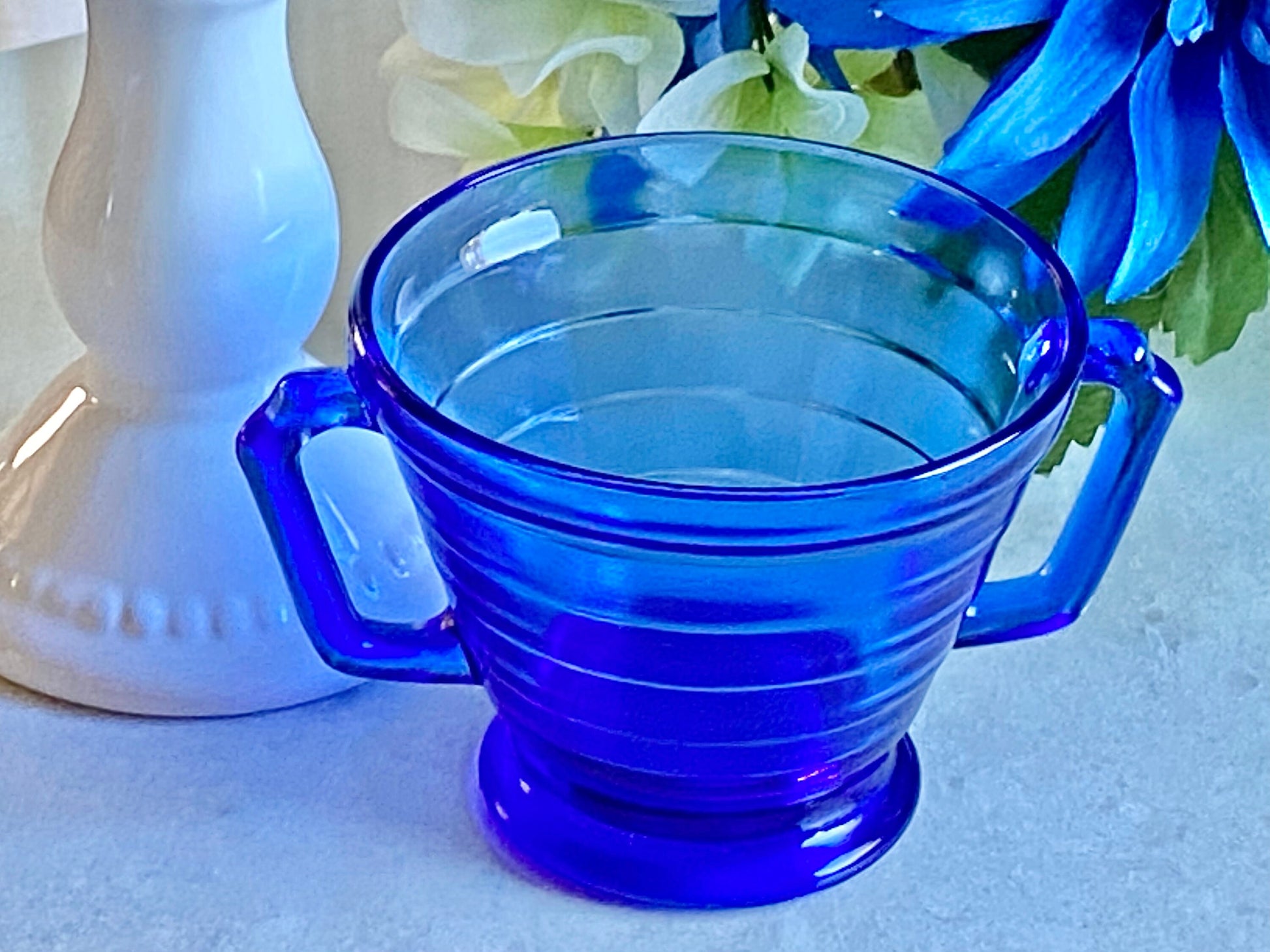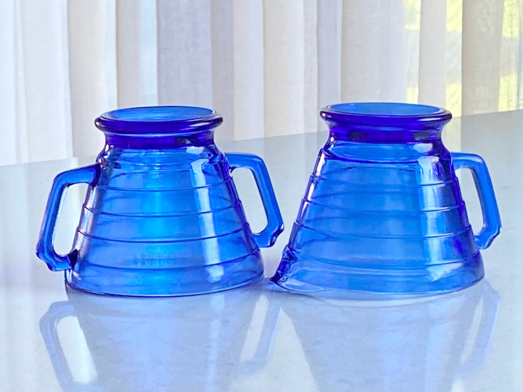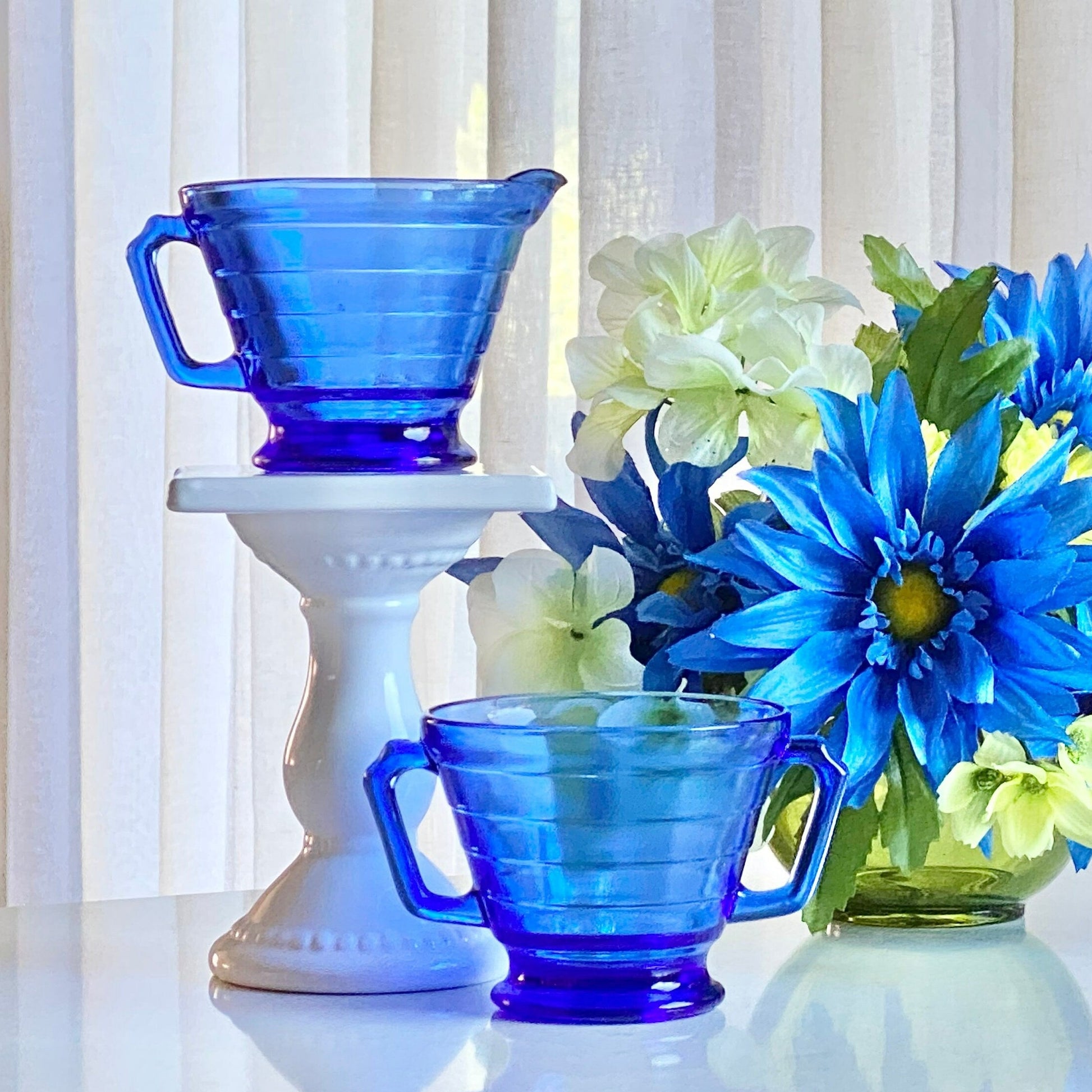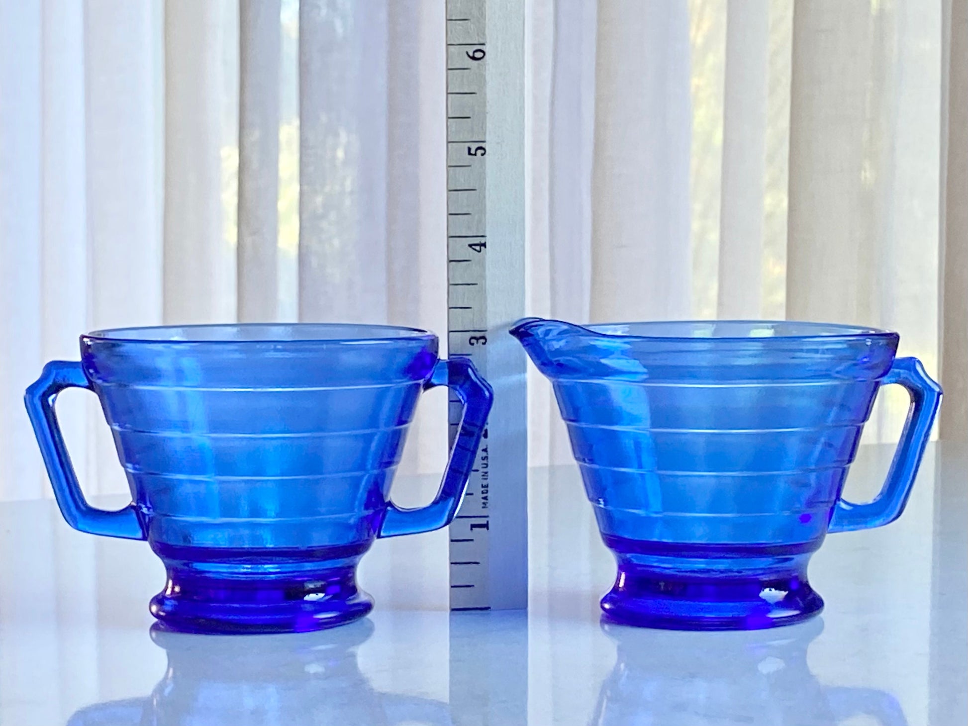 Vintage Hazel Atlas Cobalt Blue Moderntone Sugar and Creamer Set