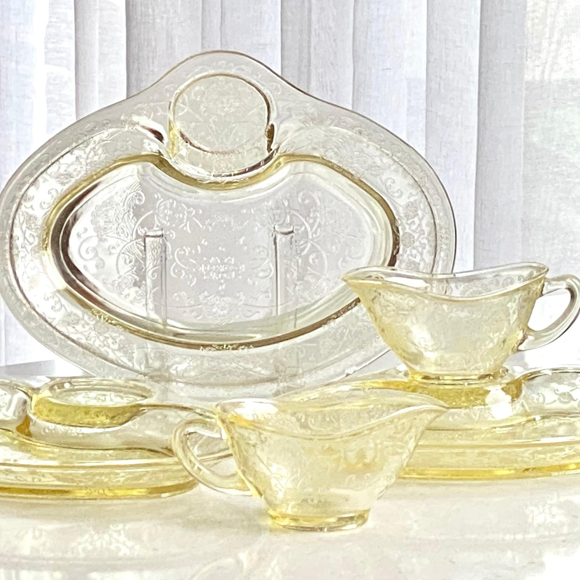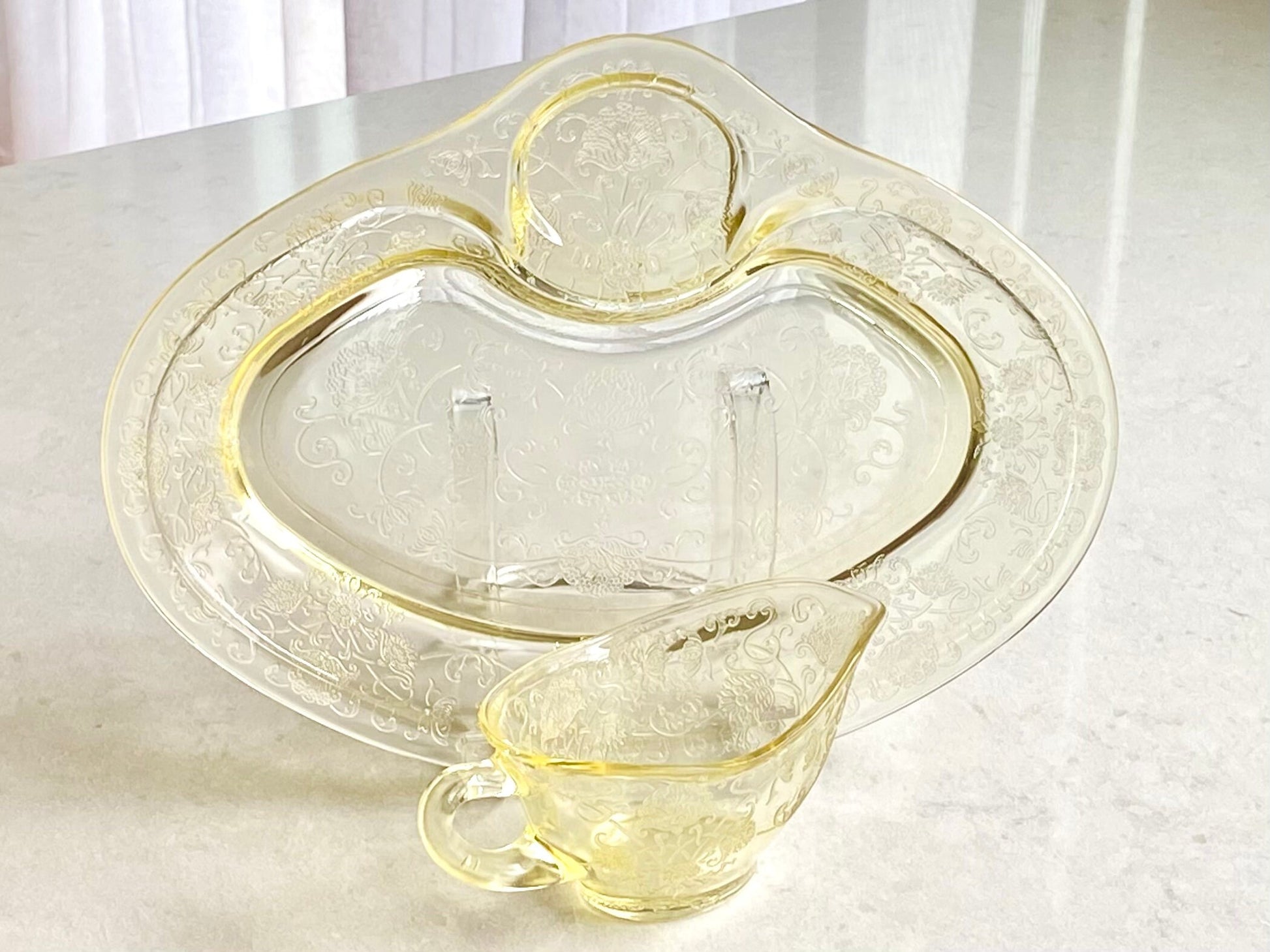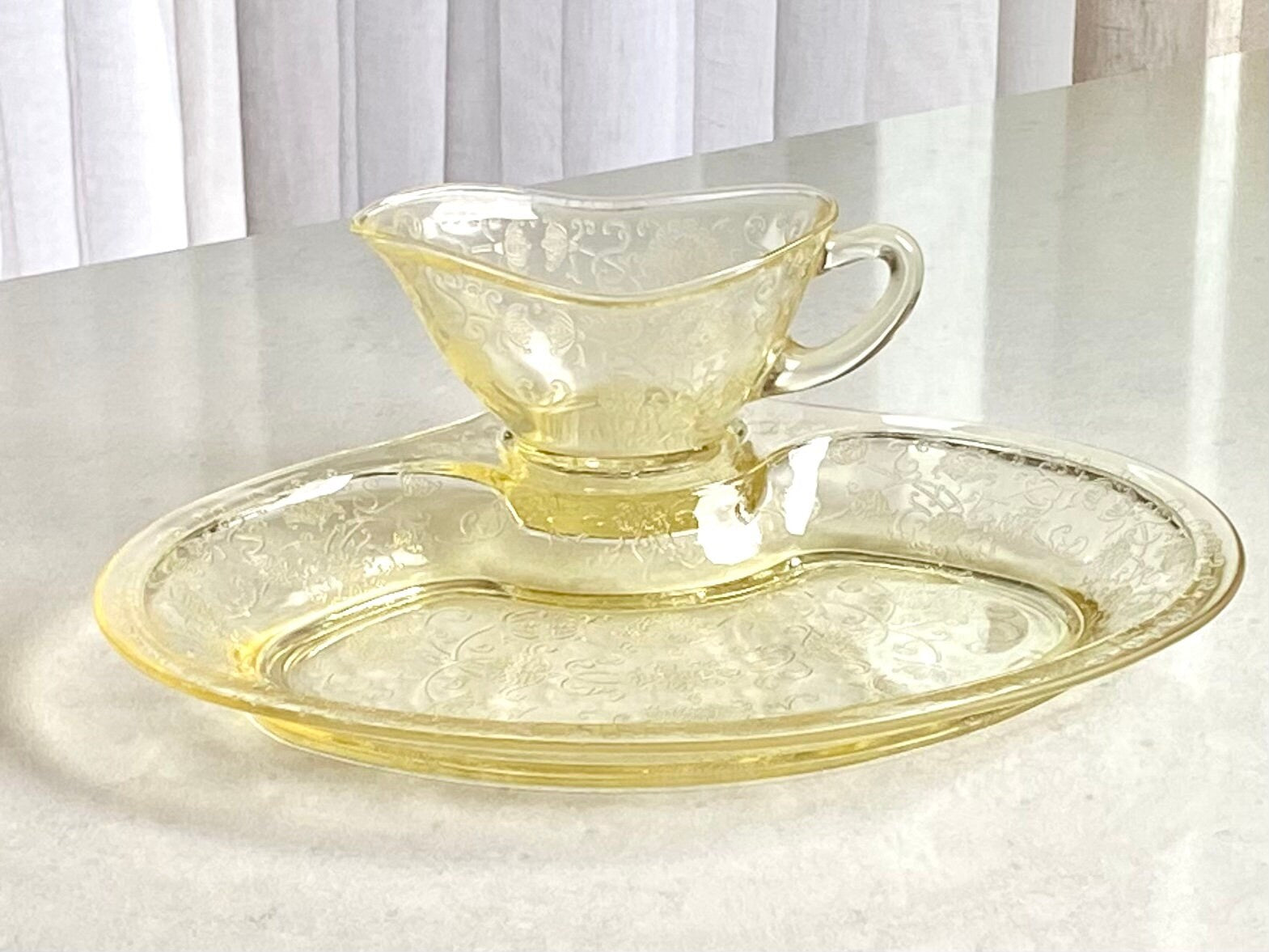 Vintage Hazel Atlas Florentine 2 Yellow Poppy Gravy Boat and Under Plate - Several Available (circa 1932 - 1935)