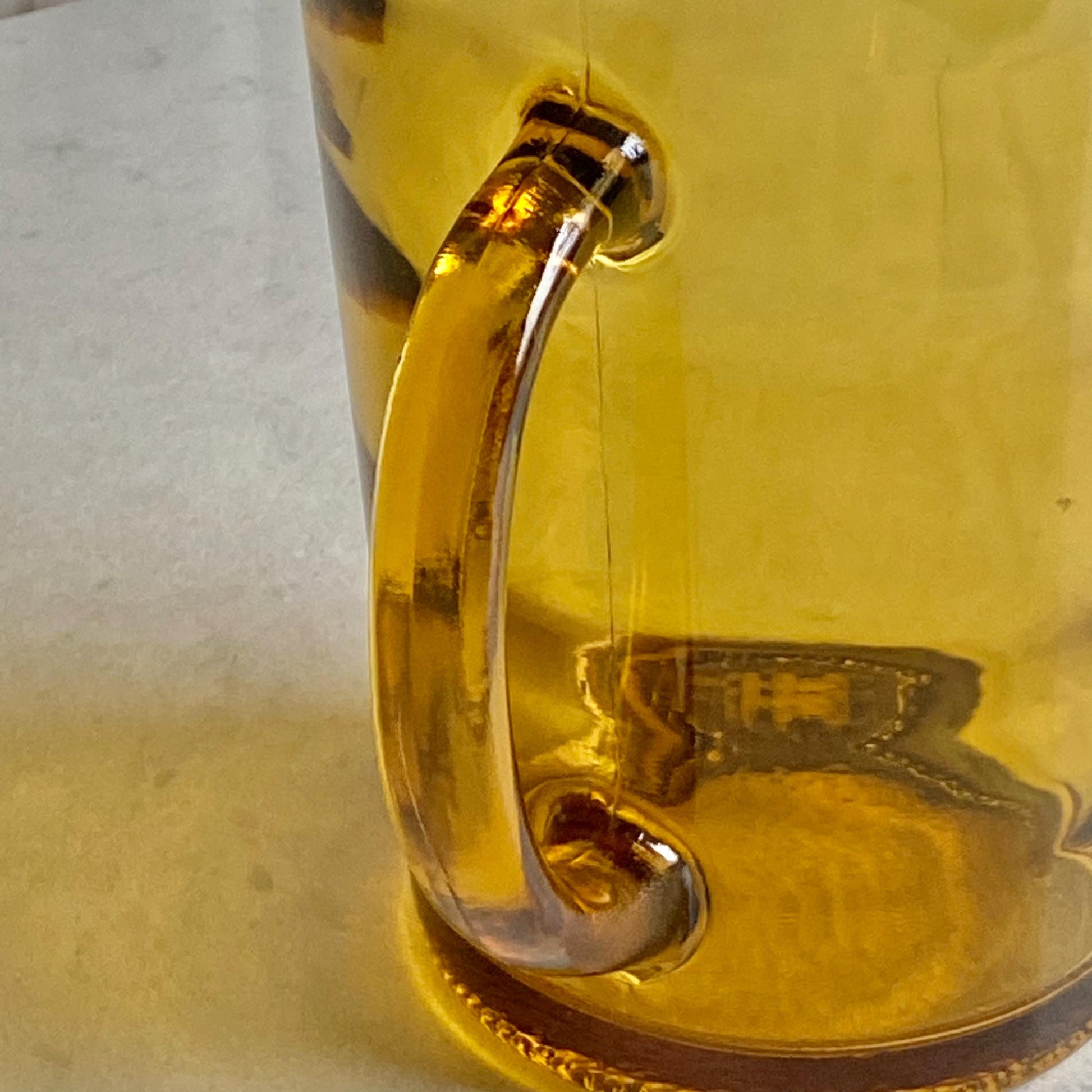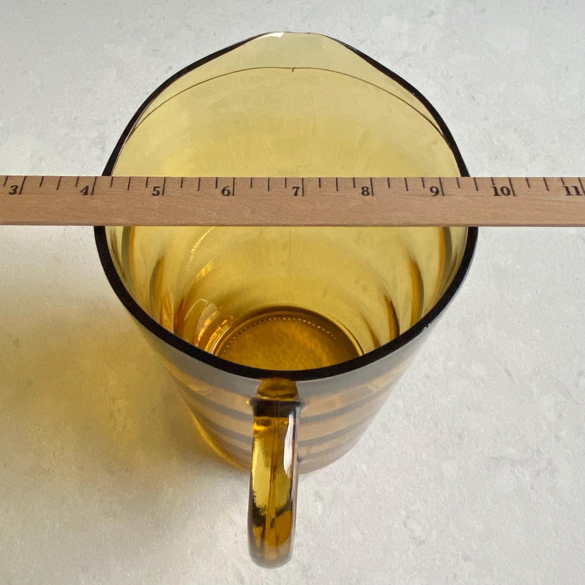 Approximately 8" tall and 5-1/2" across with a capacity of about 64 ounces (8 cups) completely full). Excellent vintage condition, with air bubbles and other signs of the manufacturing process typical of these pieces.