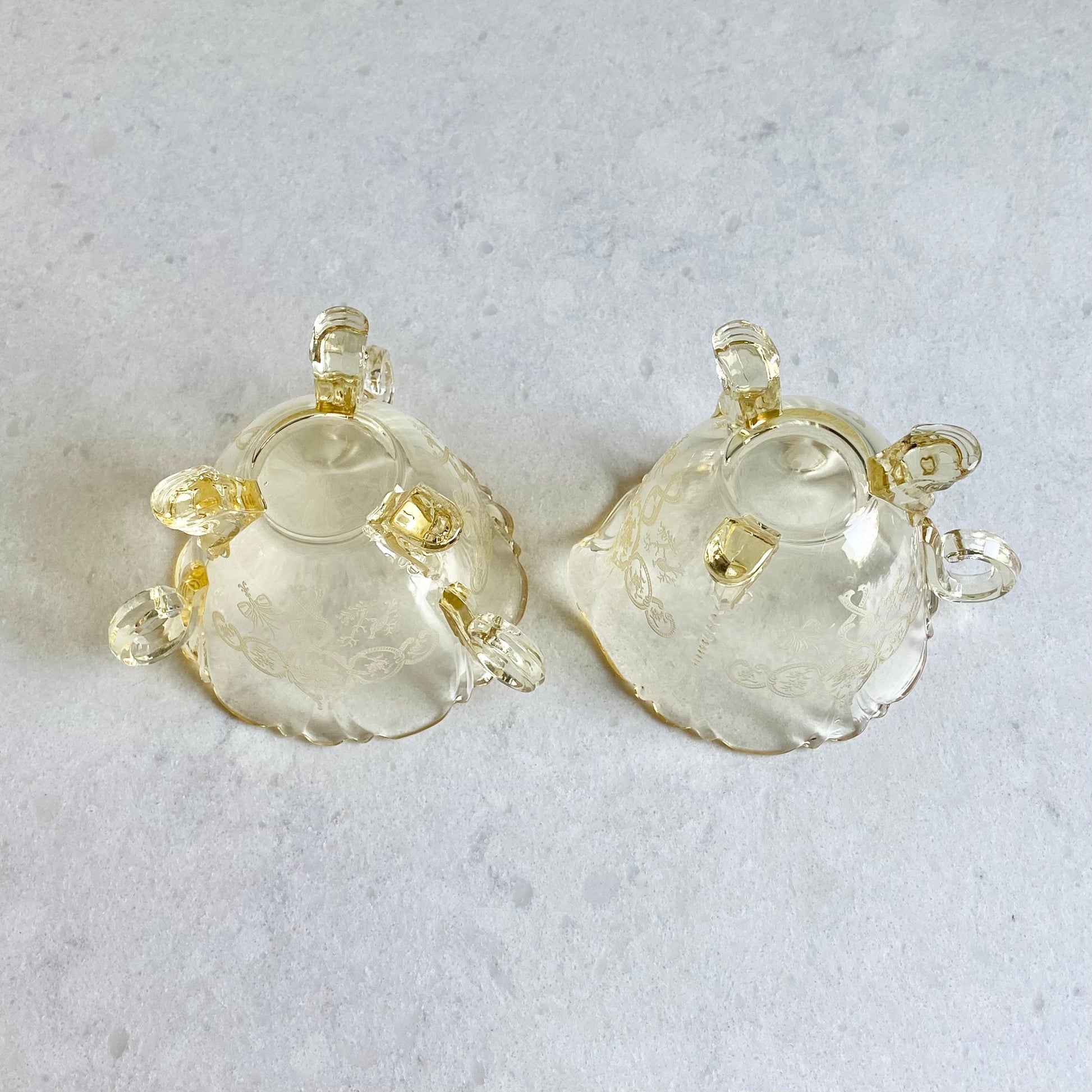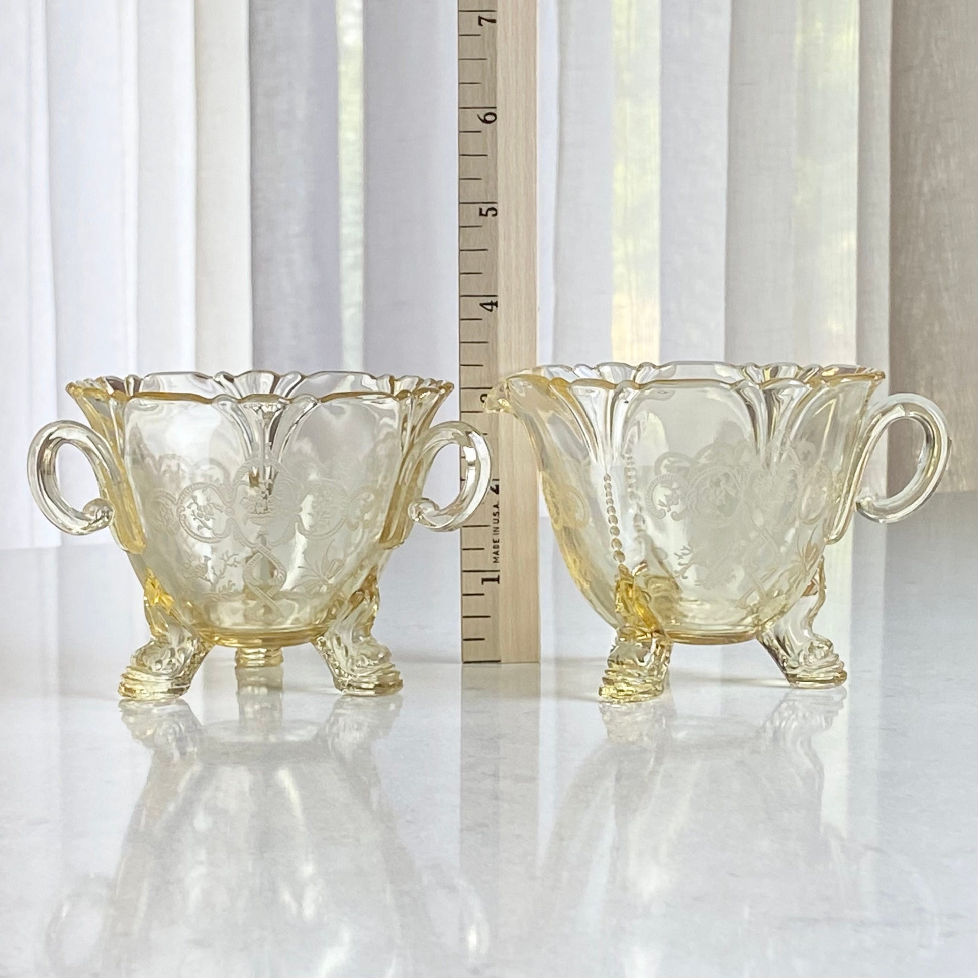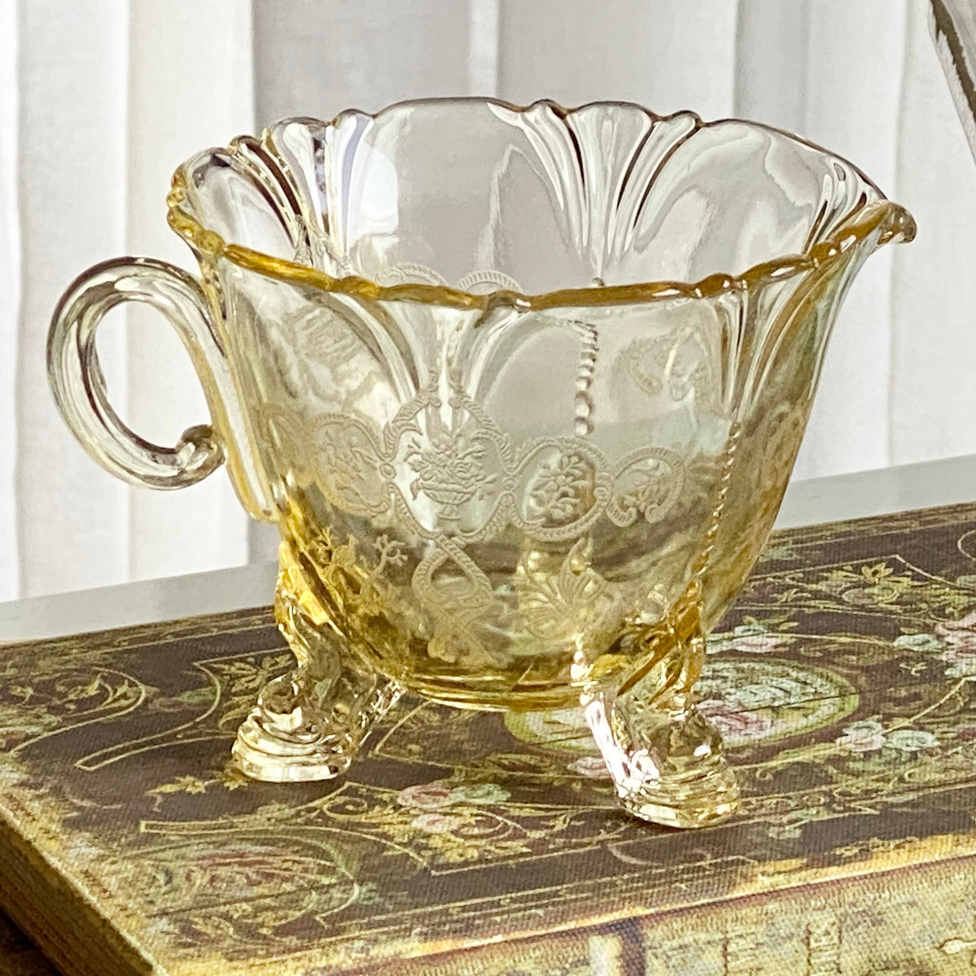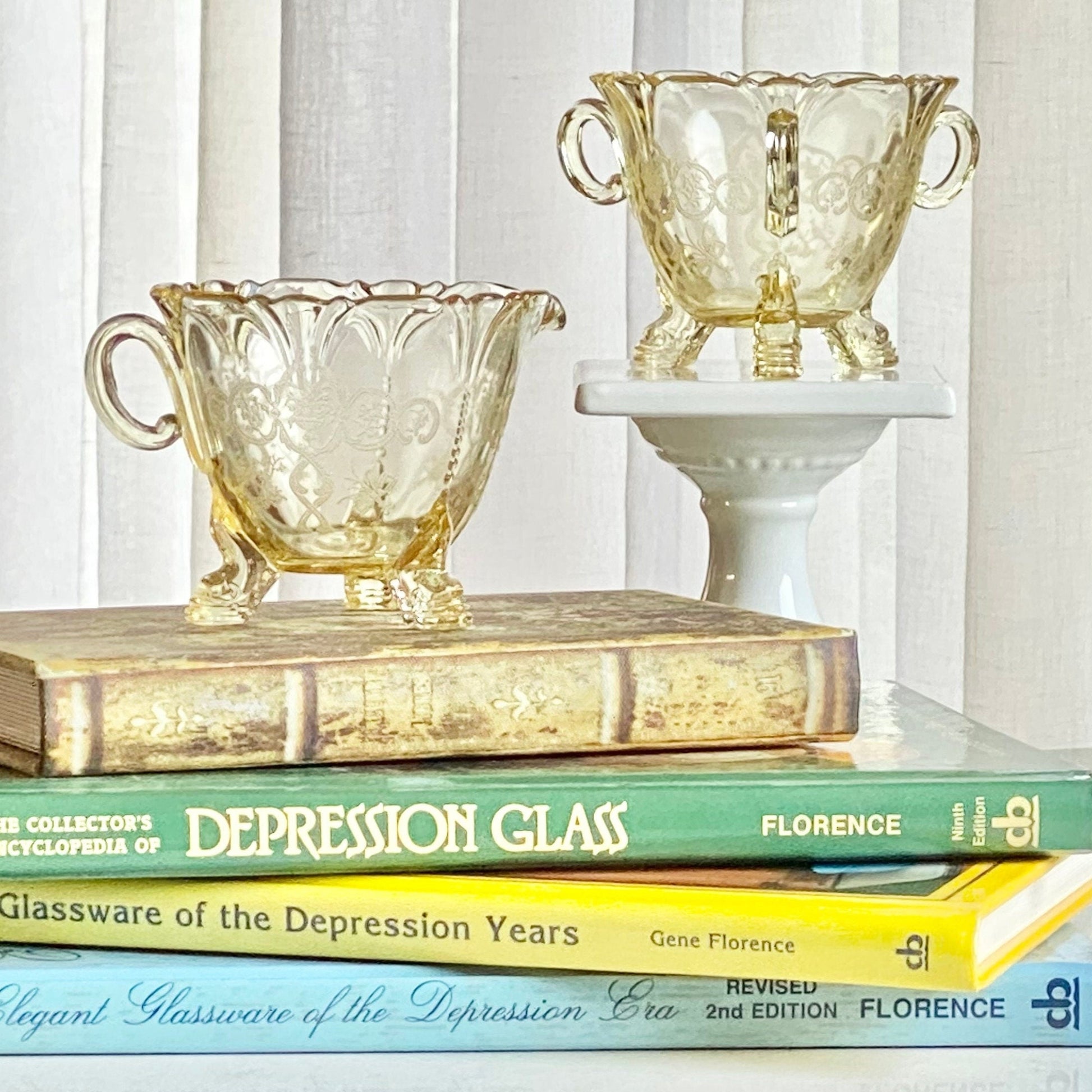 Vintage Heisey Formal Chintz Sahara Yellow Sugar and Creamer Tri Dolphin Footed Set (circa 1931 - 1938)
