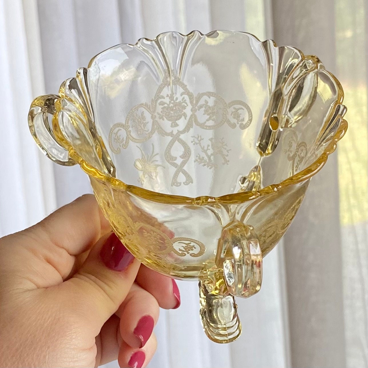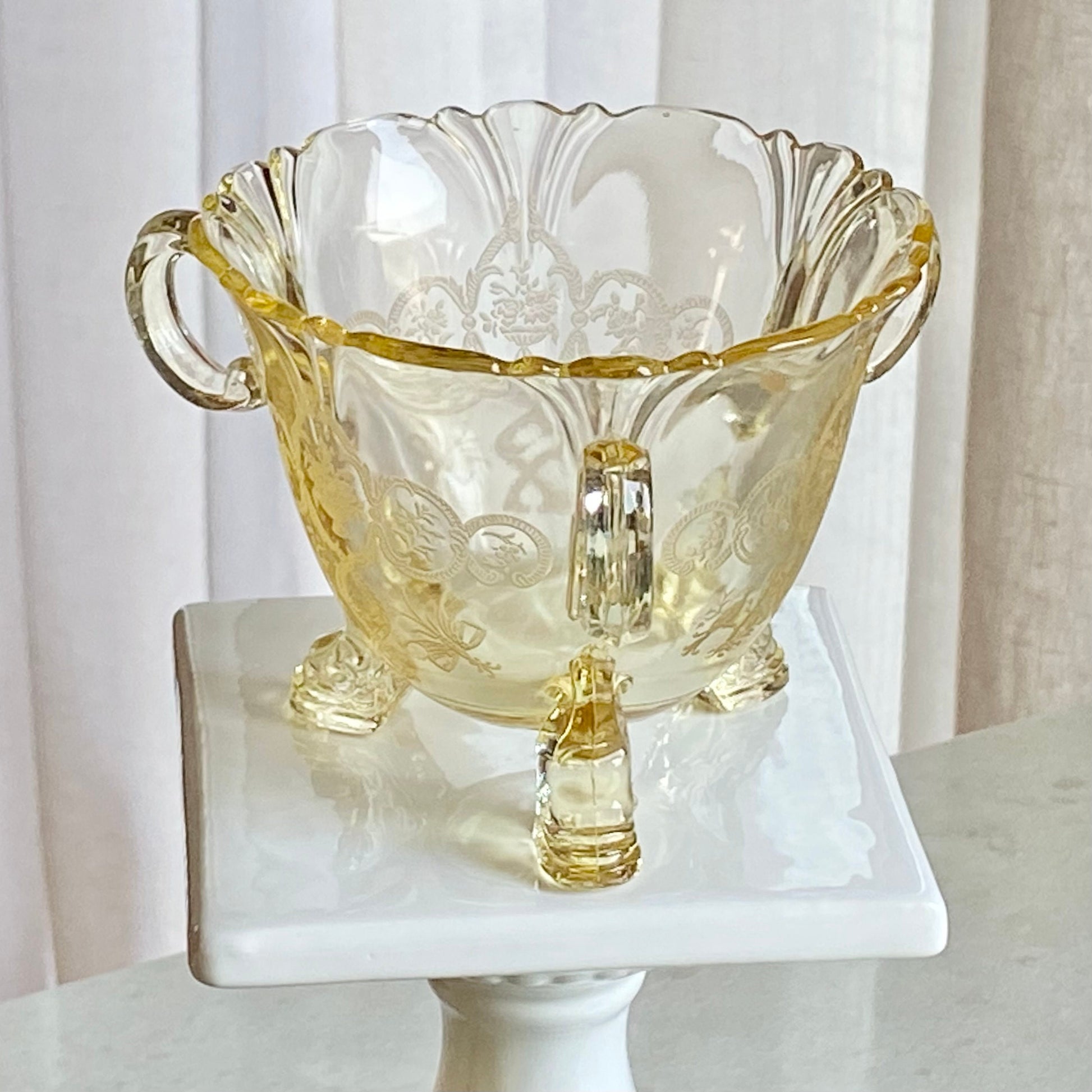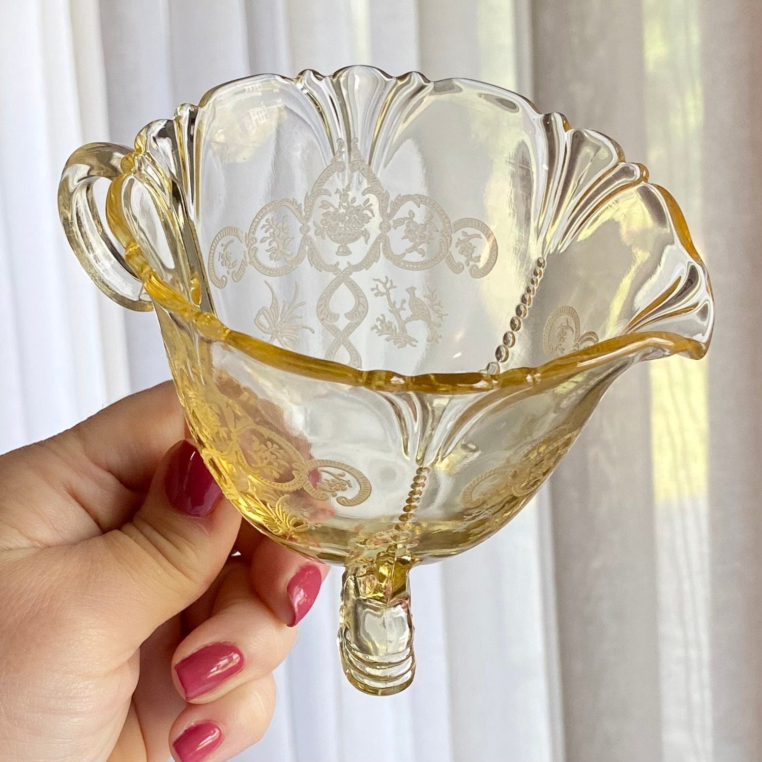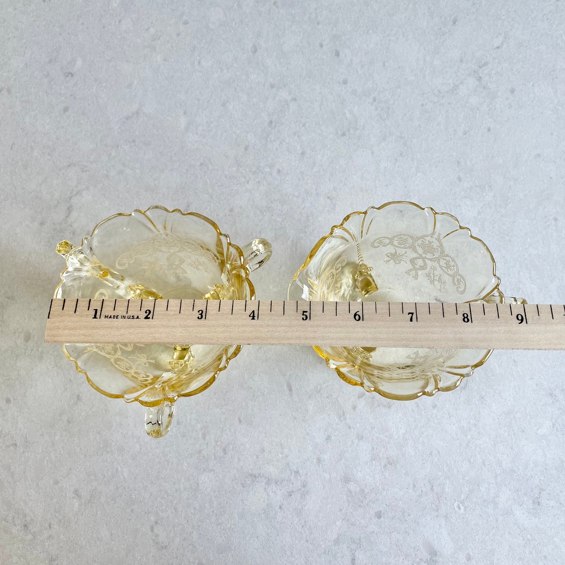 Vintage Heisey Formal Chintz Sahara Yellow Sugar and Creamer Tri Dolphin Footed Set (circa 1931 - 1938)