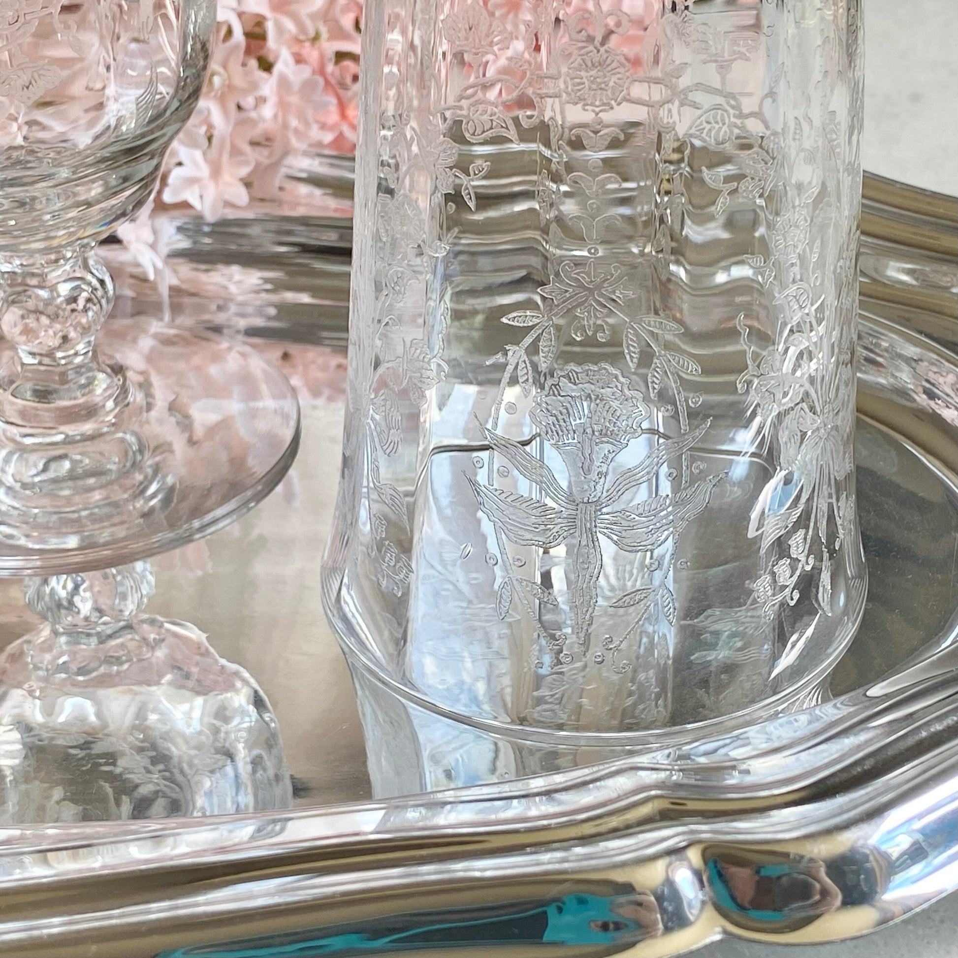 Vintage Heisey Orchid Etched Optic Ribbed Glasses - Set of 3