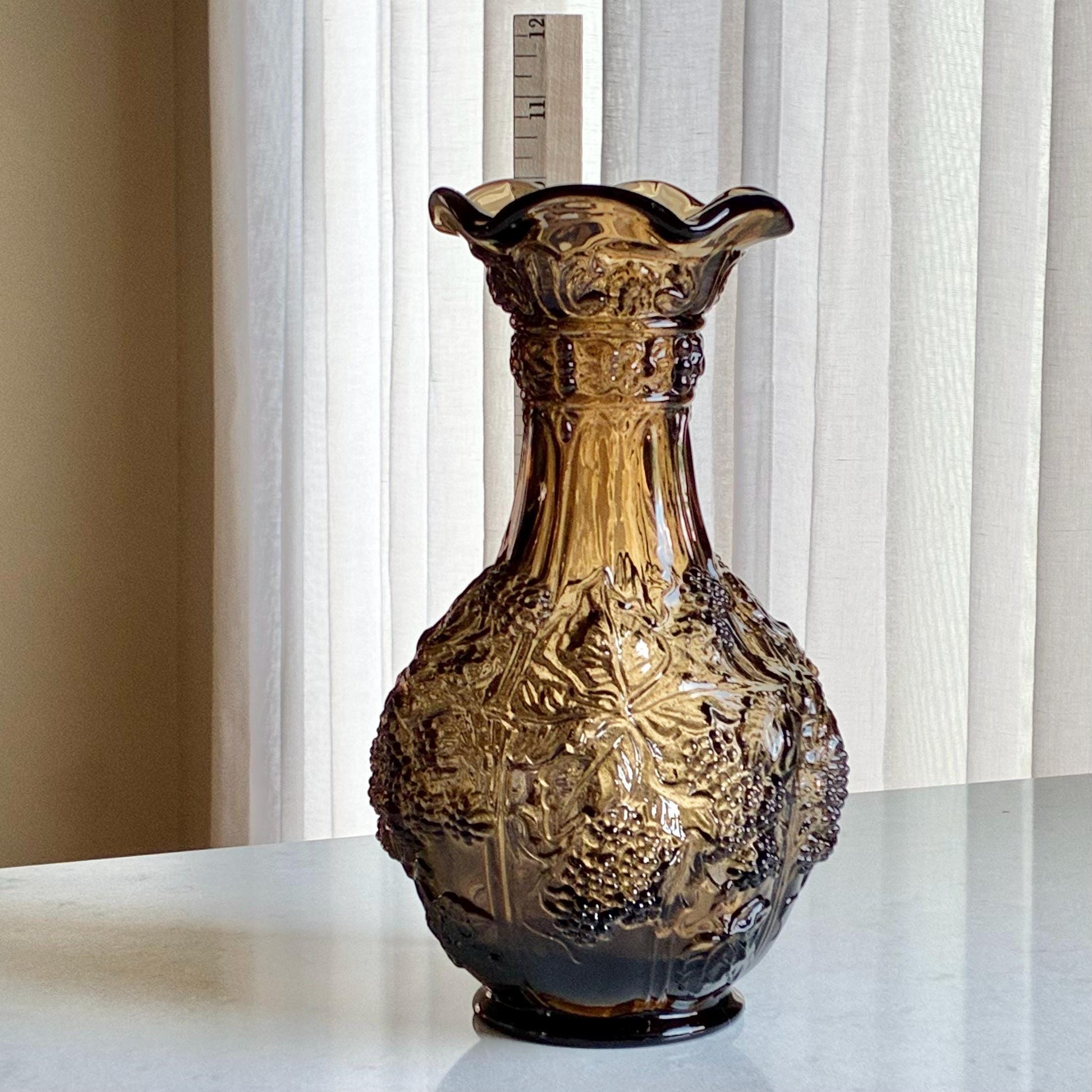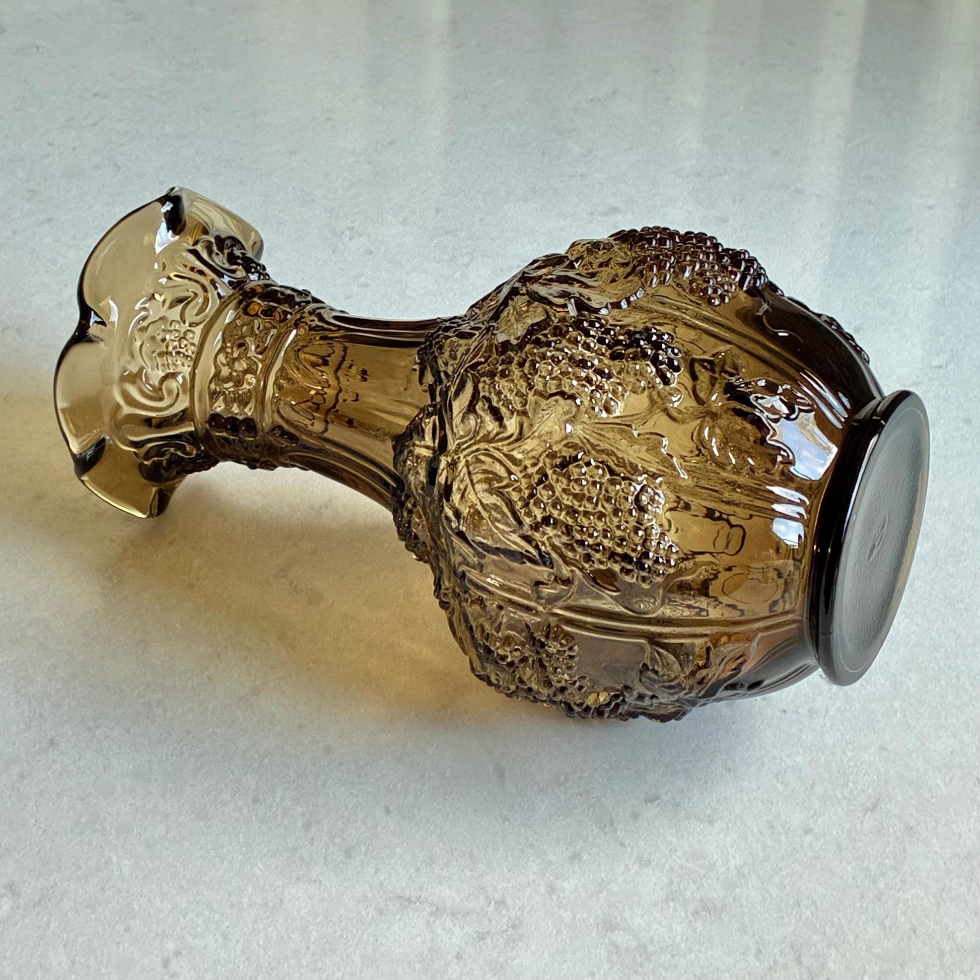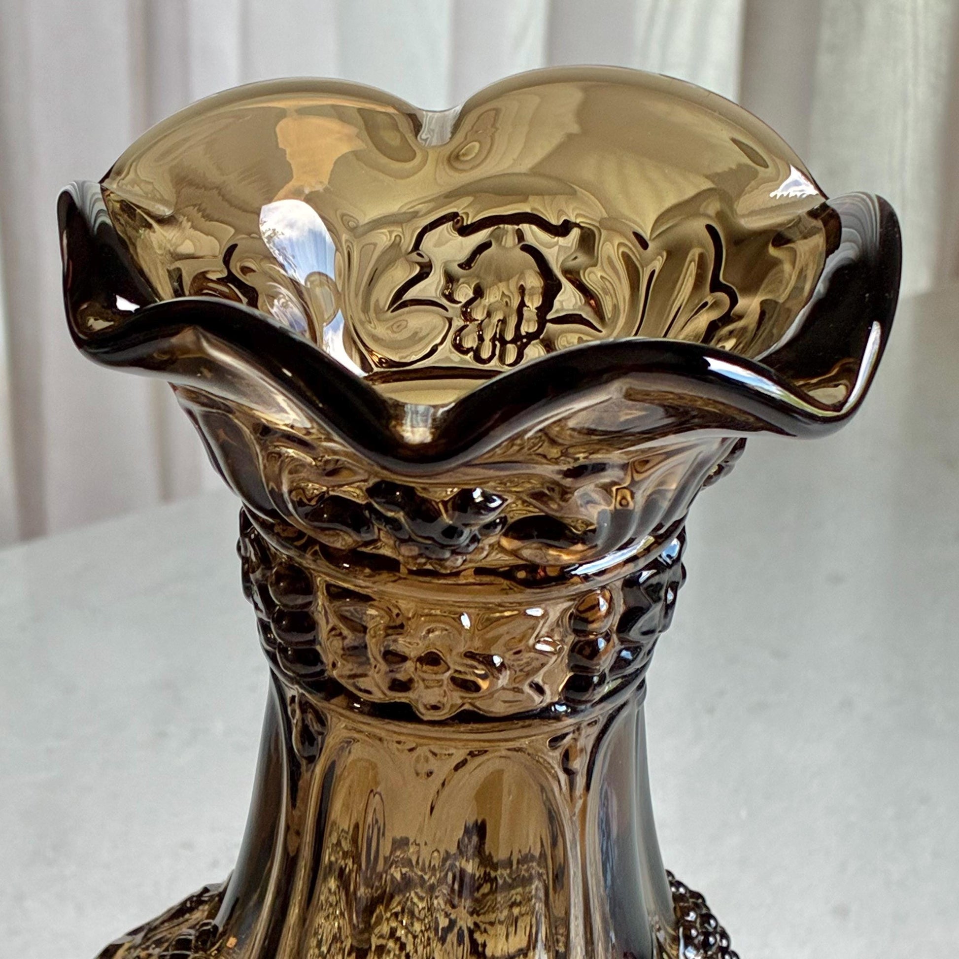 Vintage Imperial Glass Blackberry and Leaves Taupe Smoke Vase