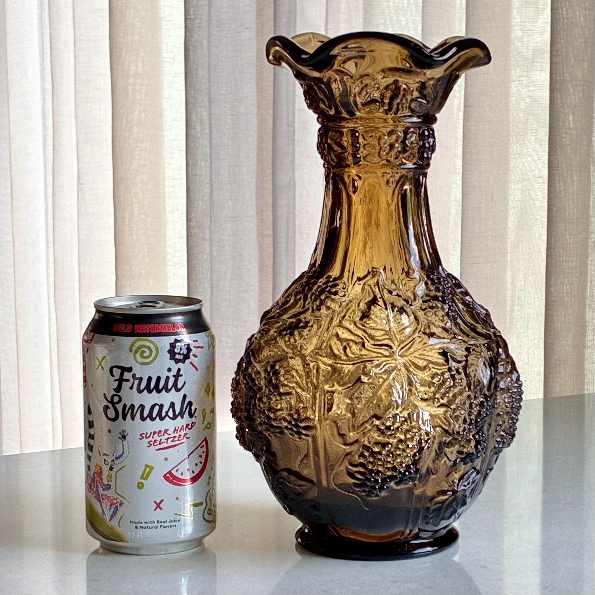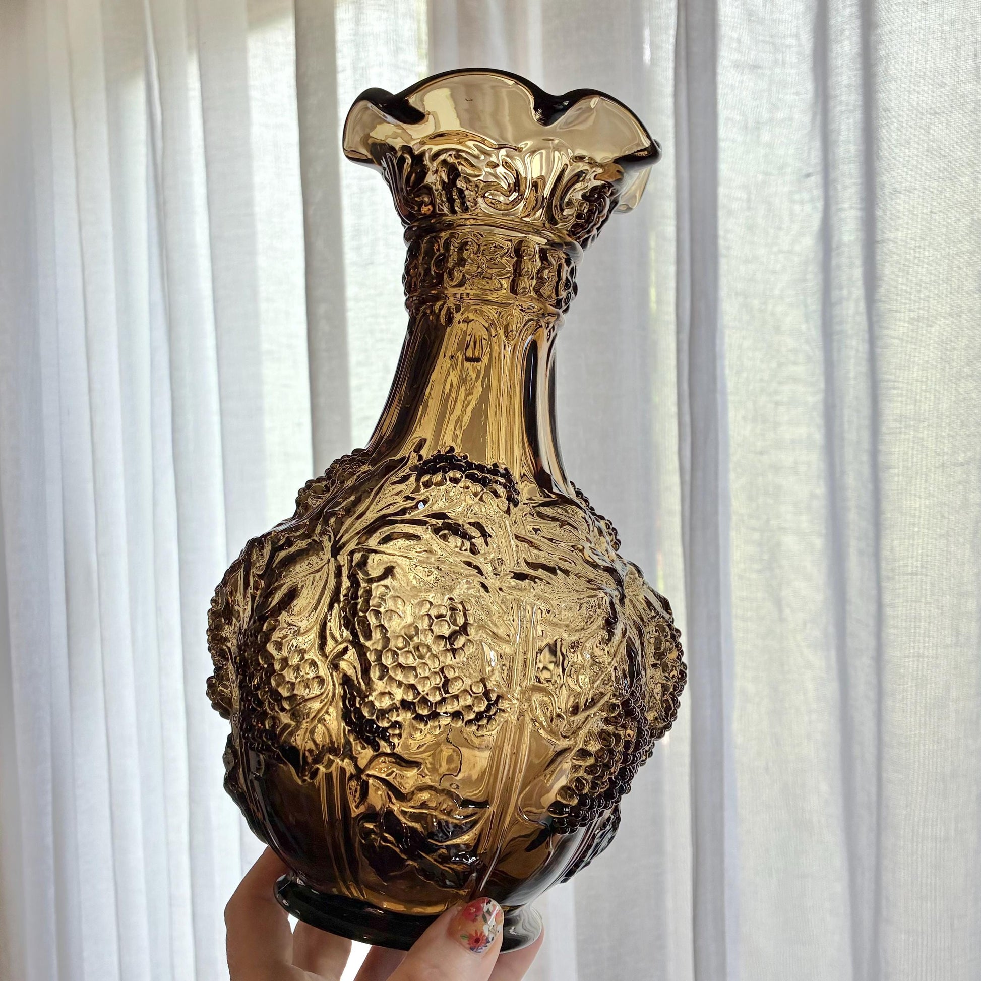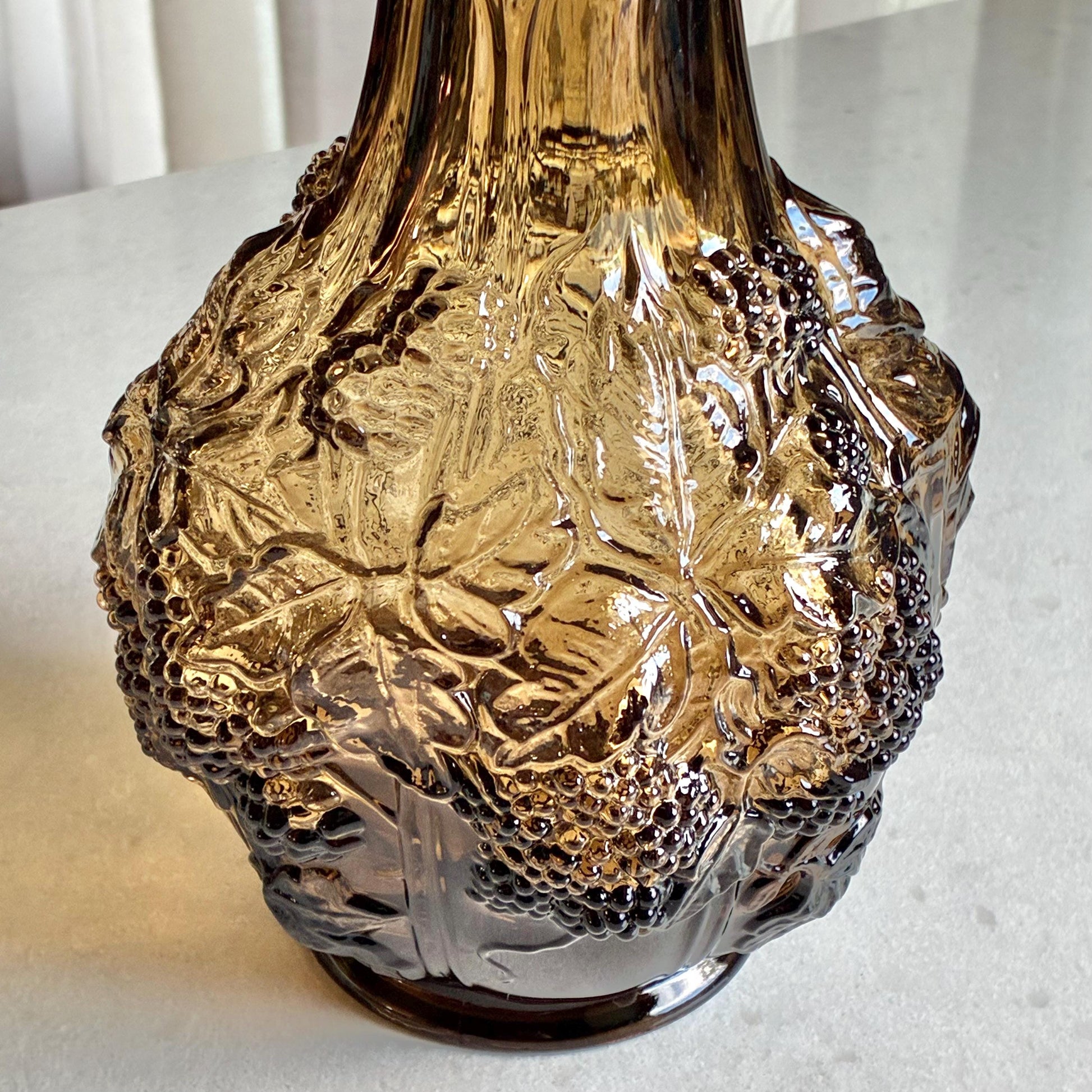 Vintage Imperial Glass Blackberry and Leaves Taupe Smoke Vase